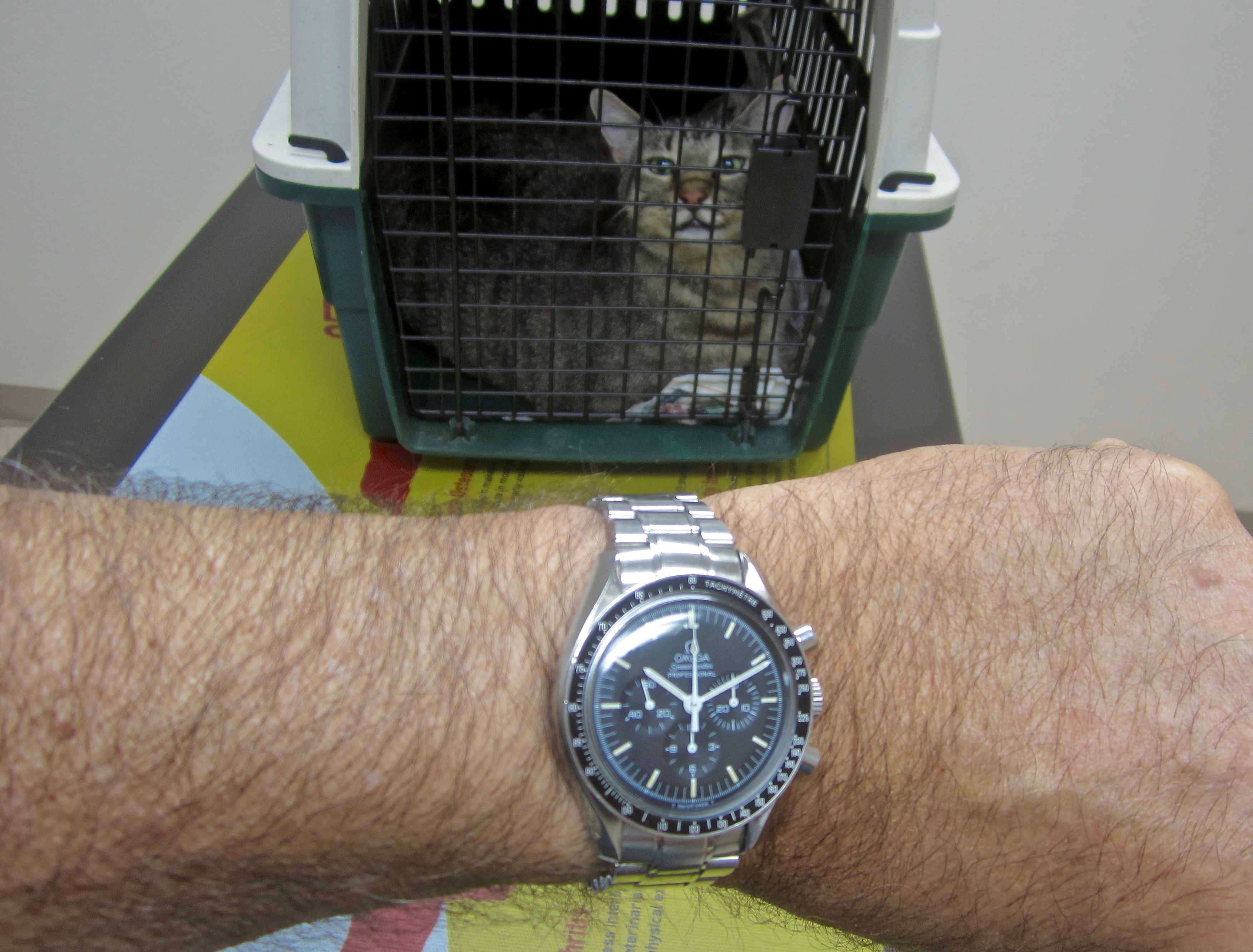 Managed to get not one, but two cats to the vet's today for annual check-ups and shots with no scratches being sustained by either the watch or the cat owner's husband.