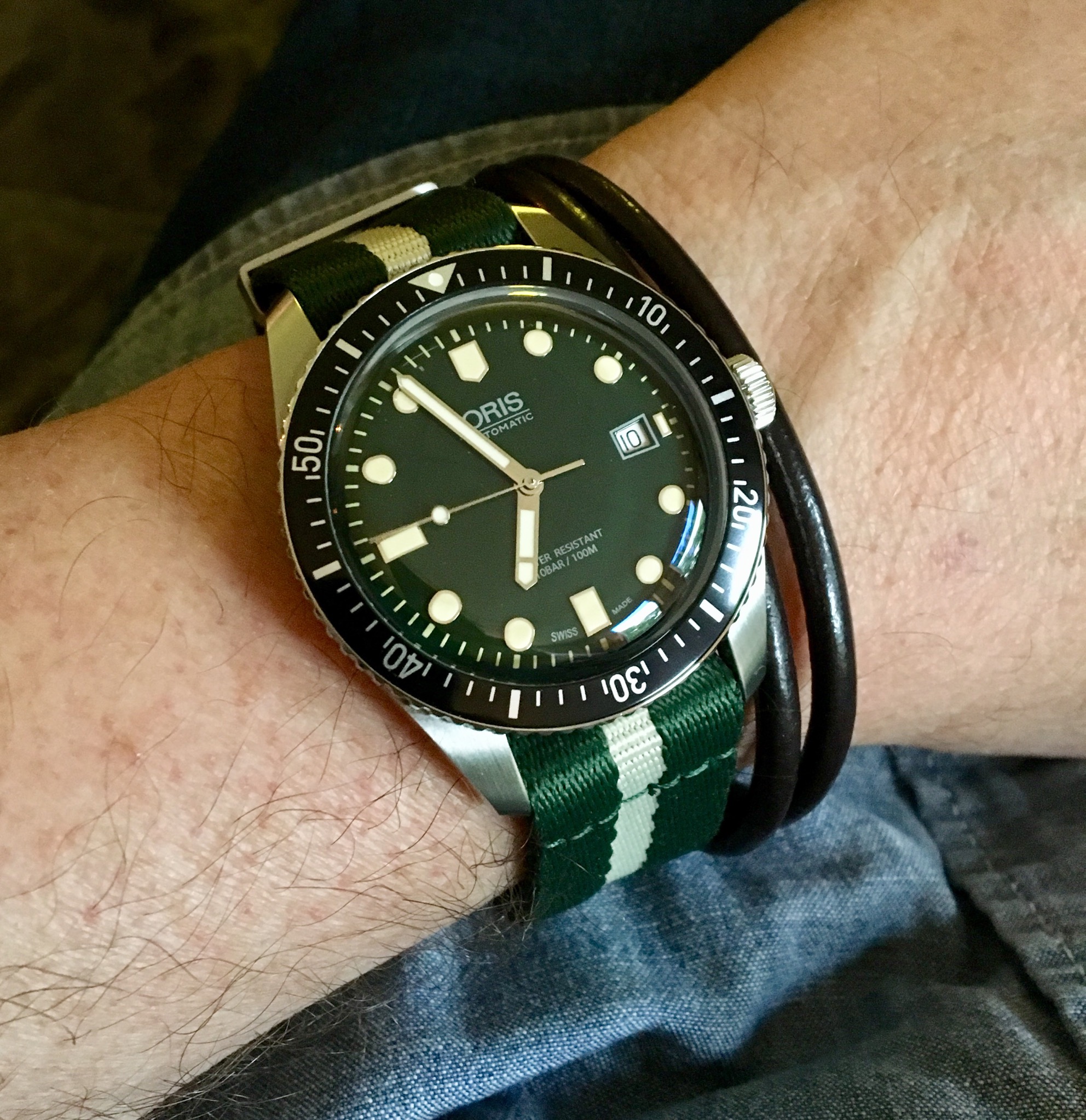 My Oris diver 65, 42mm green dial ref. 733 on the original Oris deployant NATO strap. Normally I鈥檓 not a fan of NATO straps because the materials used can vary so much between too flimsy or too stiff, but this is the business in a NATO!