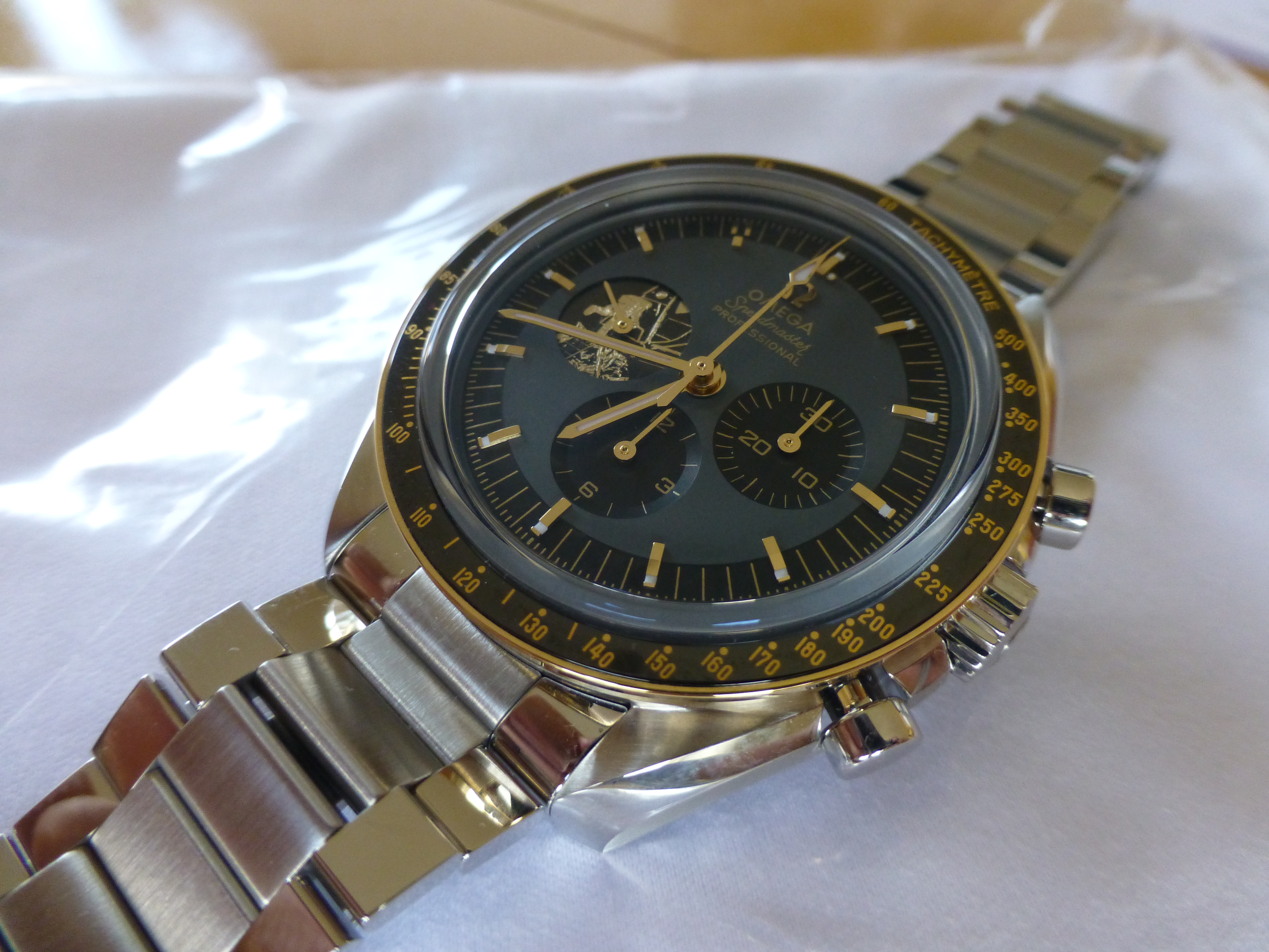 Posts 1,530 Likes 3,592 Stufflers Mom ·Aug 20, 2019 Today was a great day, I picked up this titanium Speedmaster and the 50th Anniversary Moonwatch.