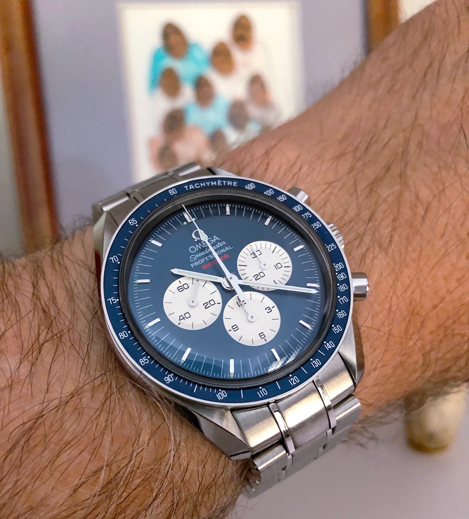 Just back from four days camping in the Rockies, and I realized it was time for a change. I wear my beater when out in the sticks because, if I destroy it, meh! Someone complimented me on my beater! So the beater came off, and this one went on. This one is from (I figure) the early 1970s. It came to me in pieces with mis-matching case back, so I have to guess at the vintage. Rather distinctive style, I think, but I like it.