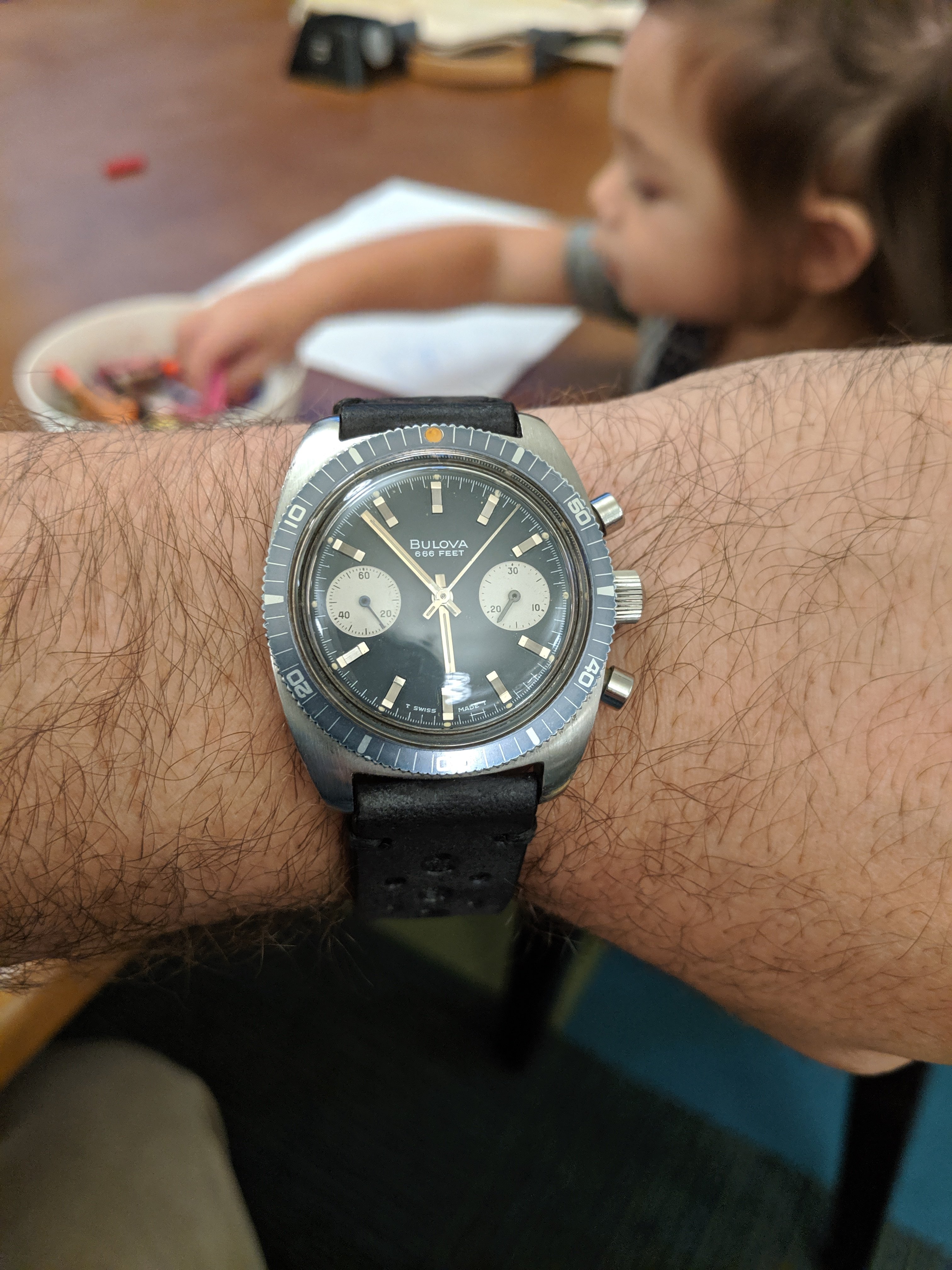 This is the sort of day it is. A 30 cm accumulation of heavy wet snow in 24 hours. A good day to stay indoors and putz around with watches. The calendar on this one is a day ahead. It was 12 days ahead when I took it out of the vault, so I backed the calendar up 11 days which left it one day fast. On October 1, the date will be correct.
