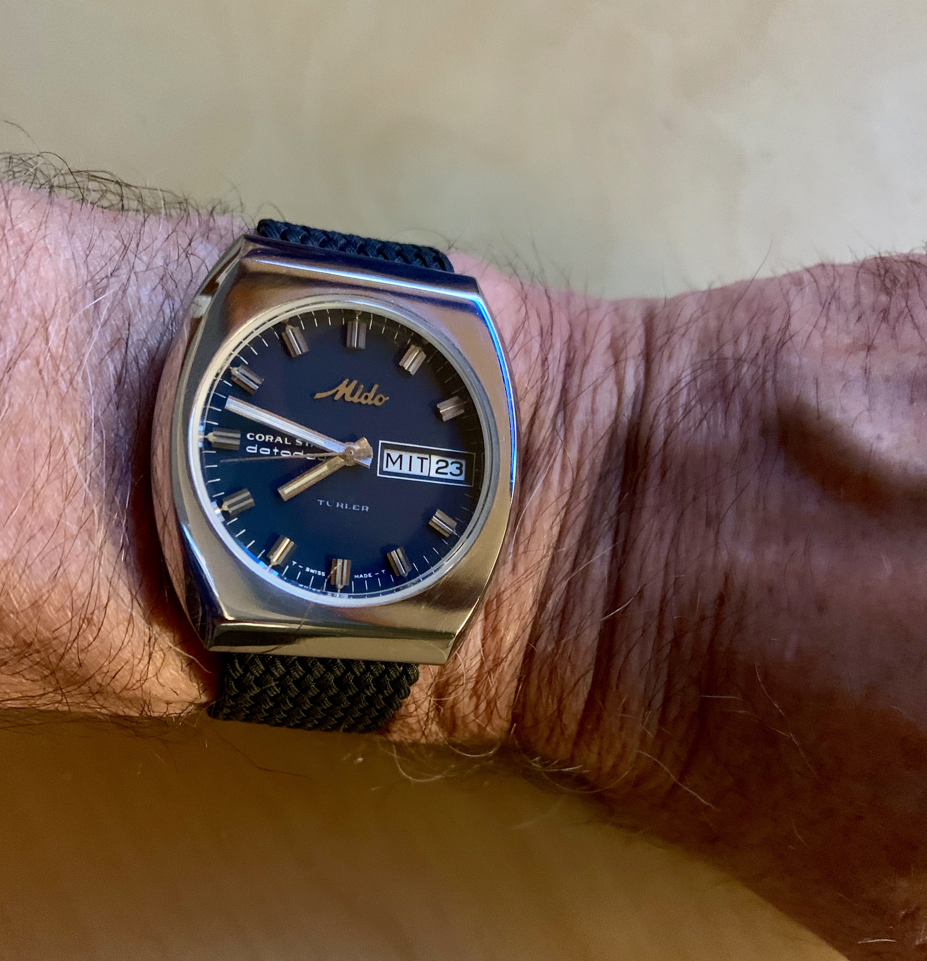 I usually never wear a watch if it is on the sales but this afternoon decided to harness some Perlon to the 'Mido' and 😀