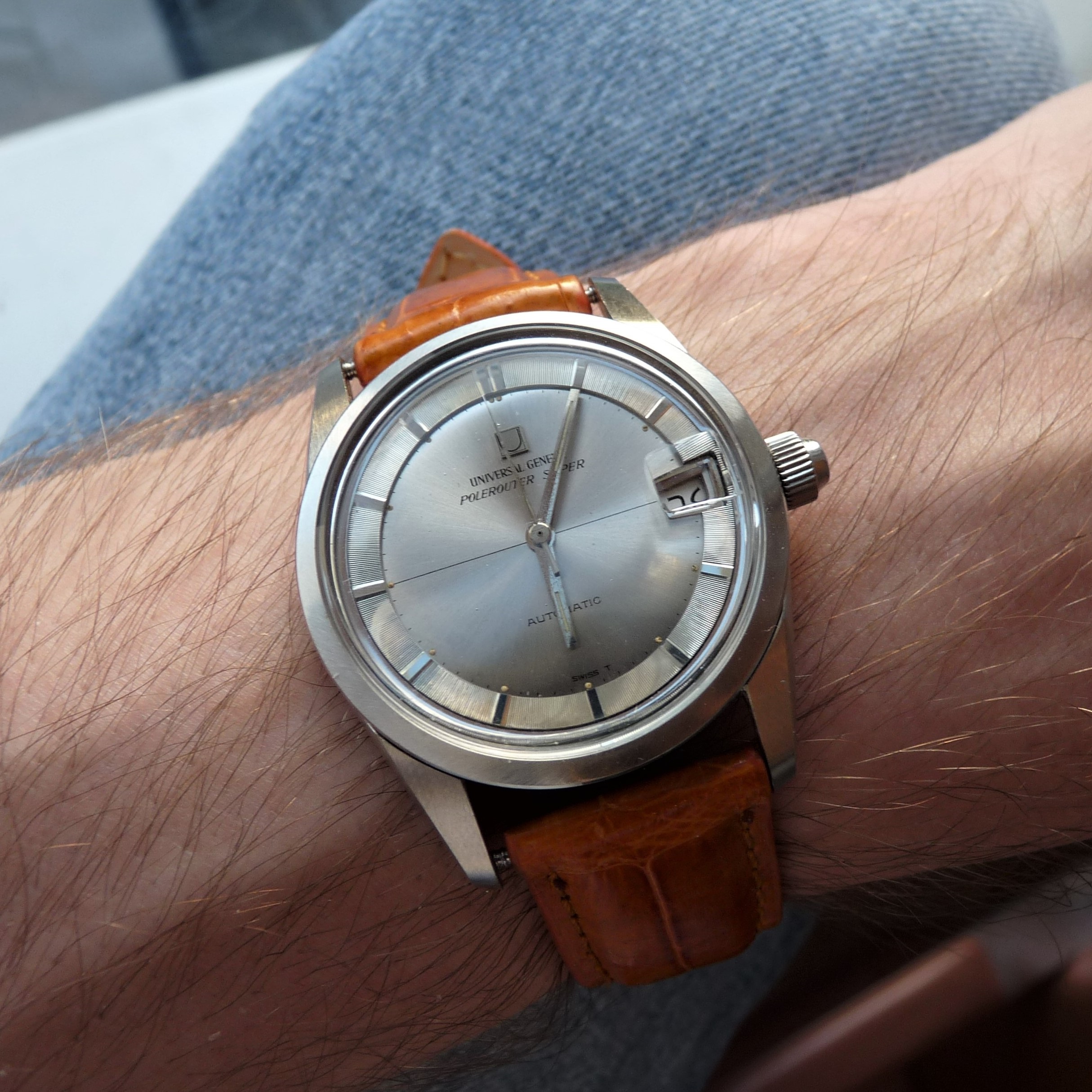 Posts 825 Likes 8,249 Njnjcfp88 ·Oct 26, 2019 On this 1950s CNG ( with ETAs first auto cal. 1256) I decided to have a little October fun and throw on a dark olive green reindeer leather with orange stitching (Finwatchstraps).