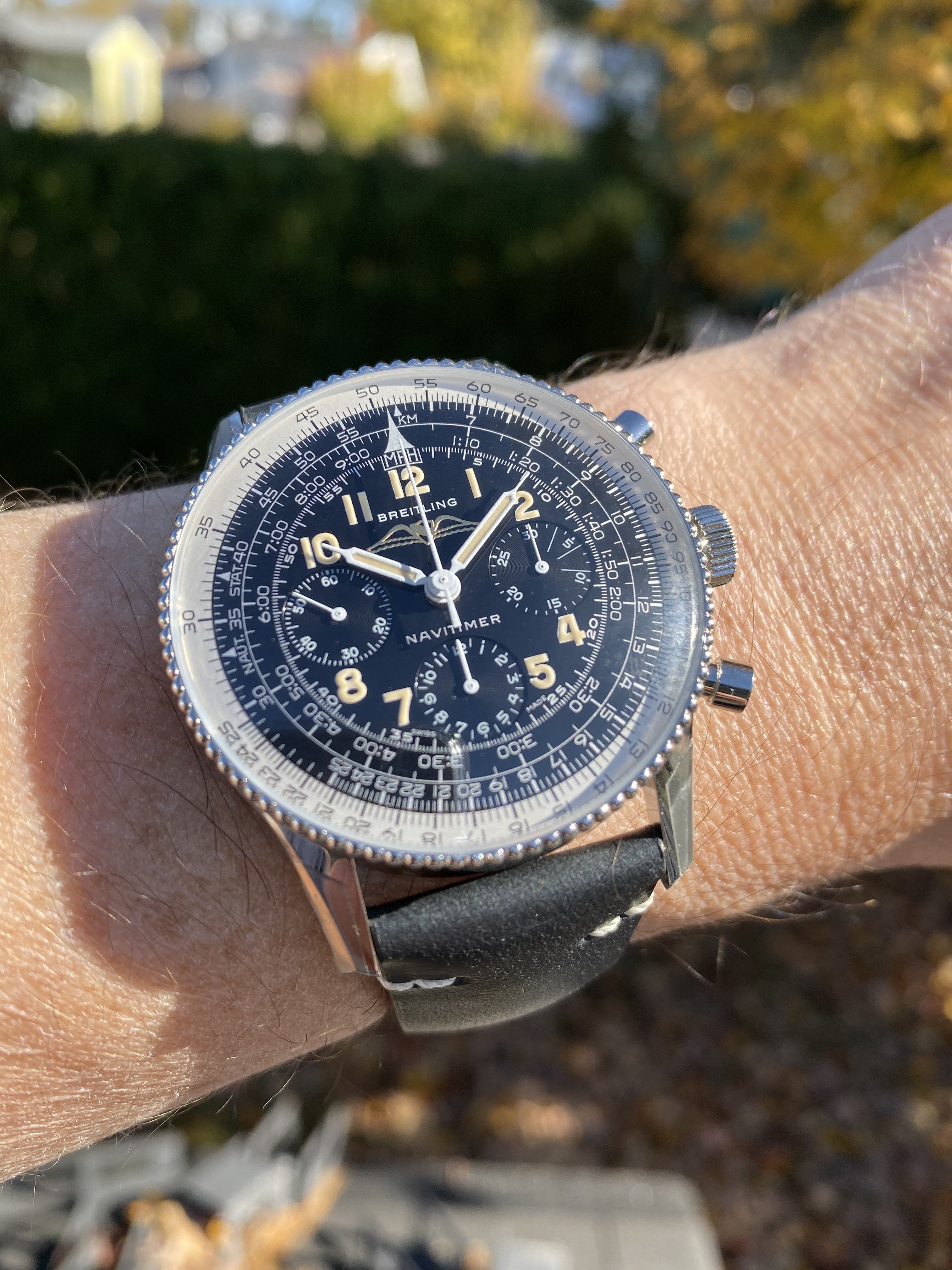 Posts 1,150 Likes 19,998 Mach ·Nov 1, 2019 First Breitling - Navitimer Ref 806 1959 Re-Edition - landed this morning! Edited: Nov 1, 2019