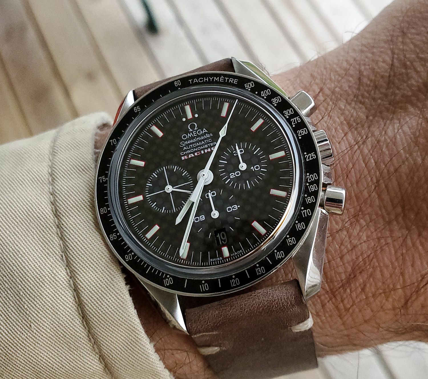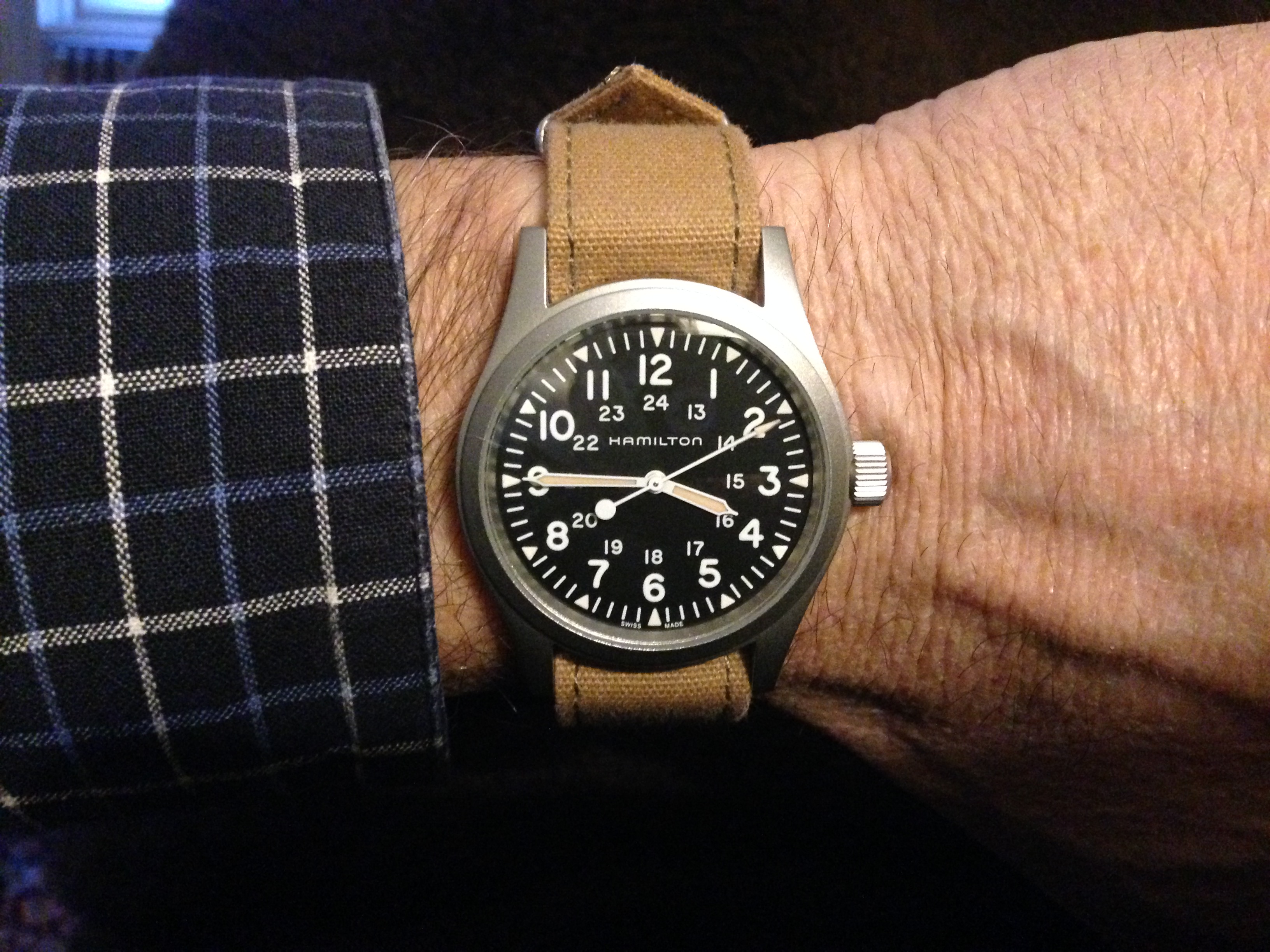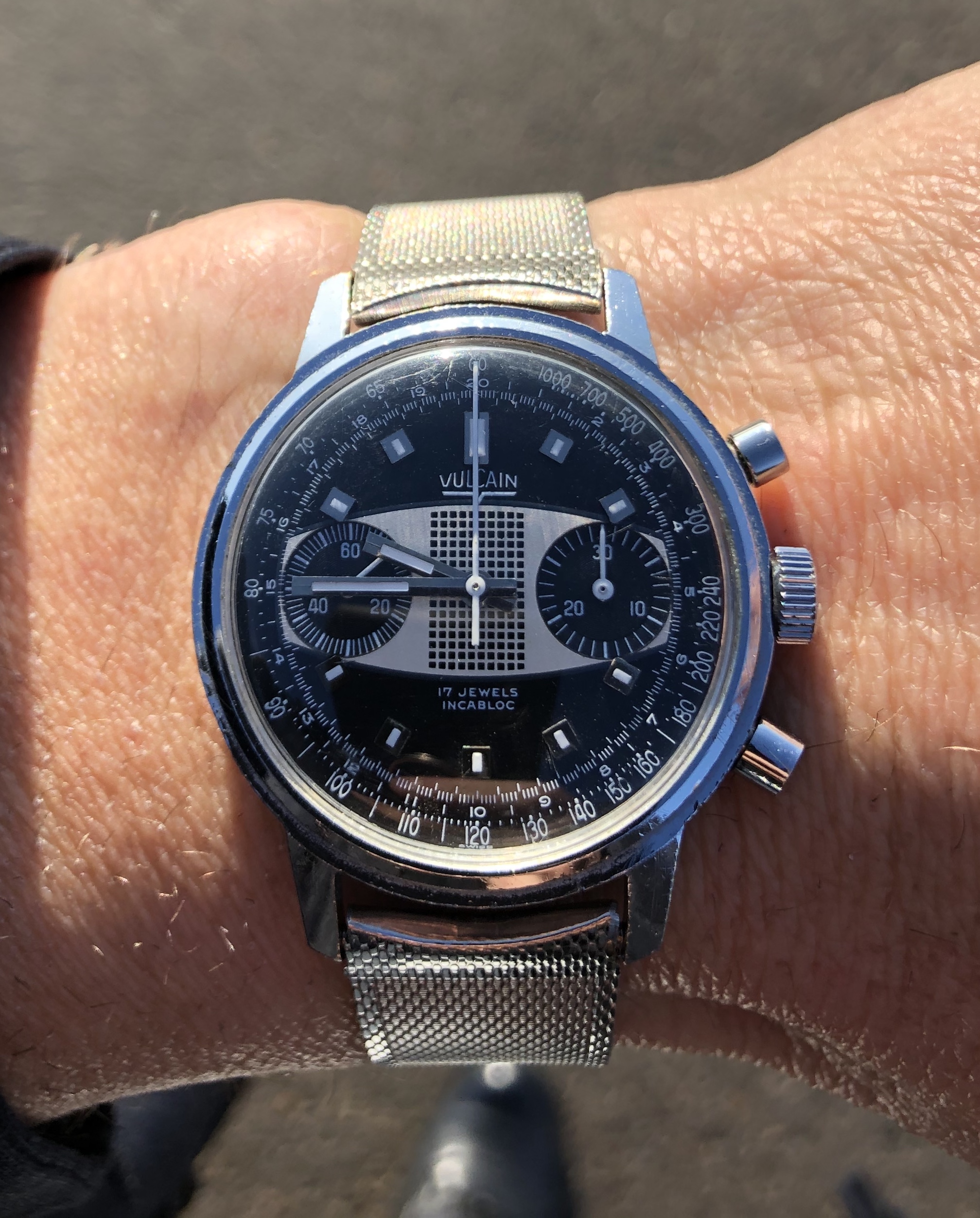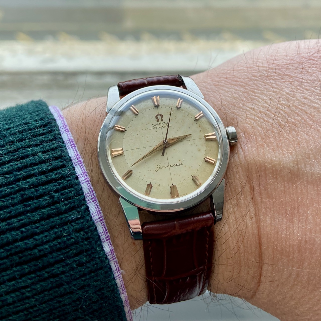 Wearing a recent acquisition today in need of a little TLC, a Mido Multifort Super Automatic, circa 1941. The watch uses a Taubert & Fils "waterproof" case that traces its DNA back to an early 1930s Taubert design which featured an octagonal stainless steel case, decagonal screw down back, and a specially treated cork winding stem seal. Iterations of this 1930s "waterproof" case were used by various manufacturers such as IWC, Vacheron & Constantin, Longines, Mido and Gruen through at least the early 1960s. Also attached is a photo of three watches tracing the evolution of the 1930s design: circa 1934 Empire; circa 1941 Mido Multifort Super Automatic; and, circa 1961 Gruen 23 Precision Power Date.