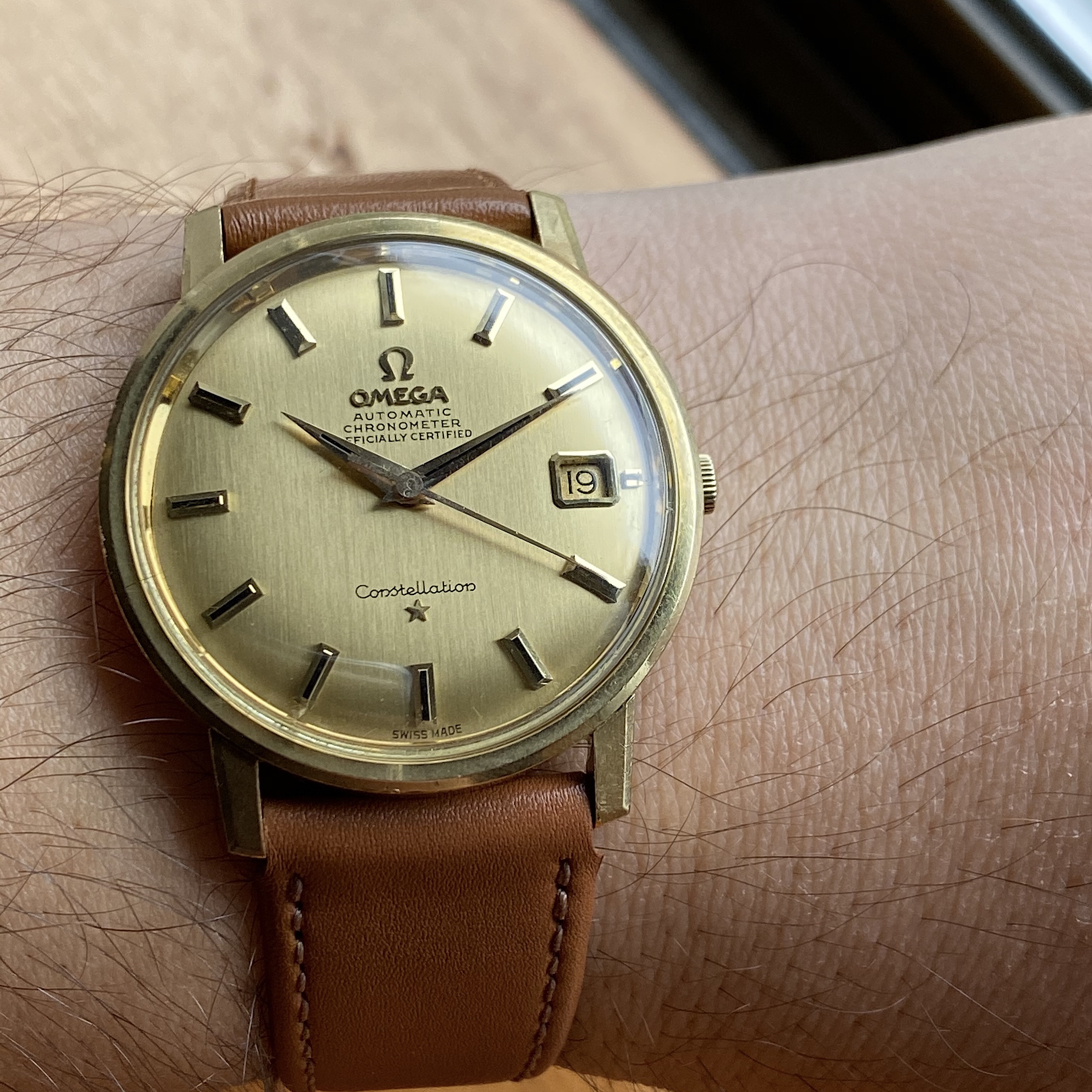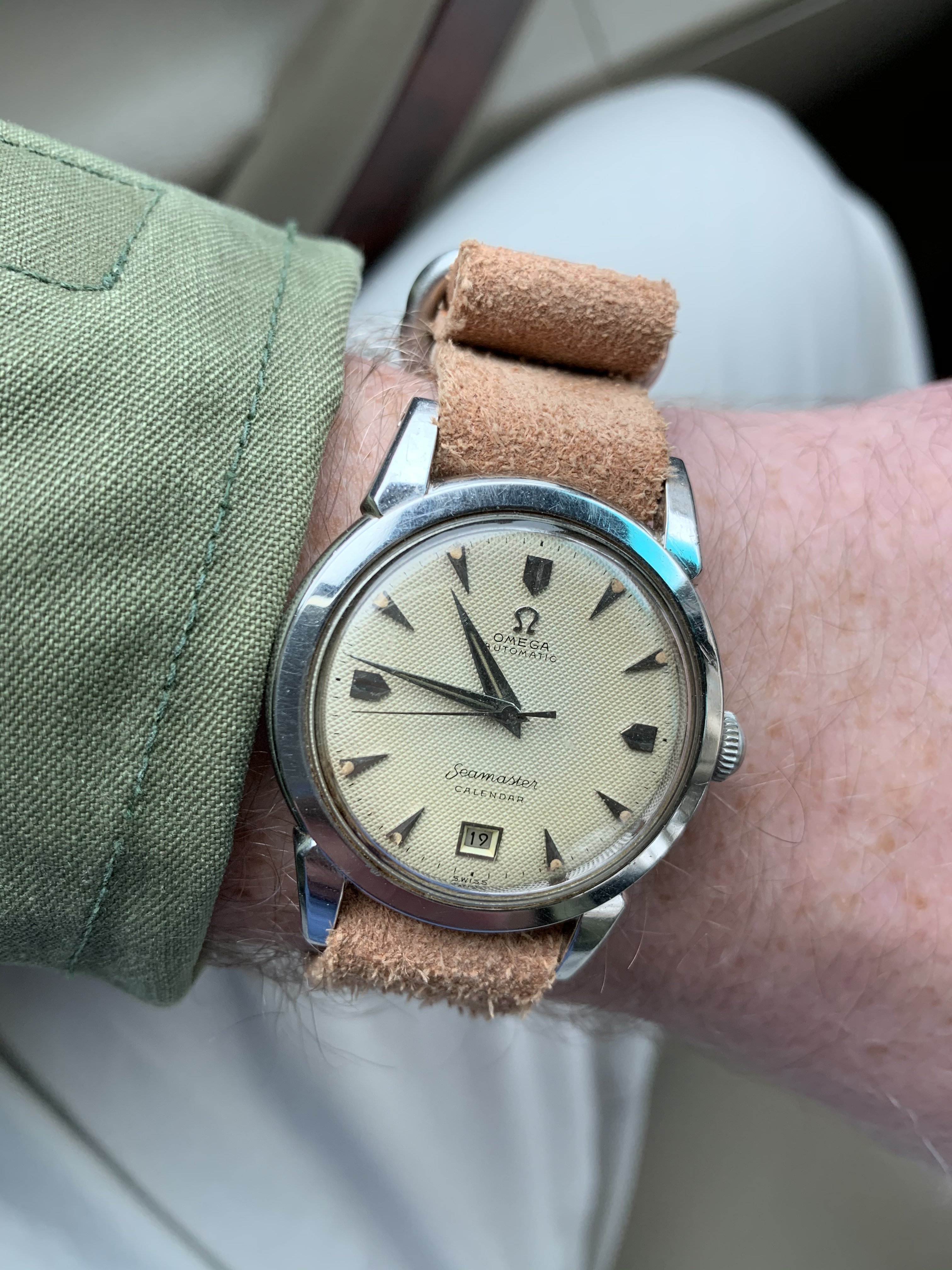 Wearing a recent acquisition today in need of a little TLC, a Mido Multifort Super Automatic, circa 1941. The watch uses a Taubert & Fils "waterproof" case that traces its DNA back to an early 1930s Taubert design which featured an octagonal stainless steel case, decagonal screw down back, and a specially treated cork winding stem seal. Iterations of this 1930s "waterproof" case were used by various manufacturers such as IWC, Vacheron & Constantin, Longines, Mido and Gruen through at least the early 1960s. Also attached is a photo of three watches tracing the evolution of the 1930s design: circa 1934 Empire; circa 1941 Mido Multifort Super Automatic; and, circa 1961 Gruen 23 Precision Power Date.