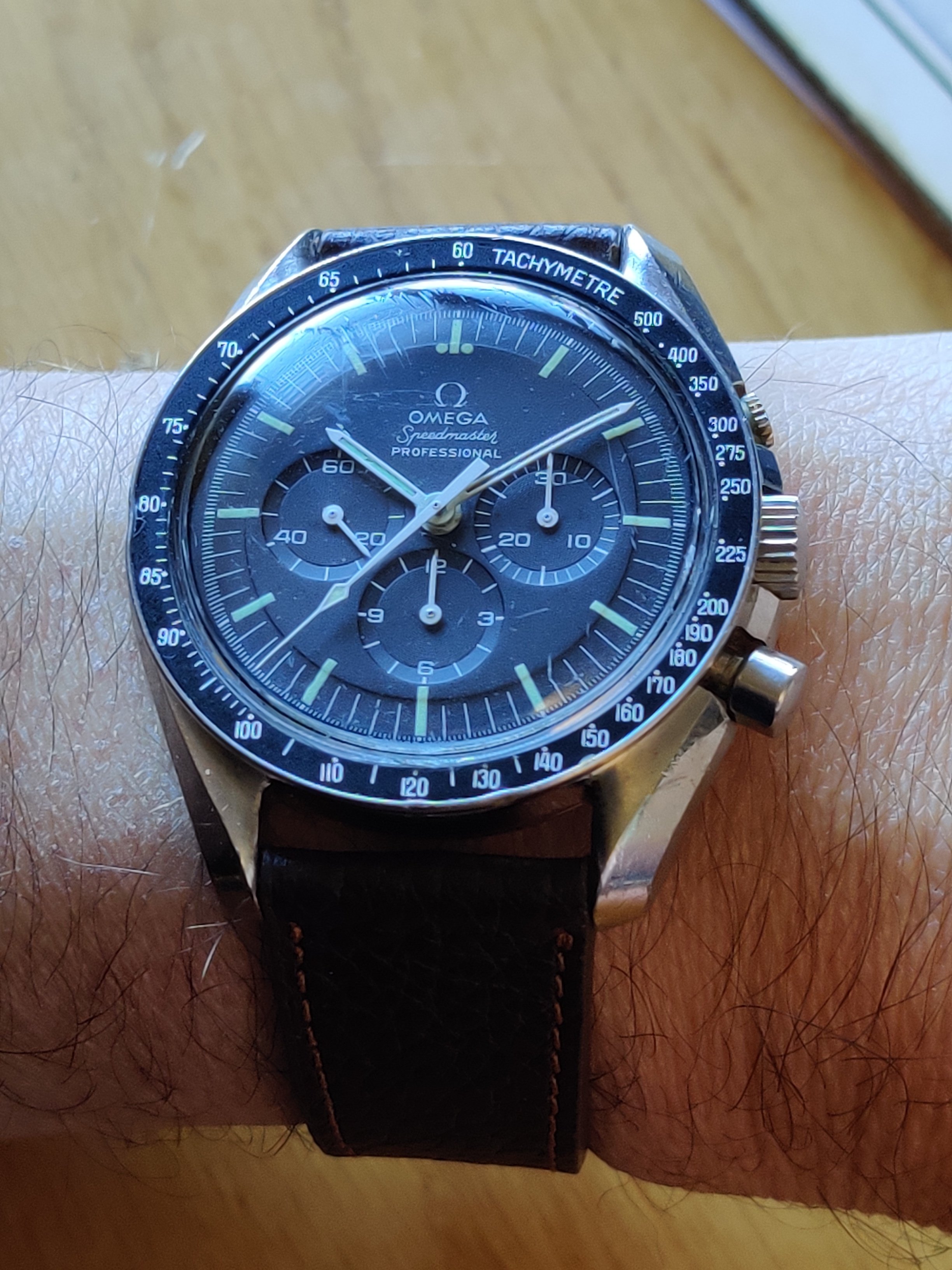 Posts 6,570 Likes 77,969 Mad Dog 路Dec 8, 2019 Wore my entire Speedmaster collection to Church today...fifty years apart in age...both on original bands...