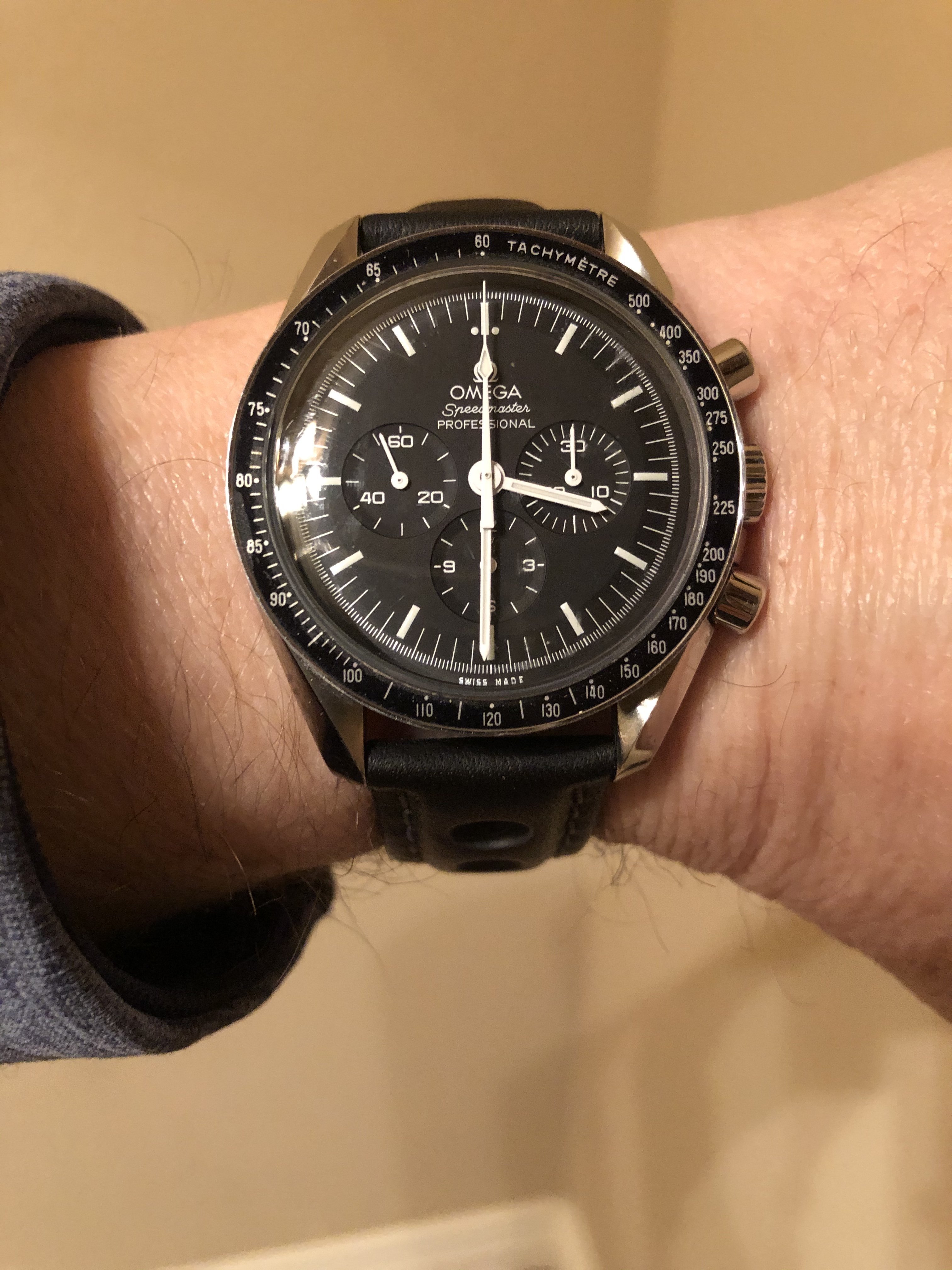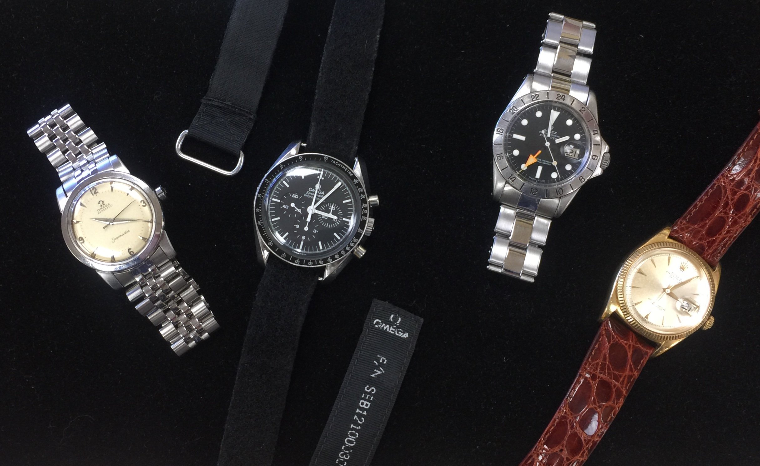 Posts 6,570 Likes 77,969 Mad Dog ·Dec 21, 2019 Stopped by my local watchmaker’s place of business today wearing my modern Speedy Gonzales Moonwatch on its original Omega replica NASA strap...and he busted out some of his “holiday watches” for show & tell...