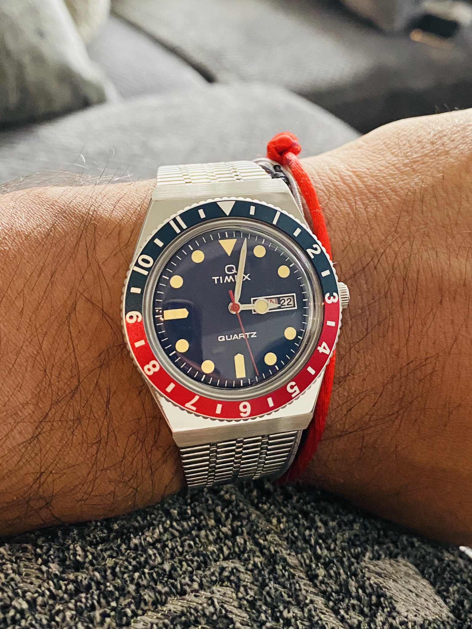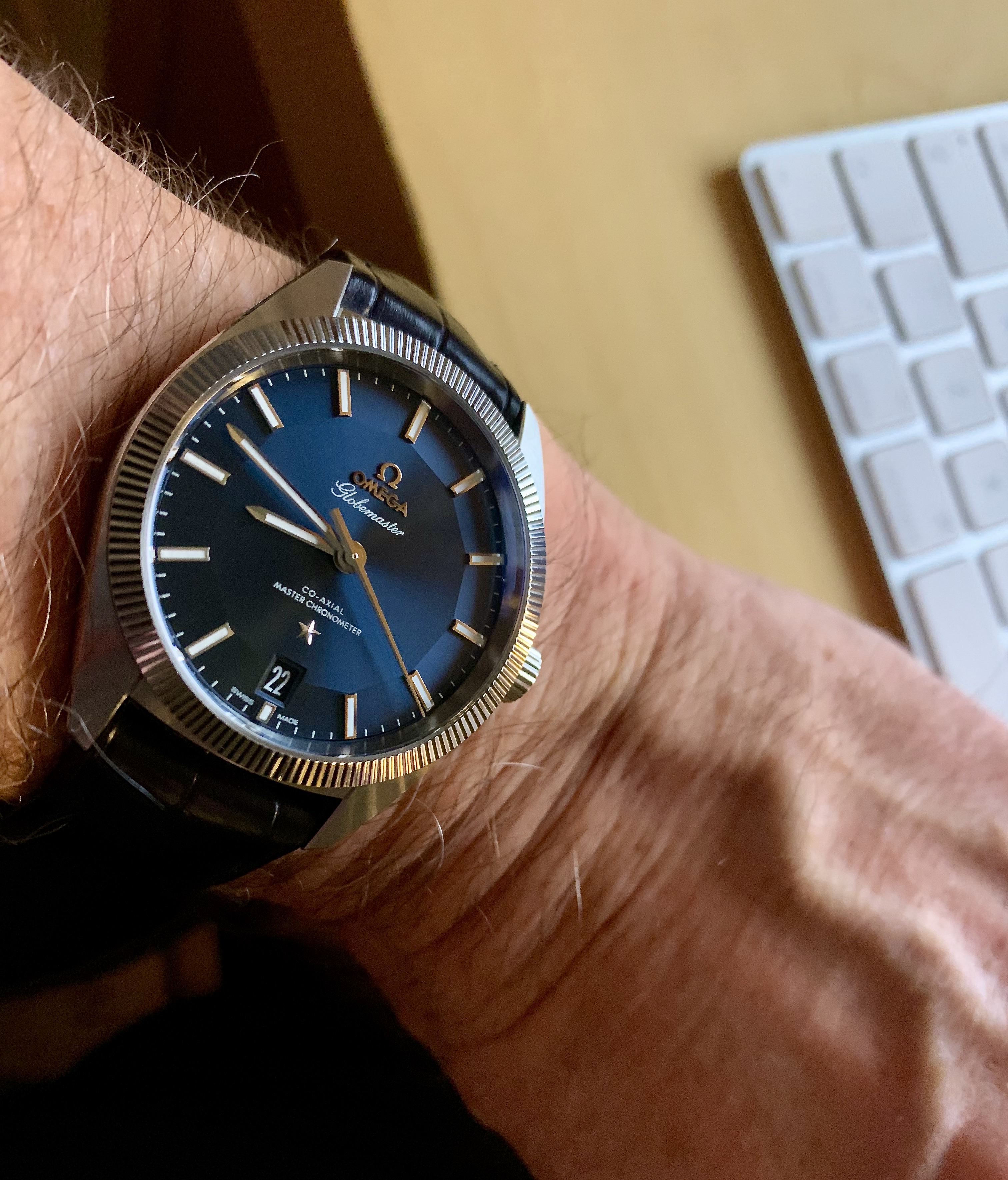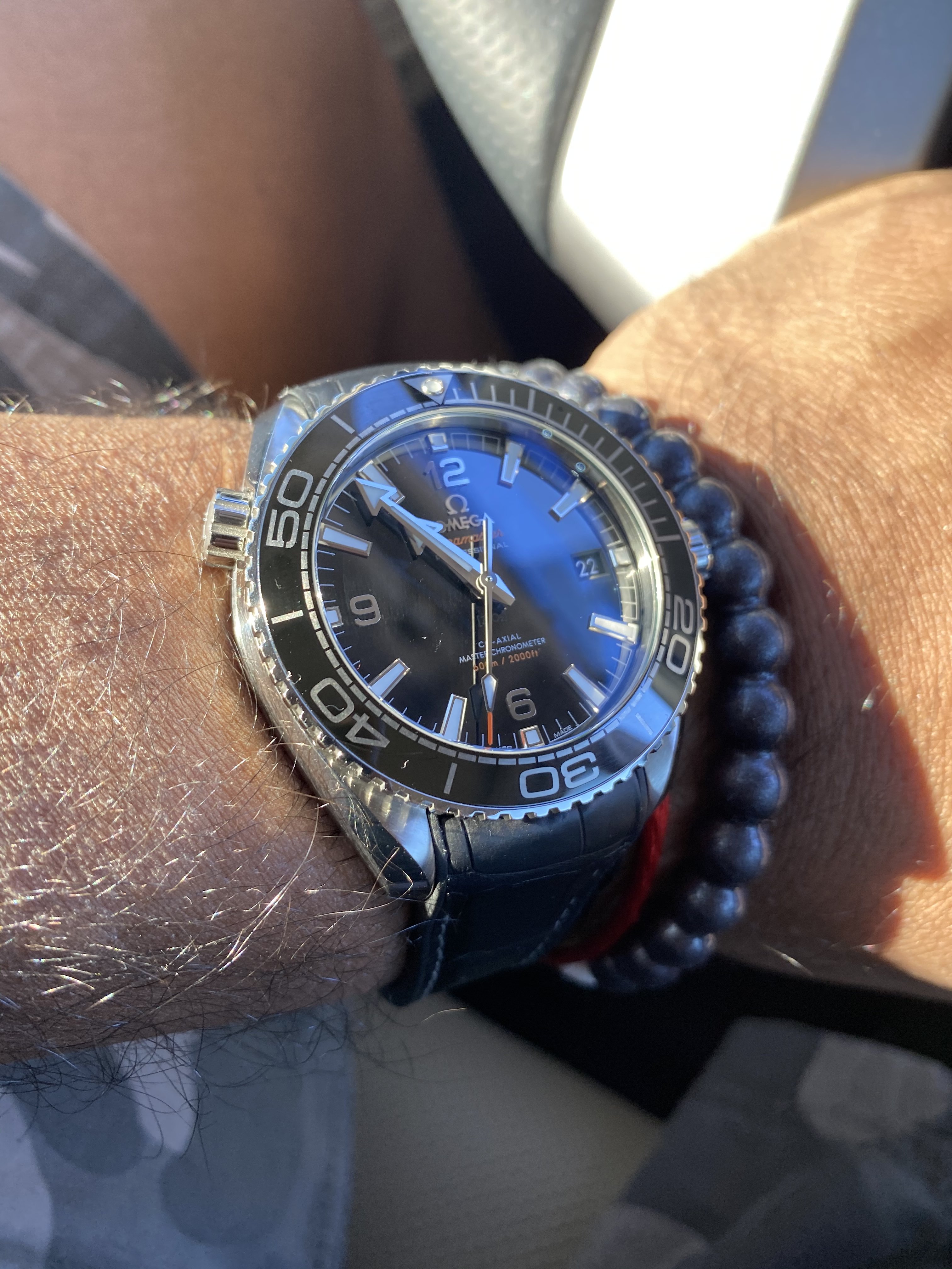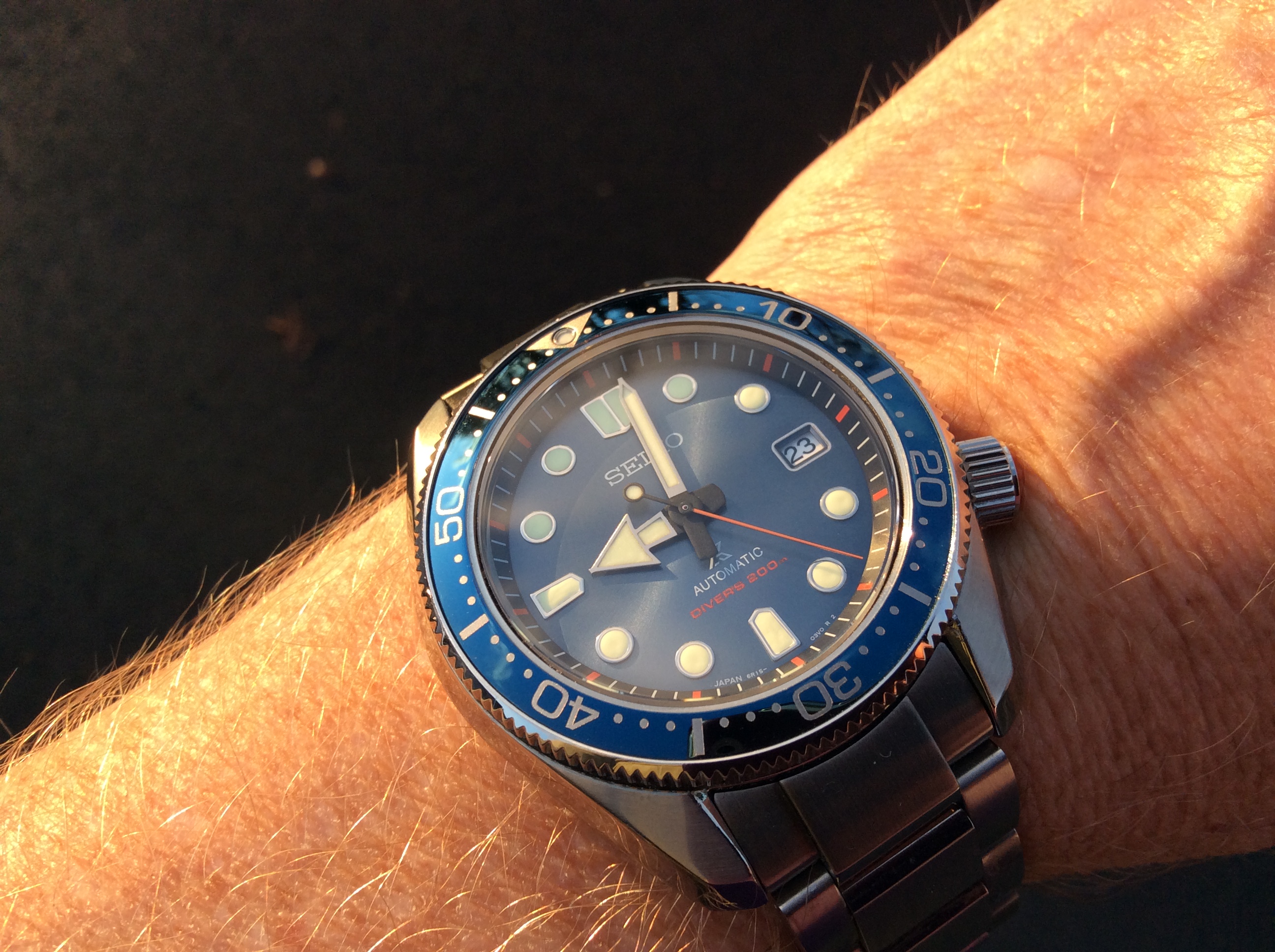 I had the pushers replaced and the central hands relumed as they were in pretty sad shape. There remains a small bit of rust after polishing the hands. Many would have left them as I found them, but they bothered me. I am a bit finicky. 😉..
