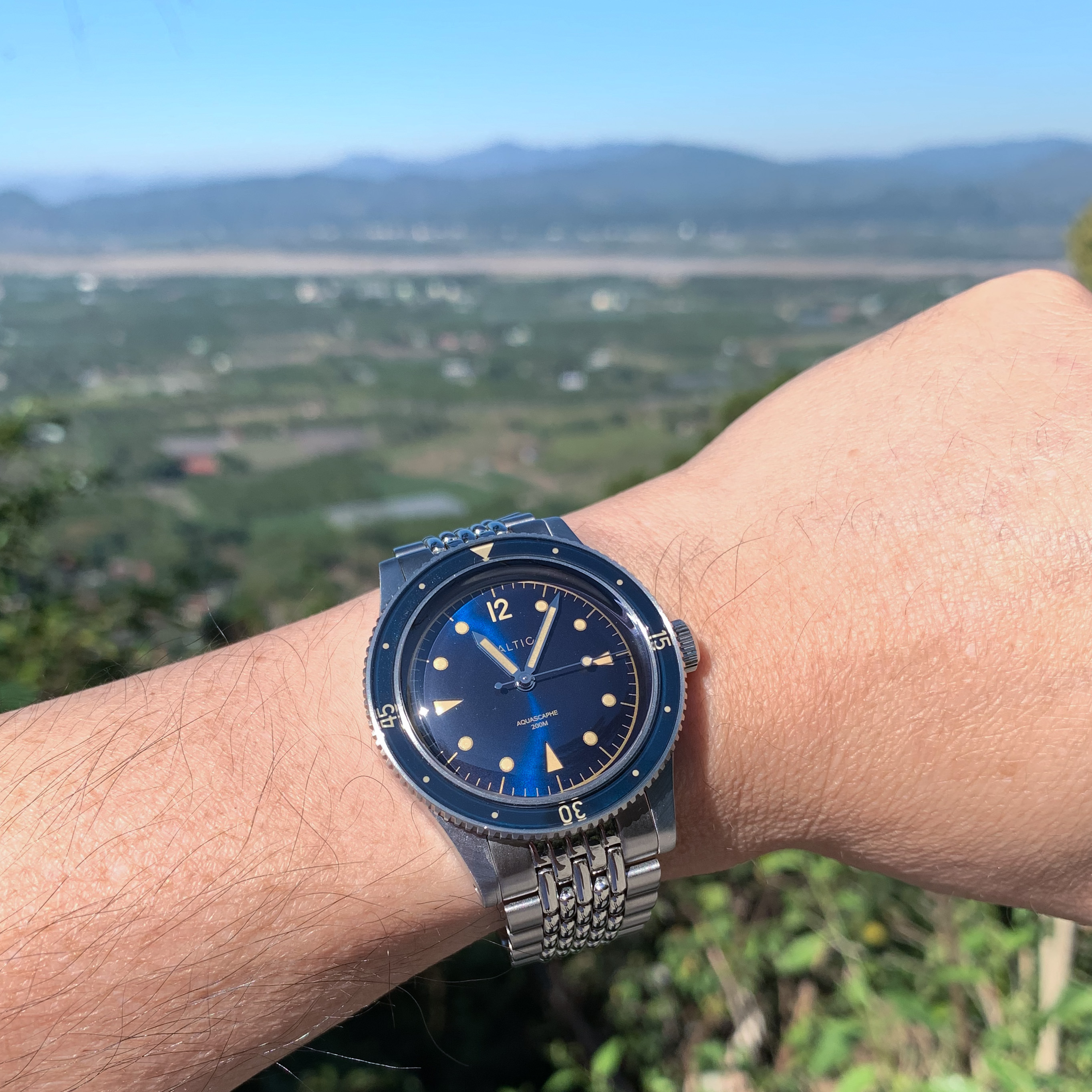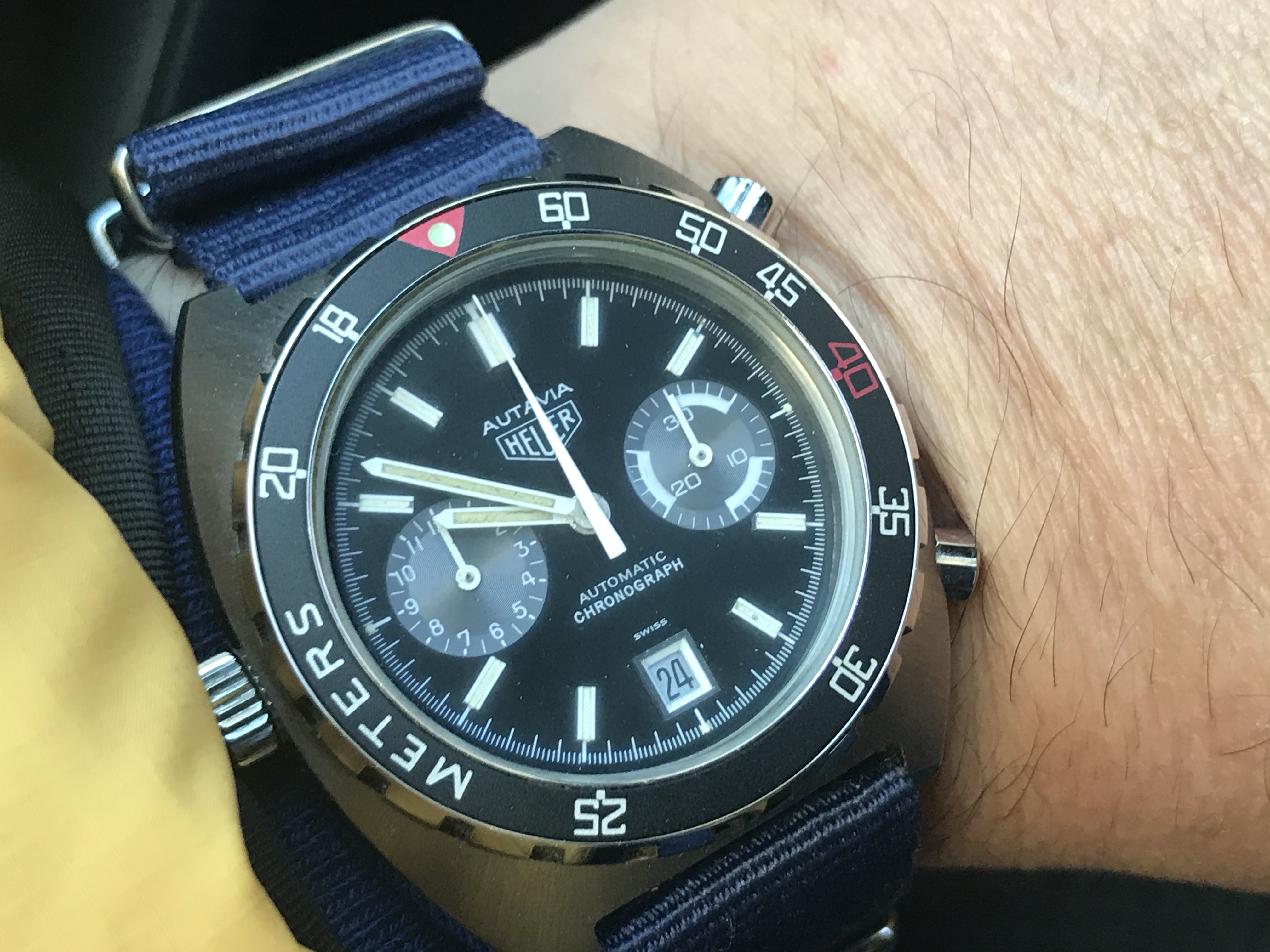 Posts 2,236 Likes 32,562 bristnj ·Dec 24, 2019 Brother from another mother to the Titus Calypsomatic 7085 - 1960's Technos Sky Diver “Big Crown” with 500M gilt dial (Cal.2472) - Oh that patina is sooo good!!