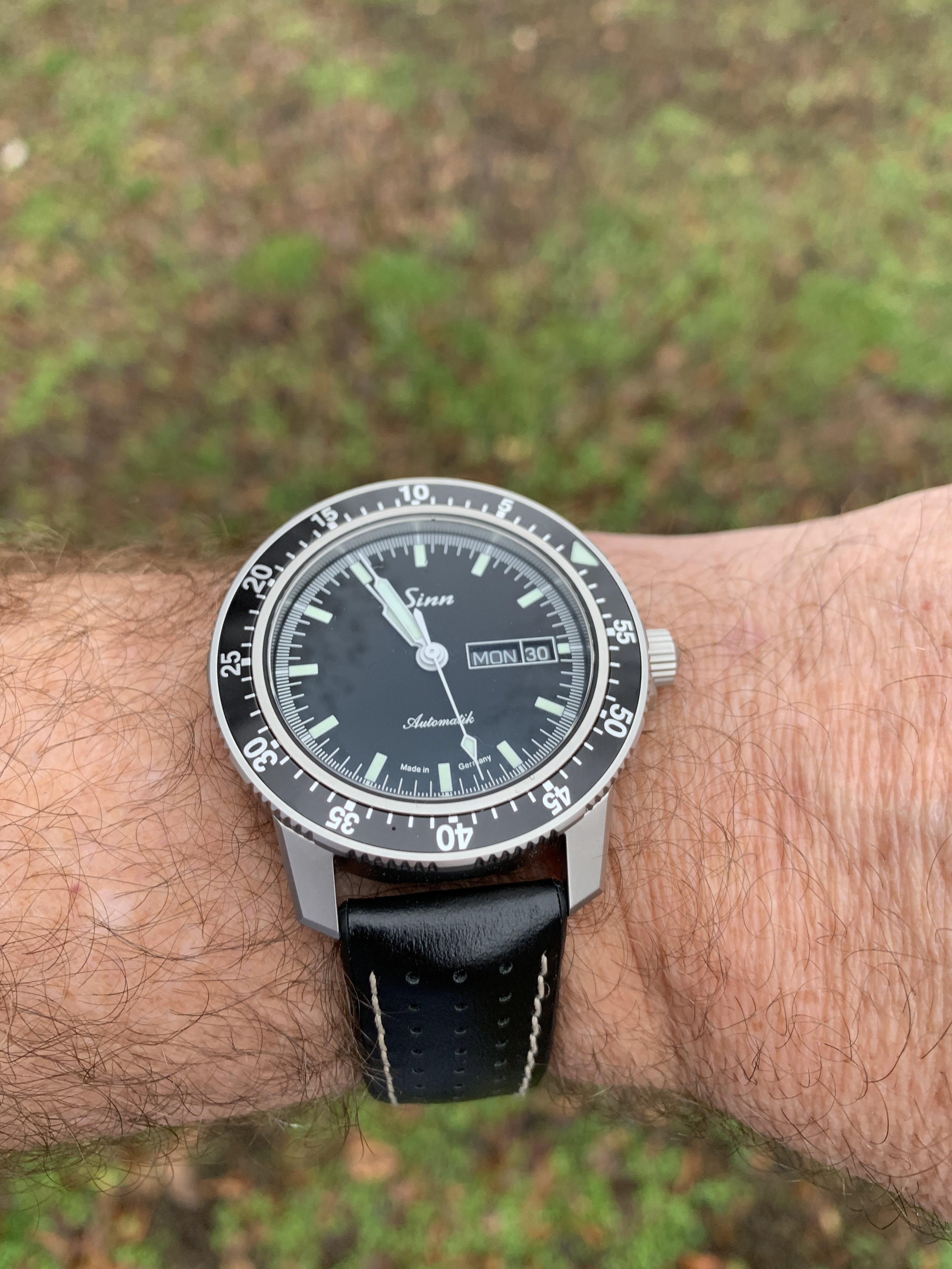 Sinn 104 St I - special edition - satin finish. Fantastic customer service from Watchbuys. This is my third Sinn purchase from them and this 104 had a problem. They took care of it right away and replaced the watch with out a hassle. I changed out the original strap to one purchased from Holbens - a Hirsch Performance Robbie strap. Super comfortable and I feel, fits the watch