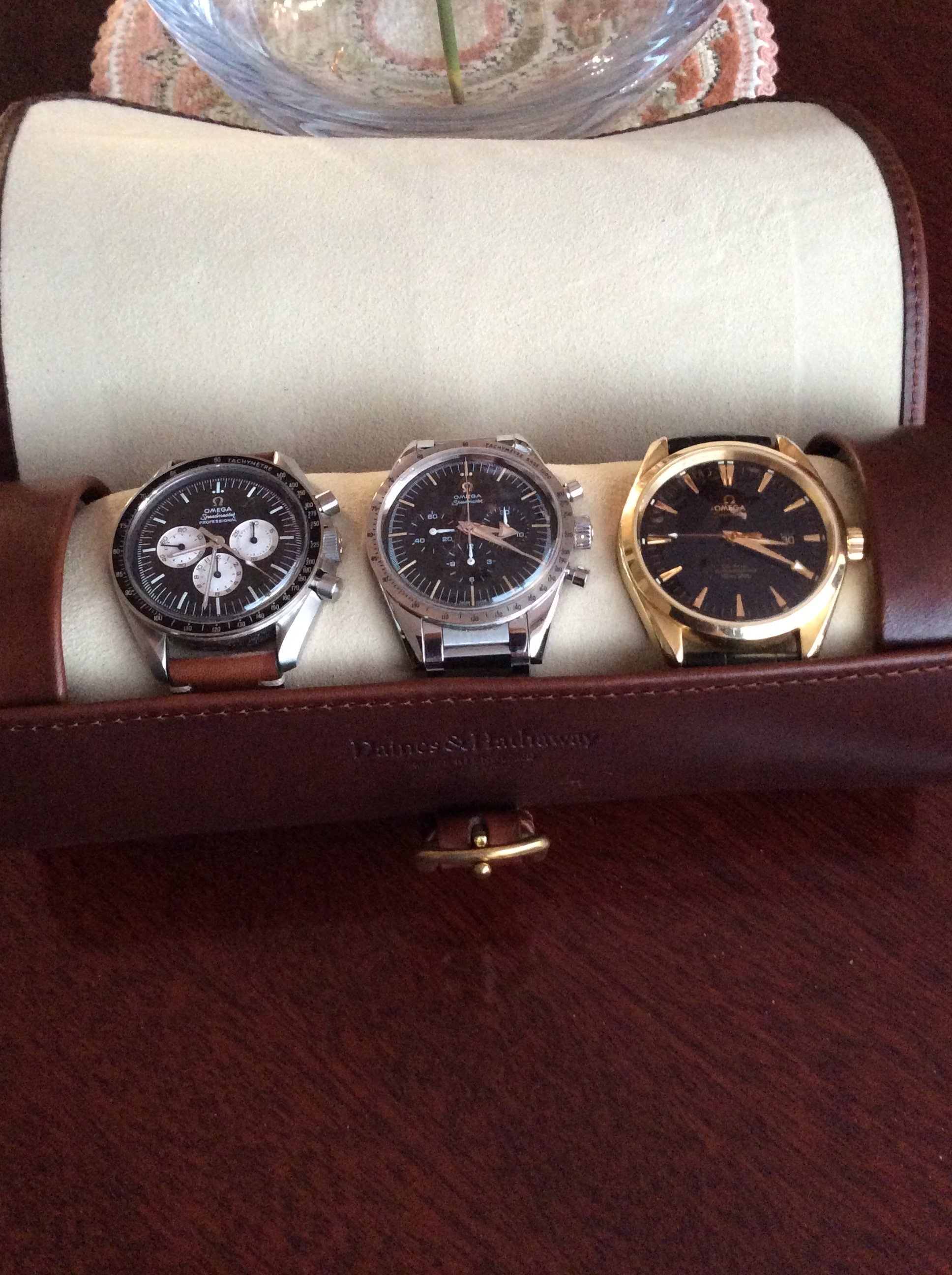 Been away for Christmas, back home now for New Year. I was given the watch roll by my wife and just loaded with two of my Speedies and the Seamaster AT I wore over the holiday. Back to wearing the Tudor GMT now!
