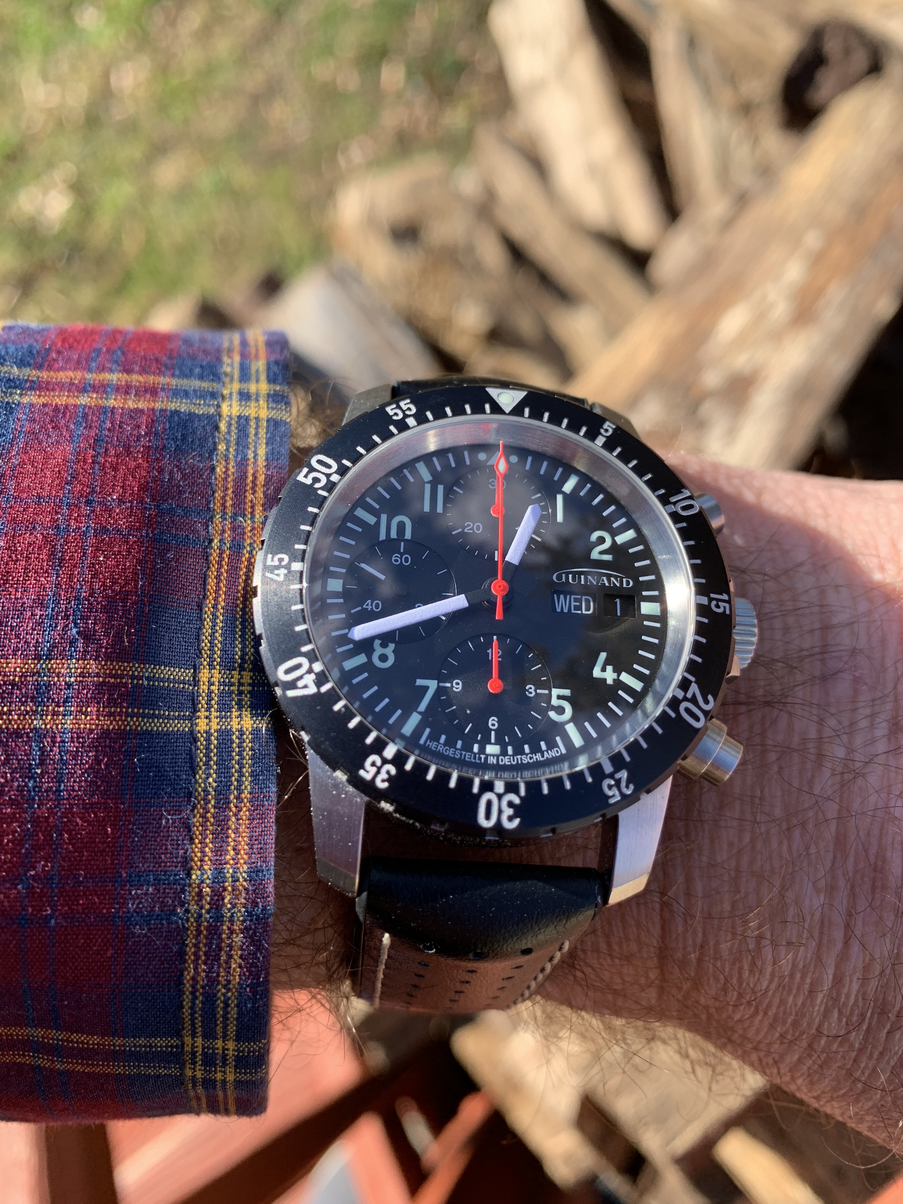 Posts 347 Likes 2,455 CameronD ·Jan 1, 2020 New Guinand for a new decade. 40mm Chrono with custom satin case from the good folks at Guinand.
