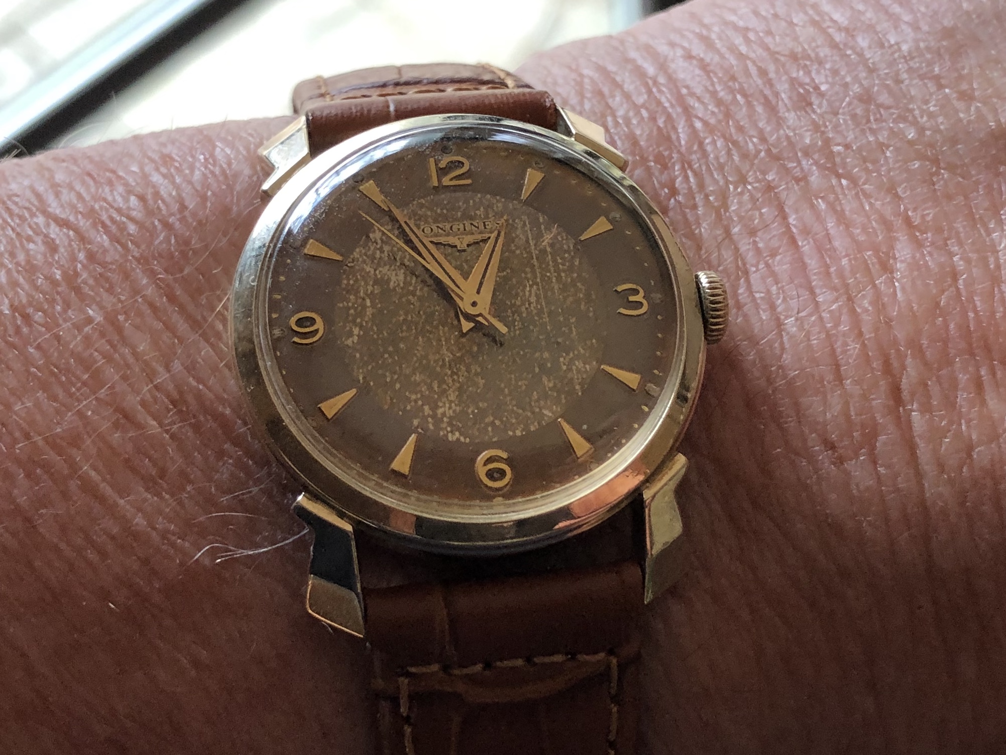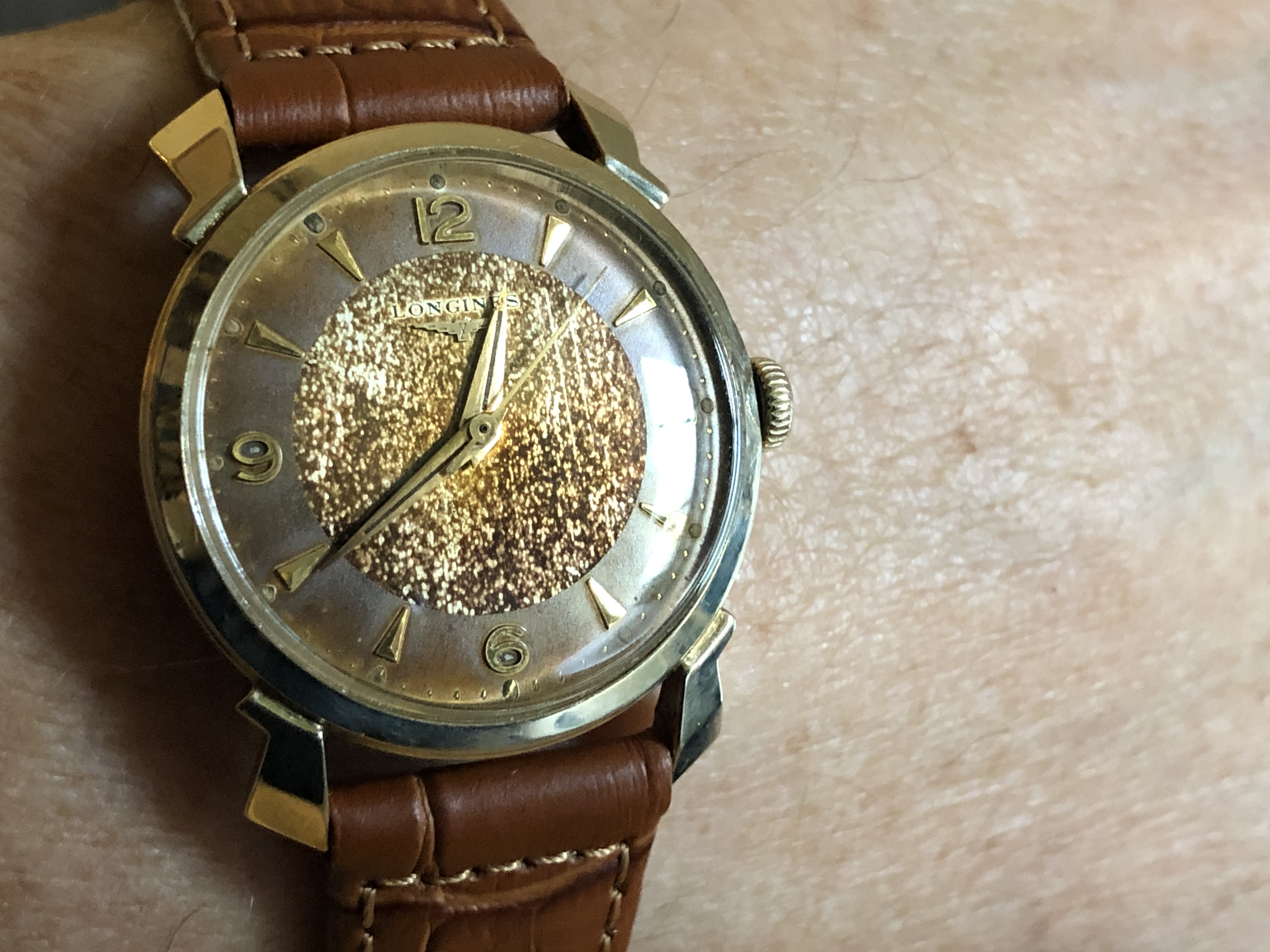 Still on a late '60s large cushion case binge; here's 145.008 - a difficult watch to photograph, in my opinion as showing the hour indexes, the dial depth and texture at once would require a mix of light qualities and directions.