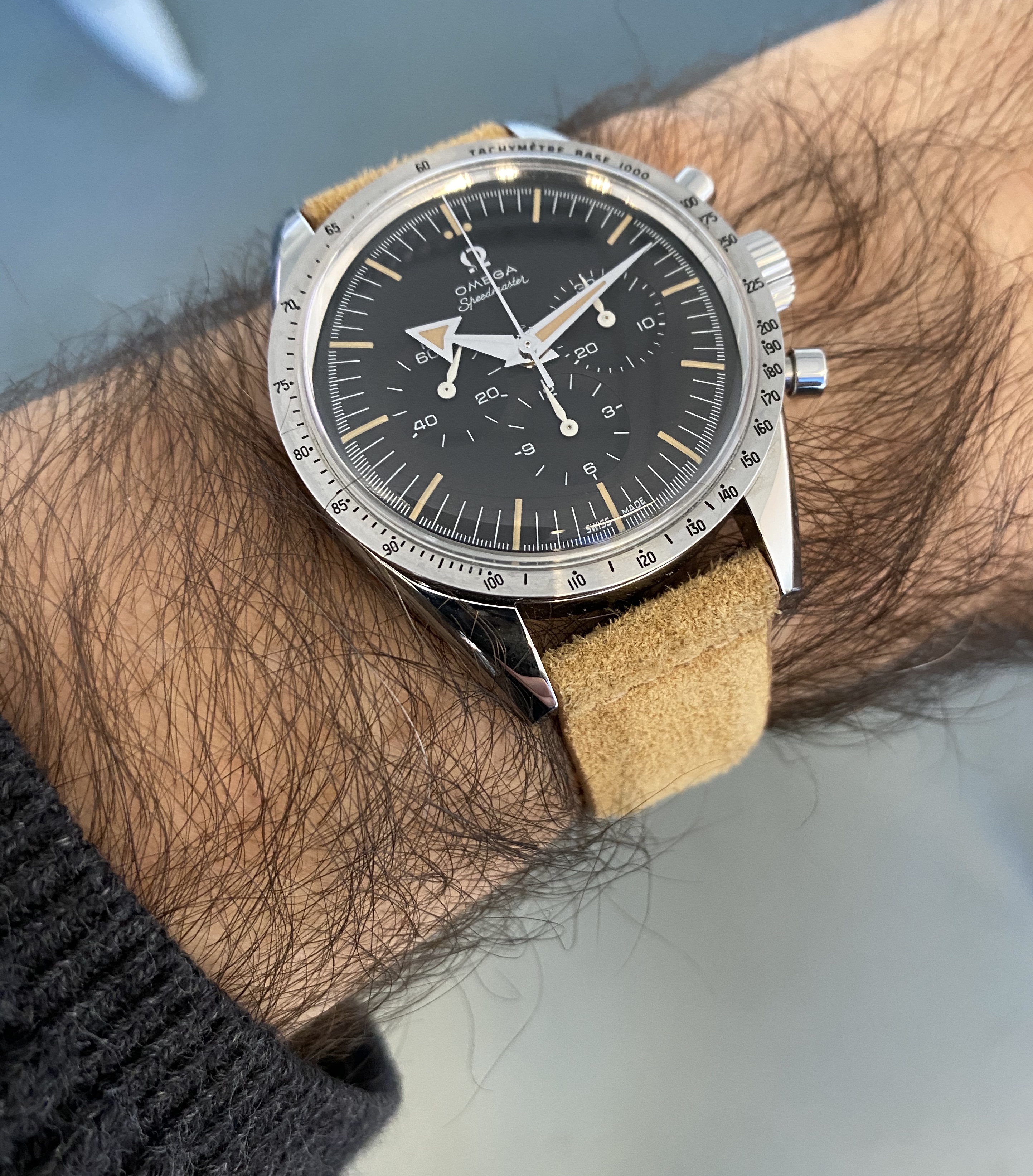 Freese 101 #21 on the window sill showing off its hand-applied vintage look. This was the first watch that was built to a customer's specifications - ie mine 😀 If you're not familiar with these, it's a venture set up by a very well known ΩF member, and Simon Freese - https://www.freesewatches.com/