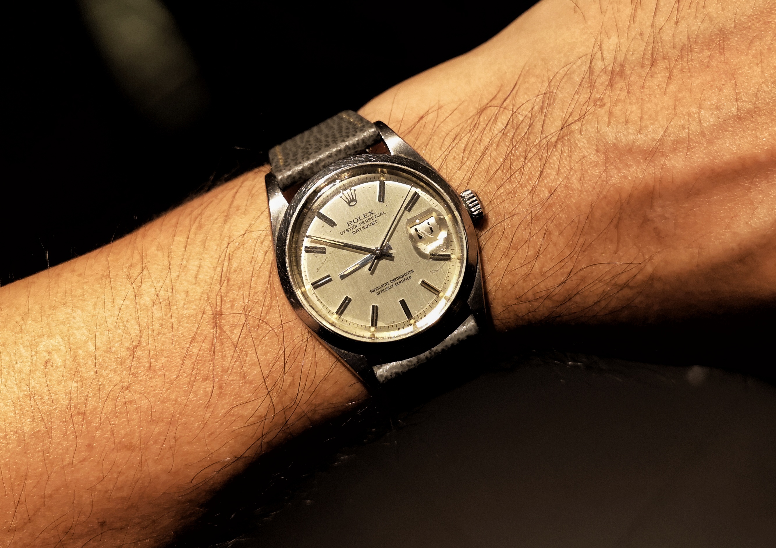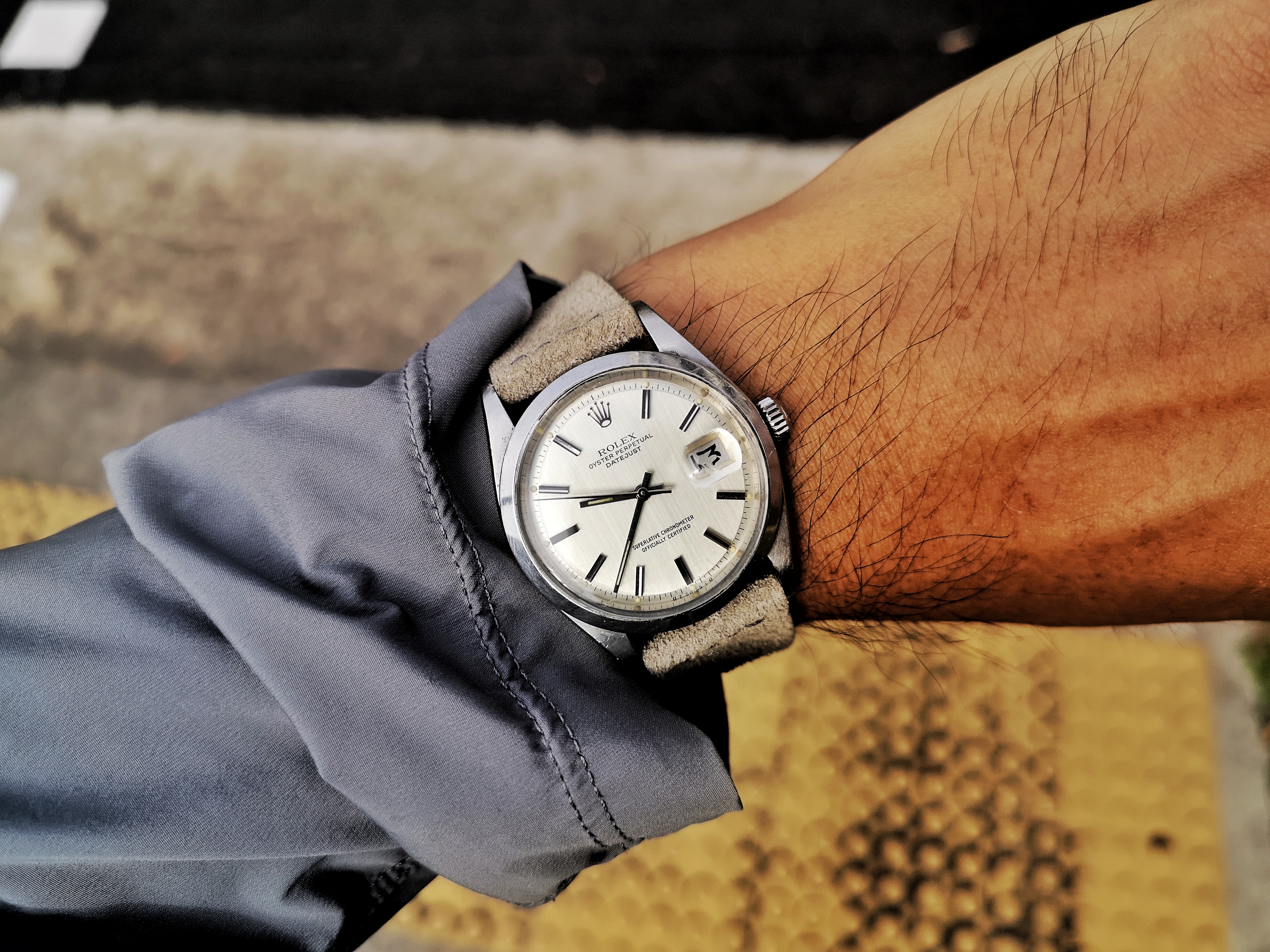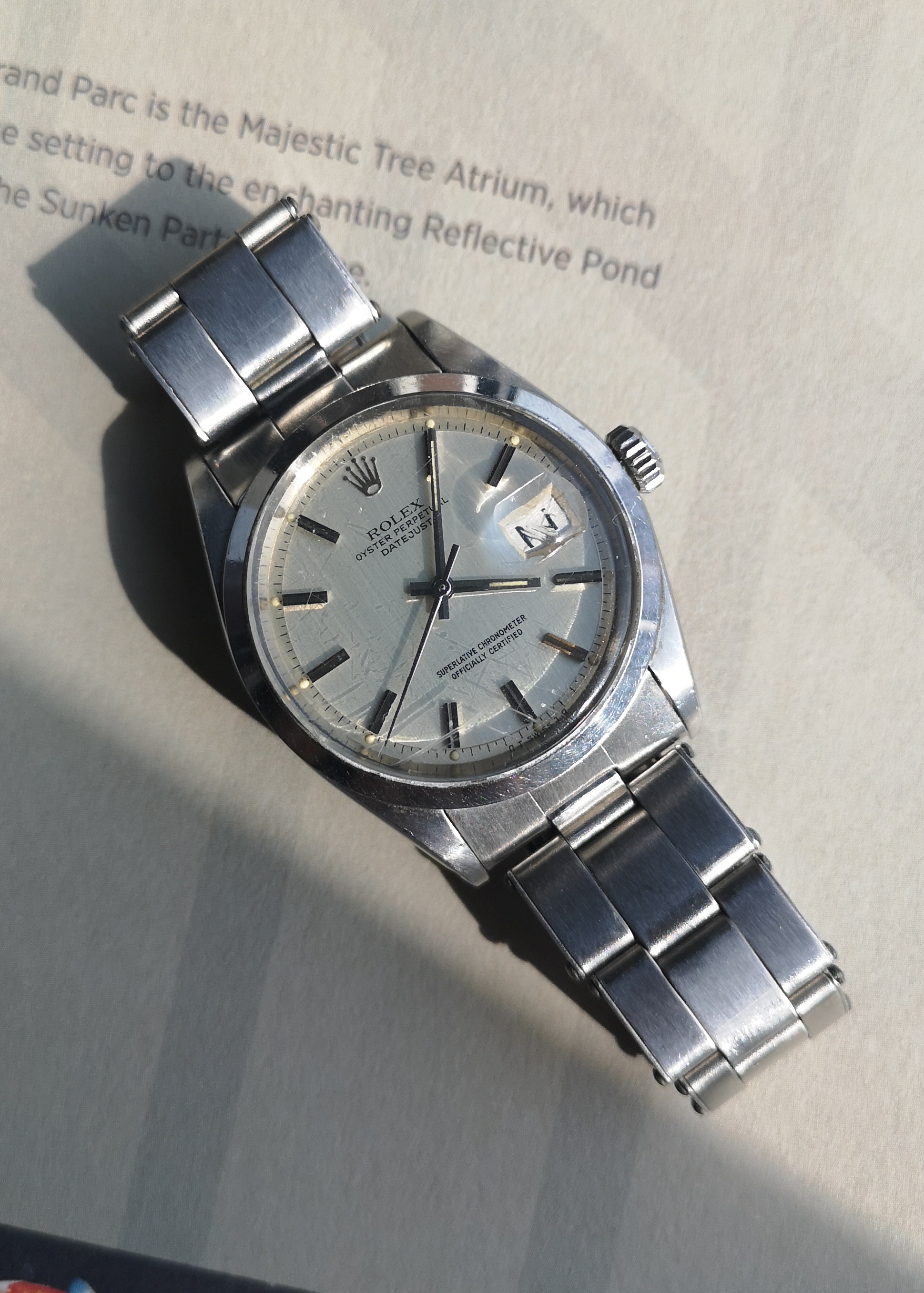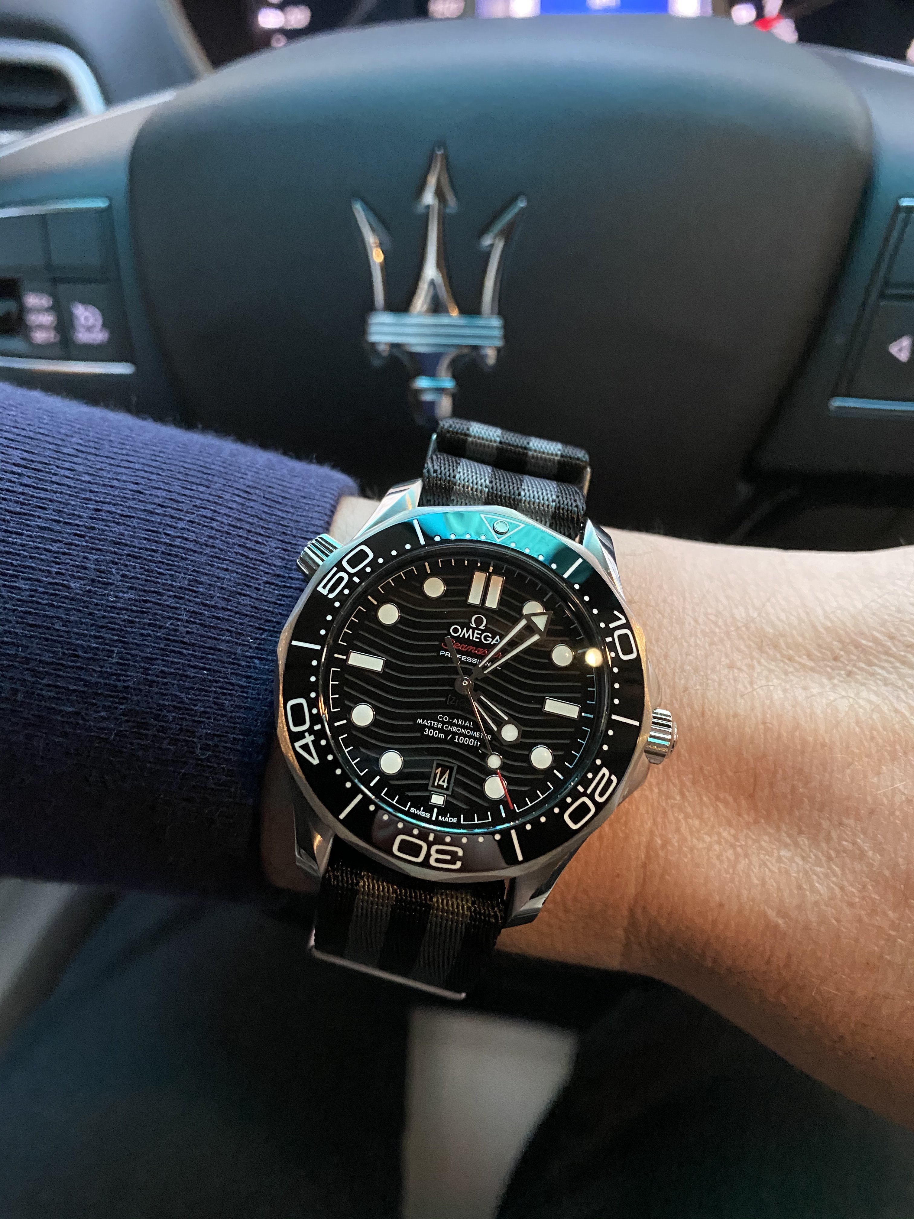Recent acquisition - Seamaster De Ville with a crosshaired, quilt-like dial. Even though it's got some black paint in the wrong places, I quite like it. It adds contrast to the dial and sets the watch apart.