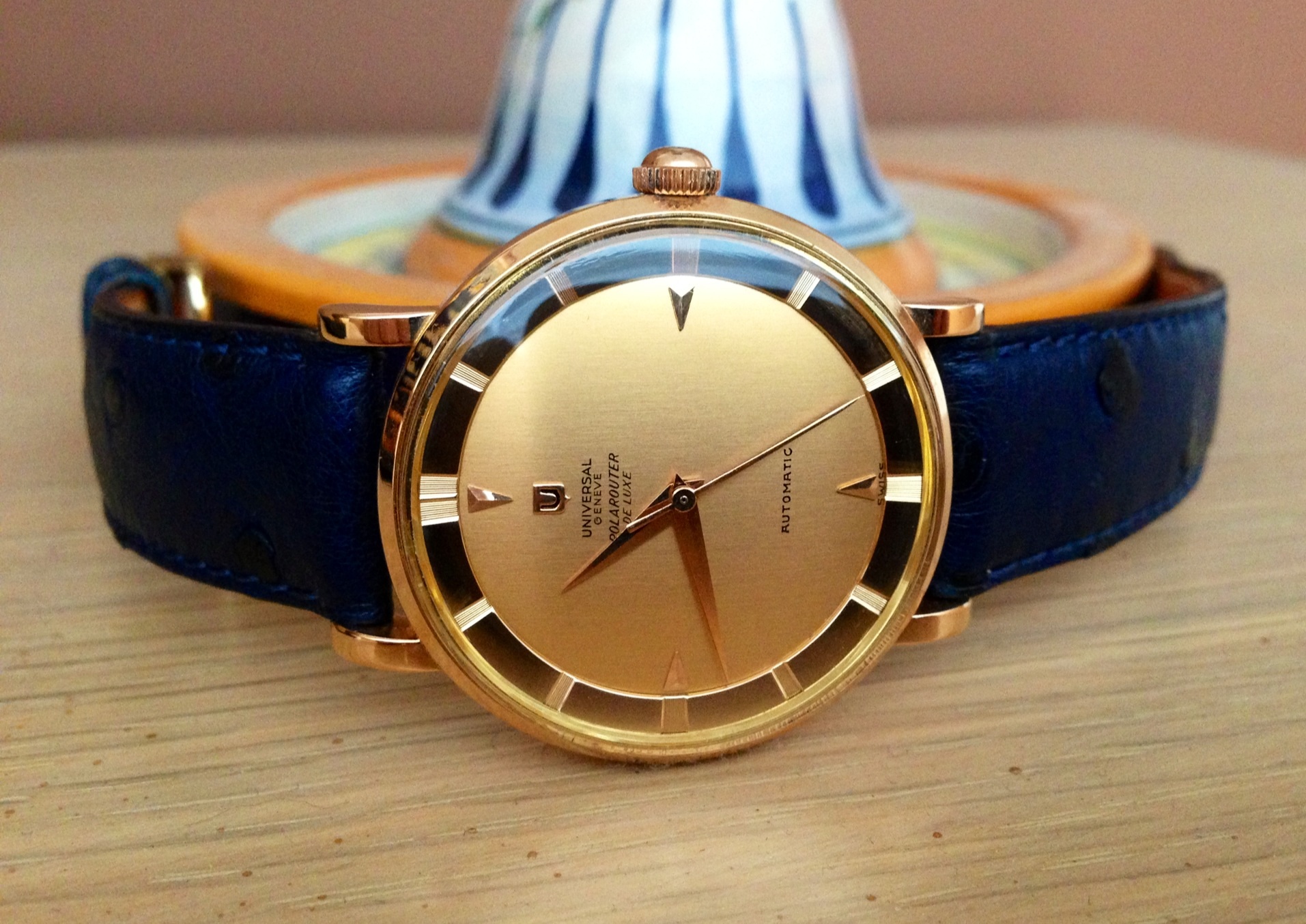 Heading to beautiful Hyde Park, NY today to celebrate a wonderful event, the 50th wedding anniversary of my dear Aunt Eileen and Uncle Paul . 50th is golden so I'll use this opportunity to take my 1954 RG Polarouter out for a spin (bump, more precisely). Matt Bain claims this is one of the finest known examples of this specific reference in the world and I've no reason not to believe him. Gerald Genta's first vision seen out.