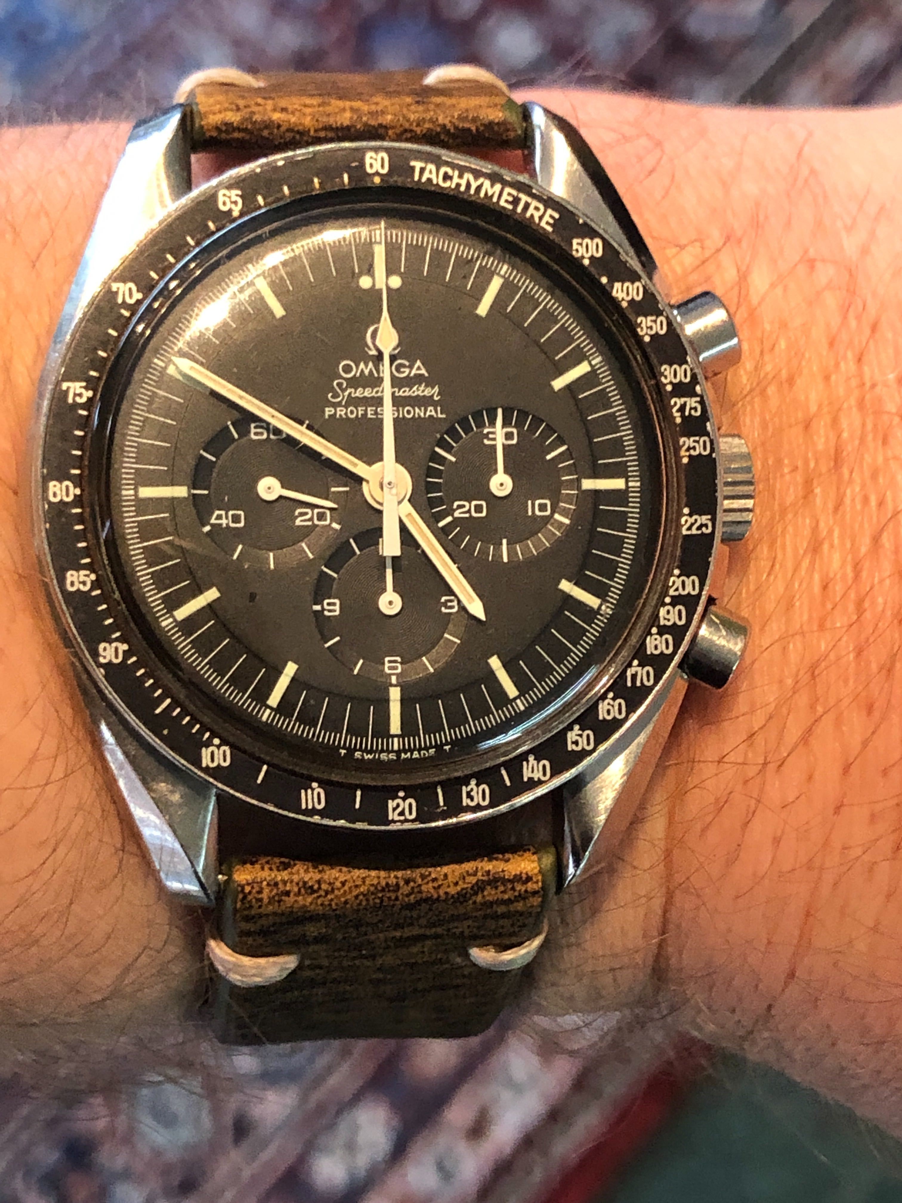 And not "wearing", but I got to try on my first vintage Speedmaster today when I stopped by a local watchmaker I've been going to since getting into this hobby.