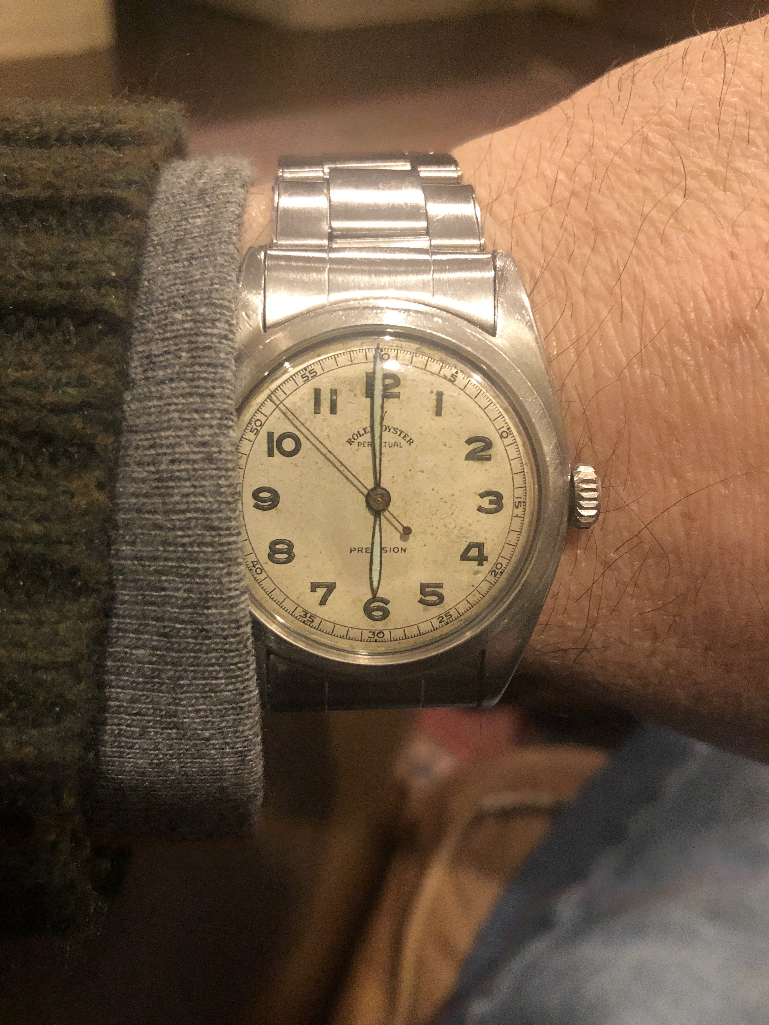 It was my Fathers watch and he almost never wore it and when he passed away in 1980 it went to me where other than a full service back in 1990 it never got worn. Since that time its been worn maybe 4 or 5 days total, main reason being I hate leather straps and putting on and doing up buckles is a chore to me and the previous expander bracelet wasnt (like all) secure as it would have likely flown off my wrist. 😁