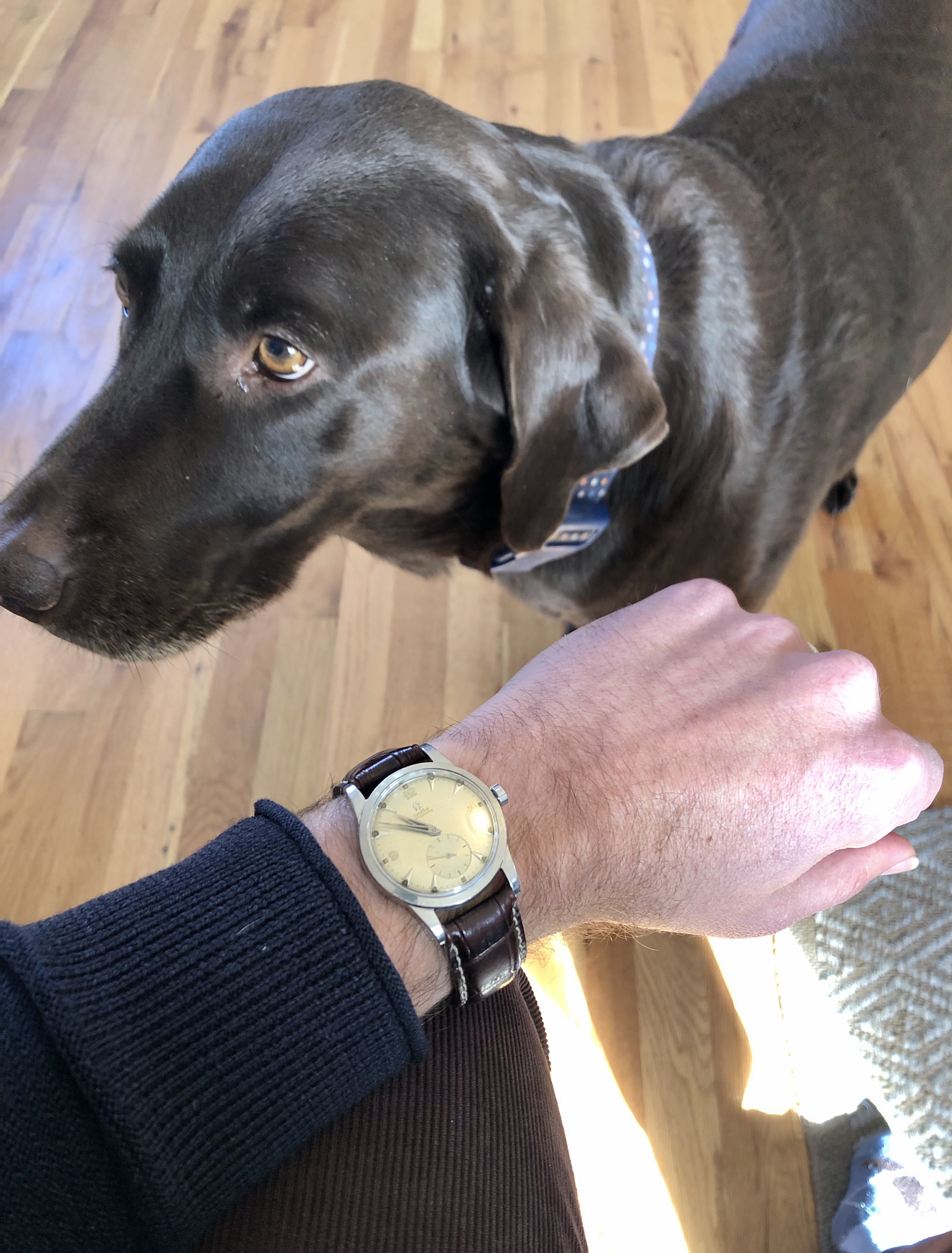 Posts 618 Likes 11,030 cgaites ·Jan 23, 2020 Matching my watch, pants, and dog today. Vintage Seamaster with a nearly vintage chocolate lab. Both still in lovely condition 😀