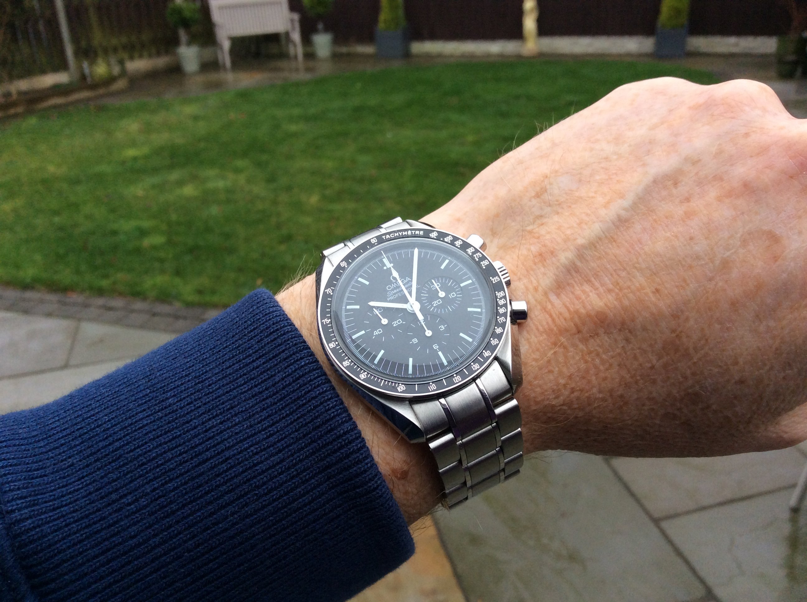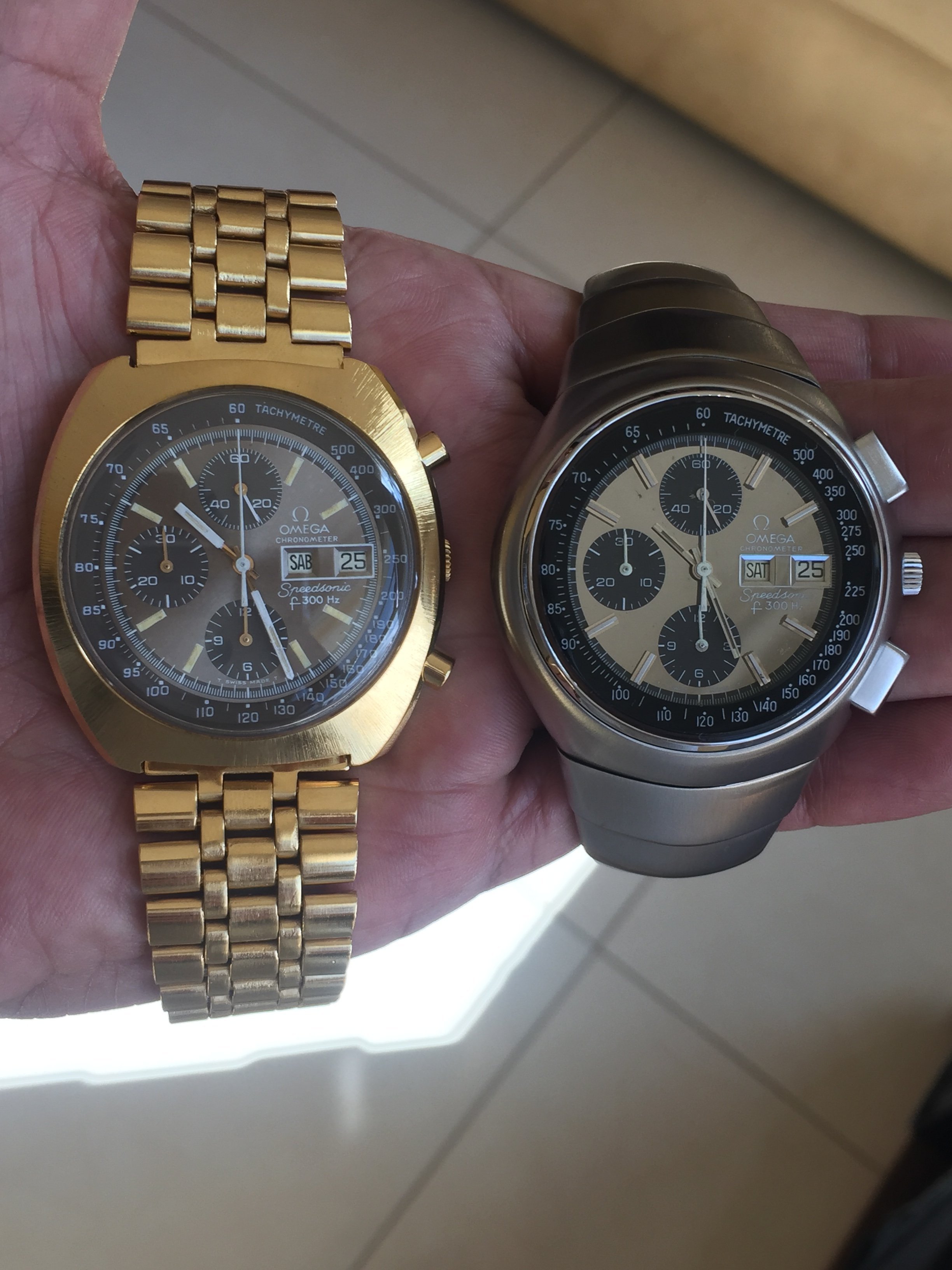 My solid gold 18K Speedmaster head weighs the same…94g! (I only have an on-scale pic of it with strap, but trust me I’ve logged it in at 94g head-only) So in your case, your 002 not only looks like a gold watch…it FEELS like one!!! Enjoy!