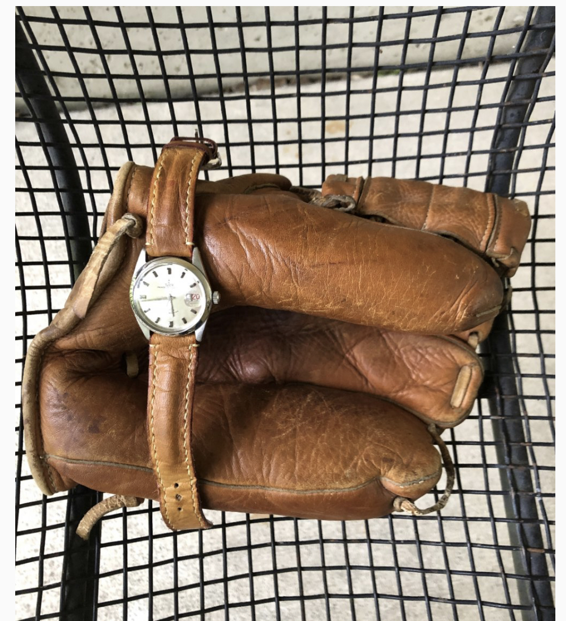 Now that is very, very cool. You made your own strap from an old ball glove. It looks terrific. Is that the actual donor glove? How would you feel about slicing out another? Two of my favorite things together: Old mitts and old watches. I'm an A2000 man.
