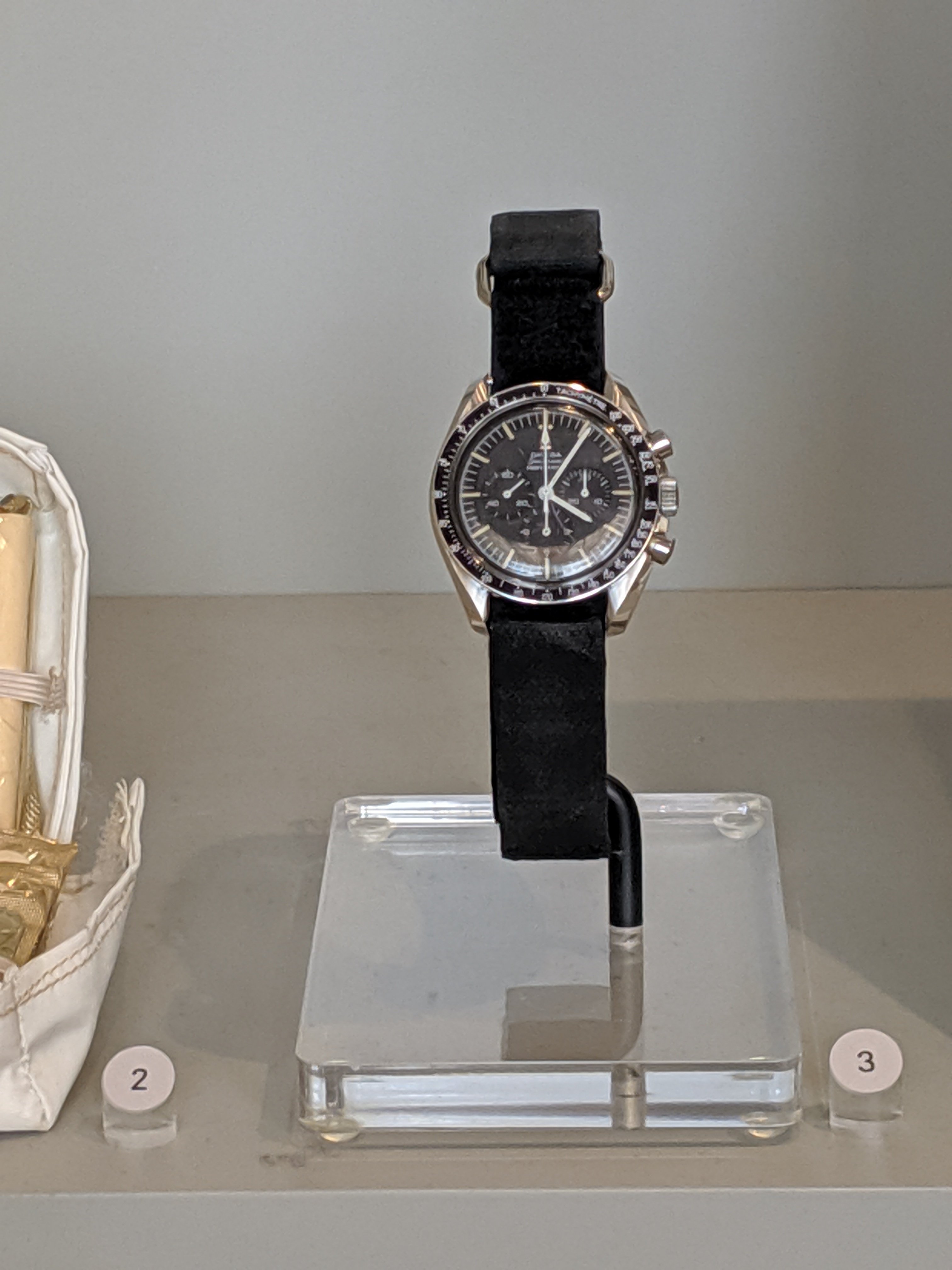 Posts 3,562 Likes 24,045 Dsloan ·Feb 2, 2020 Checking out Neil's Speedy at the Air and Space museum. While wearing my non-speedy Chrono: Also, the Wright Brothers' stopwatch from the first flights at Kittyhawk. Sidenote: Neil's Speedy looks suspiciously clean and shiny. Was hard to tell through the display case, but I'm wondering if the real one's in storage.