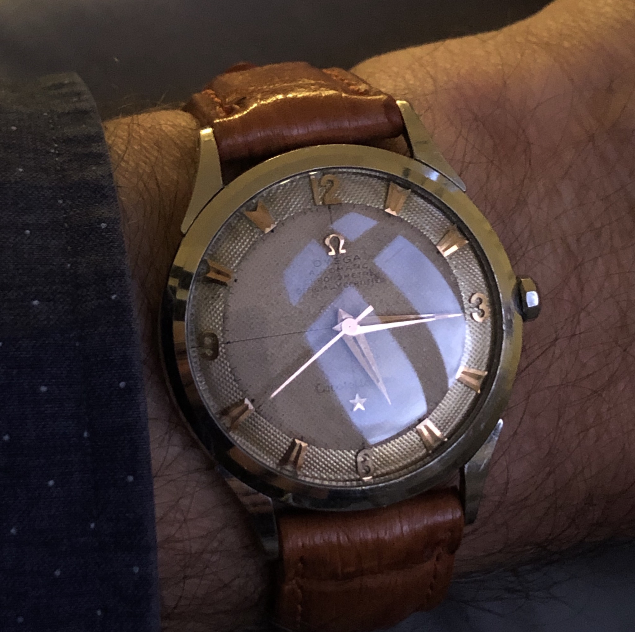 Posts 9,483 Likes 51,968 gbesq ·Feb 4, 2020 Wearing my Globemaster today. I’ve got a soft spot for any Omega with a pie pan dial.