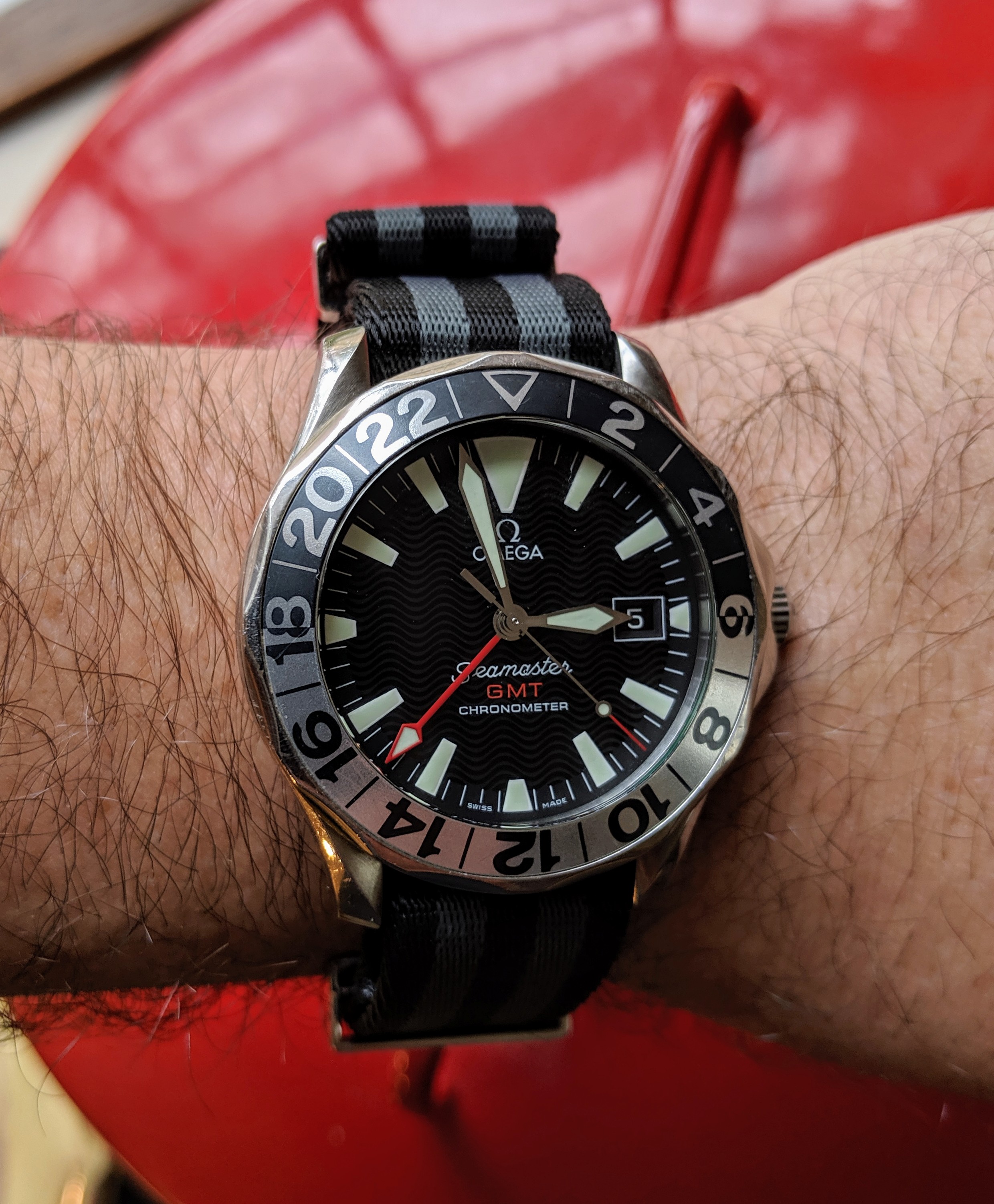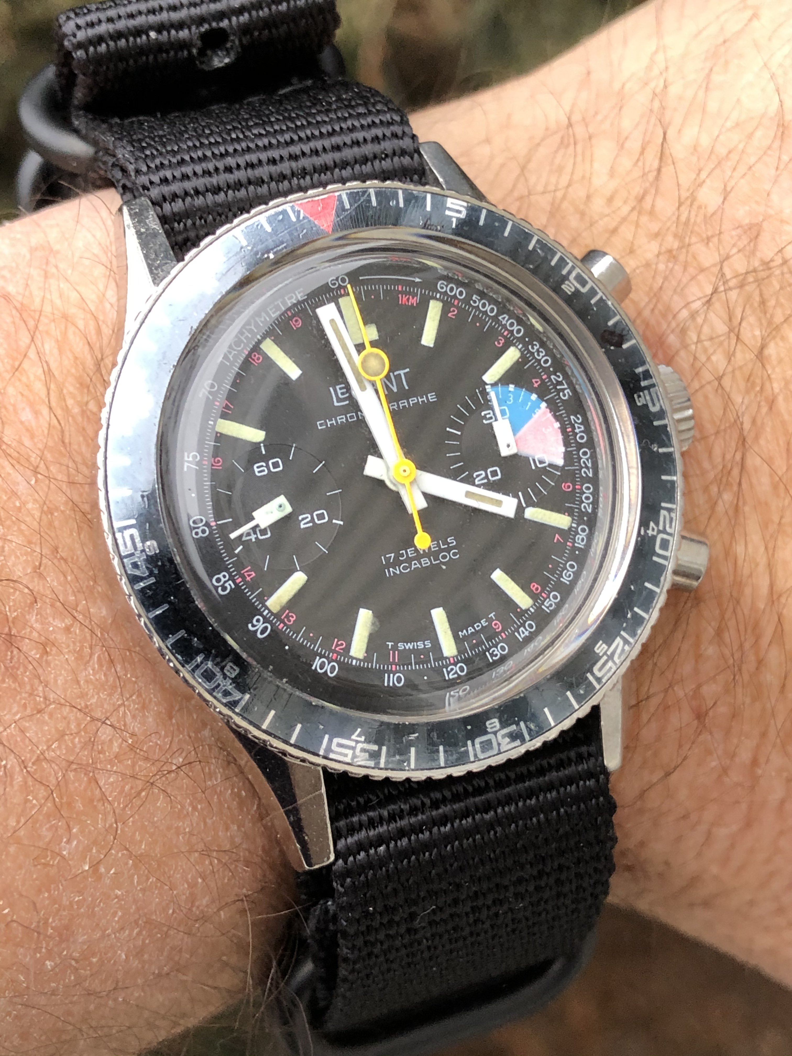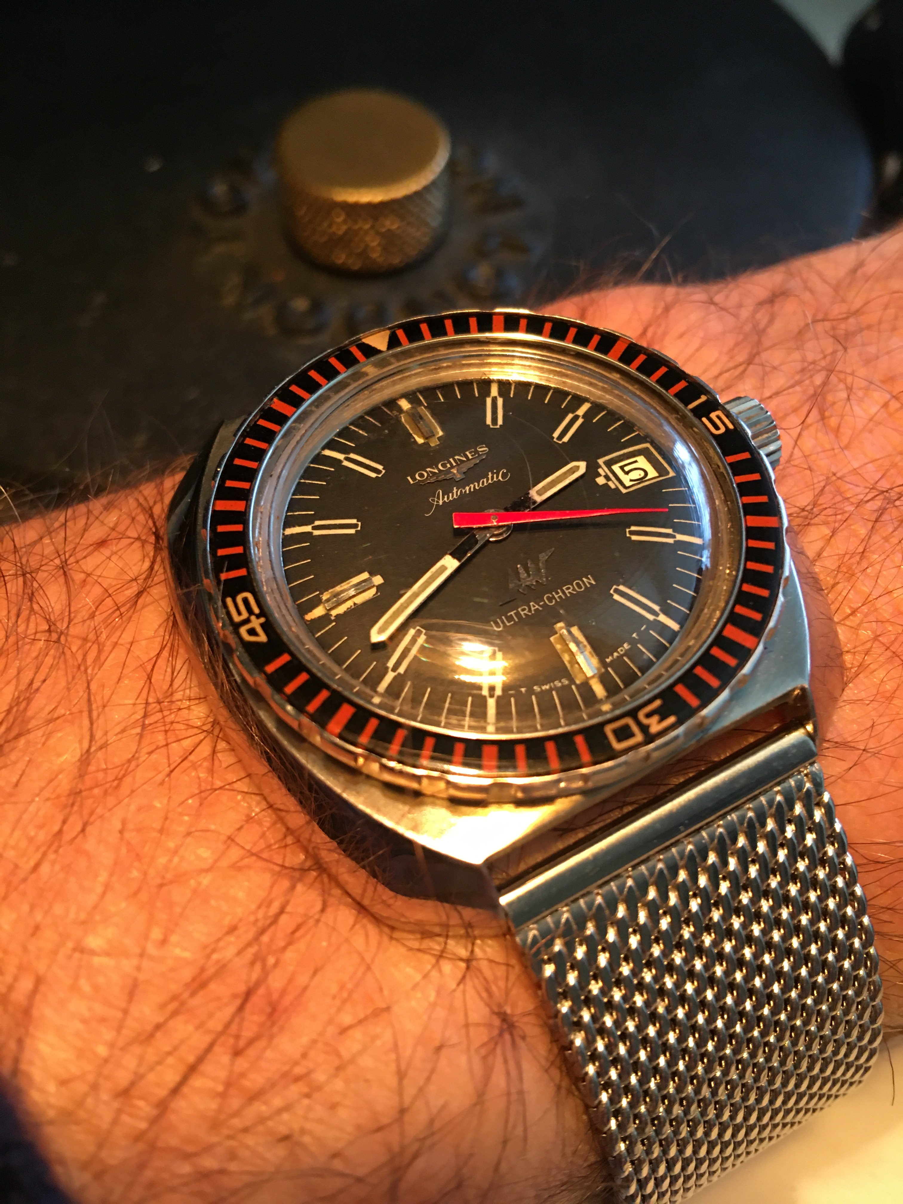 I received a technical question from a frequenter of this MB, on an Omega F300 (electronic), recently. I had to dig this one out so I could refer to it, in order to reply to him. Since I had it out of the vault, and it was on the correct day, I decided to put the Accutron Spaceview aside and give it a rest, and wear this one for a change. This watch is about 50 years old, and the gold filled case is in excellent condition, with no brass showing. The strap is a generic one made of bison hide. I quite like it. It came to me with the typical calendar malfunction (plastic date ring with chipped teeth). The owner had given up on it. 😀 I managed to find a replacement date ring from a collector in Mannheim, Germany (thanks eBay), and the watch is serviceable again.