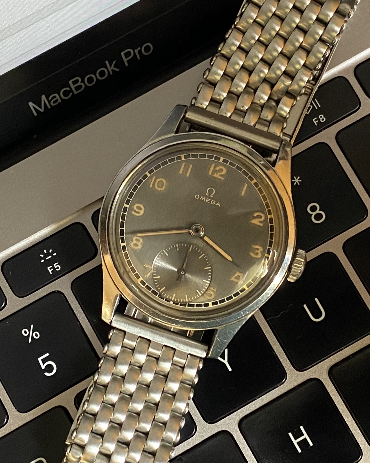 WFH with Grey-dial, Rail-minute track Omega Suverän from the 1944