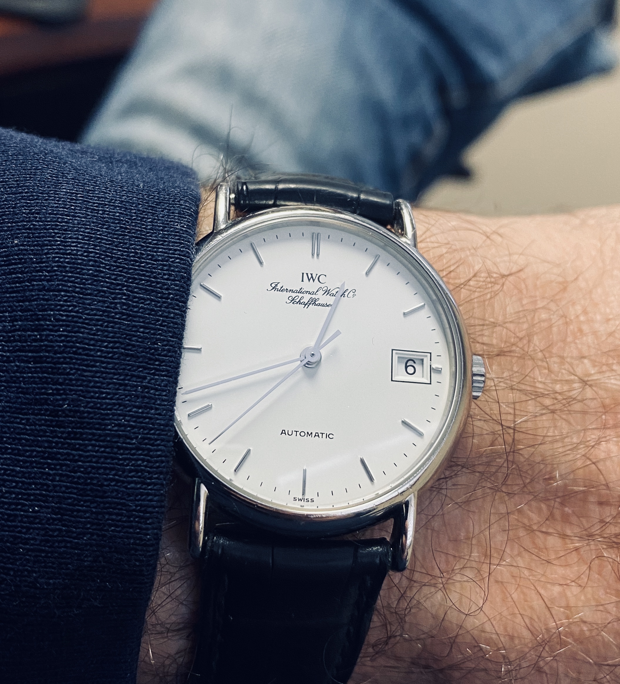 Posts 825 Likes 8,248 Njnjcfp88 ·Apr 6, 2020 Surprisingly..Kinda miss wearing the suit; threw the IWC Portofino on anyway.