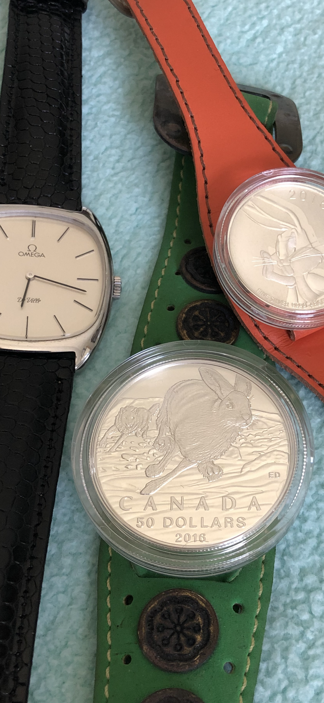 Easter egg. I caught the Easter Bunny in the act. He was trying to figure out what all the dials and numbers and colors were for. He seemed to have doubts about a yachting watch with a snap on back that is no more water resistant than my father's Timex Dynabeat. (zero atmospheres...is there a negative atmospheres rating?)