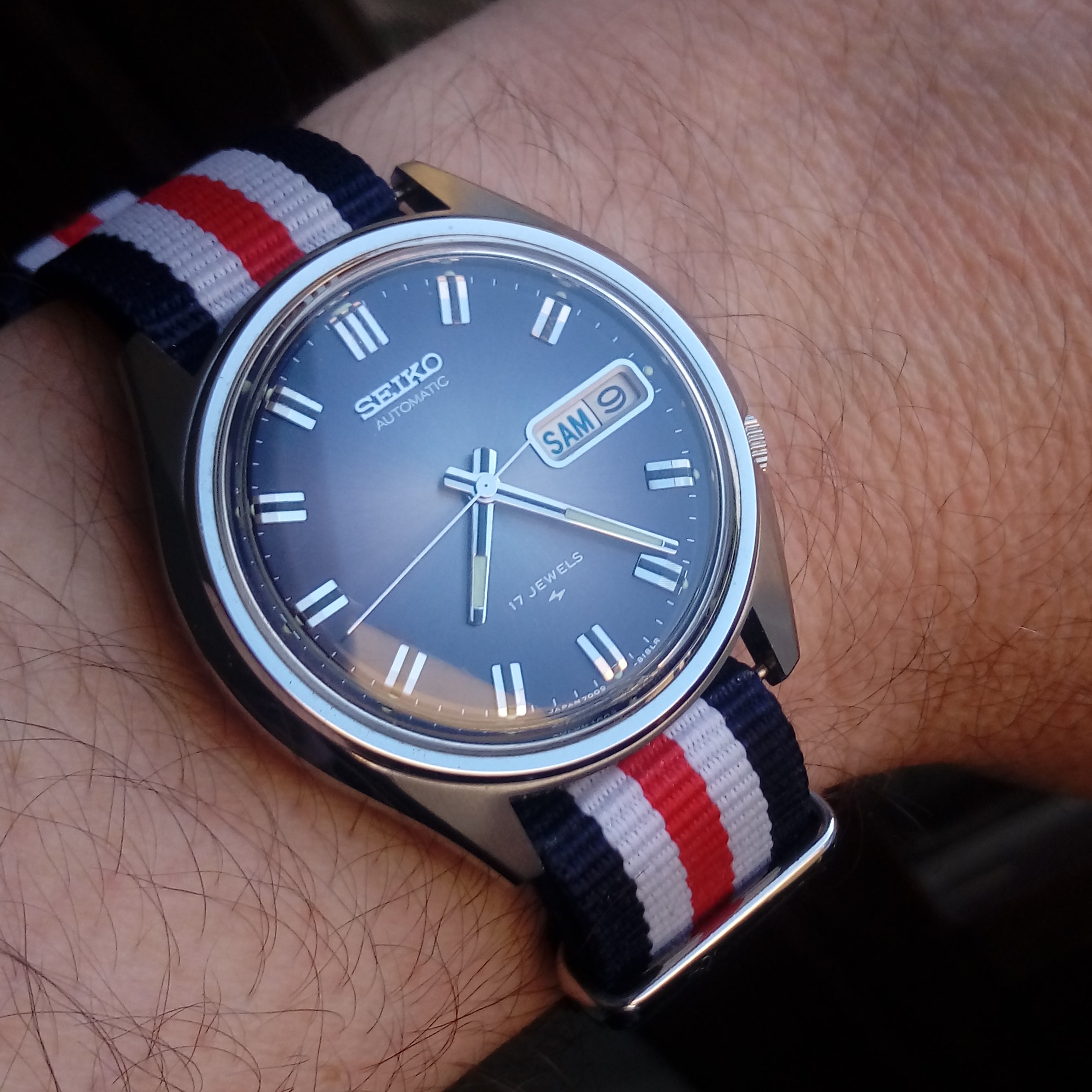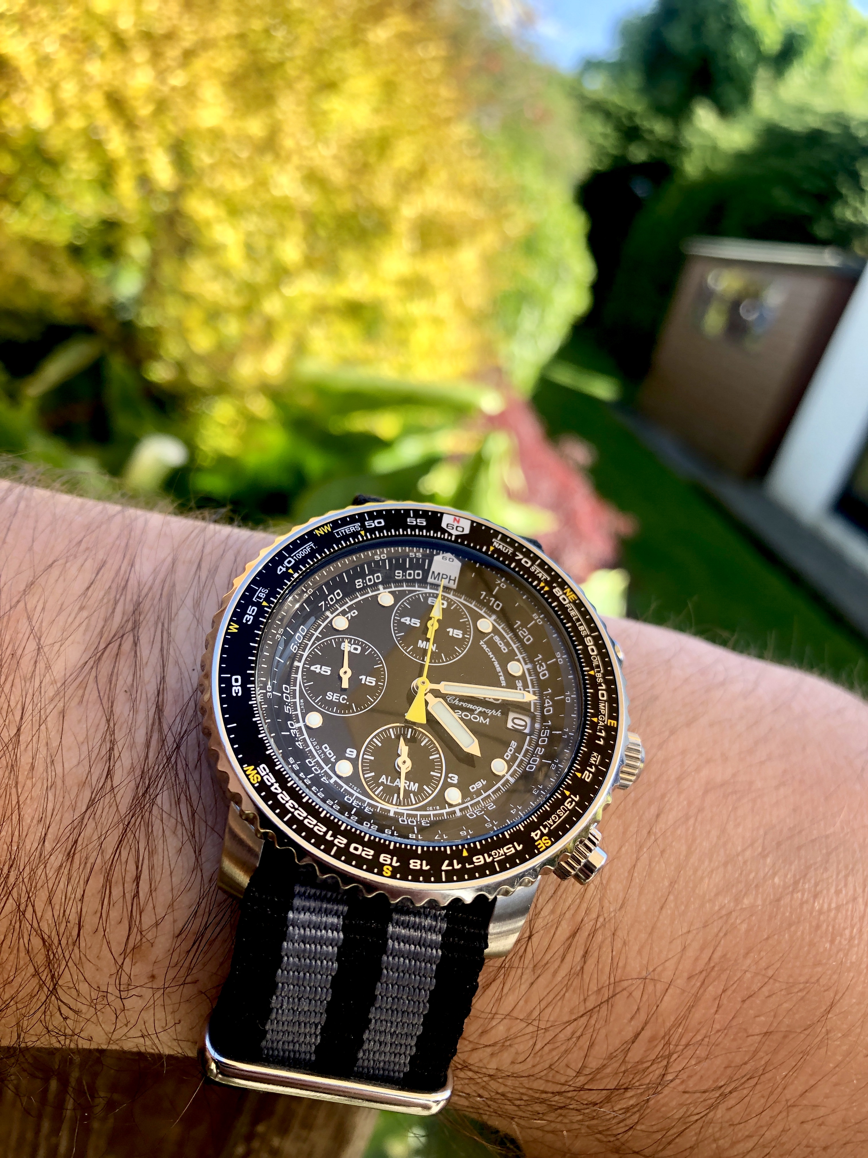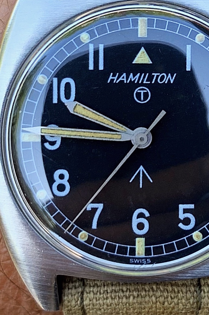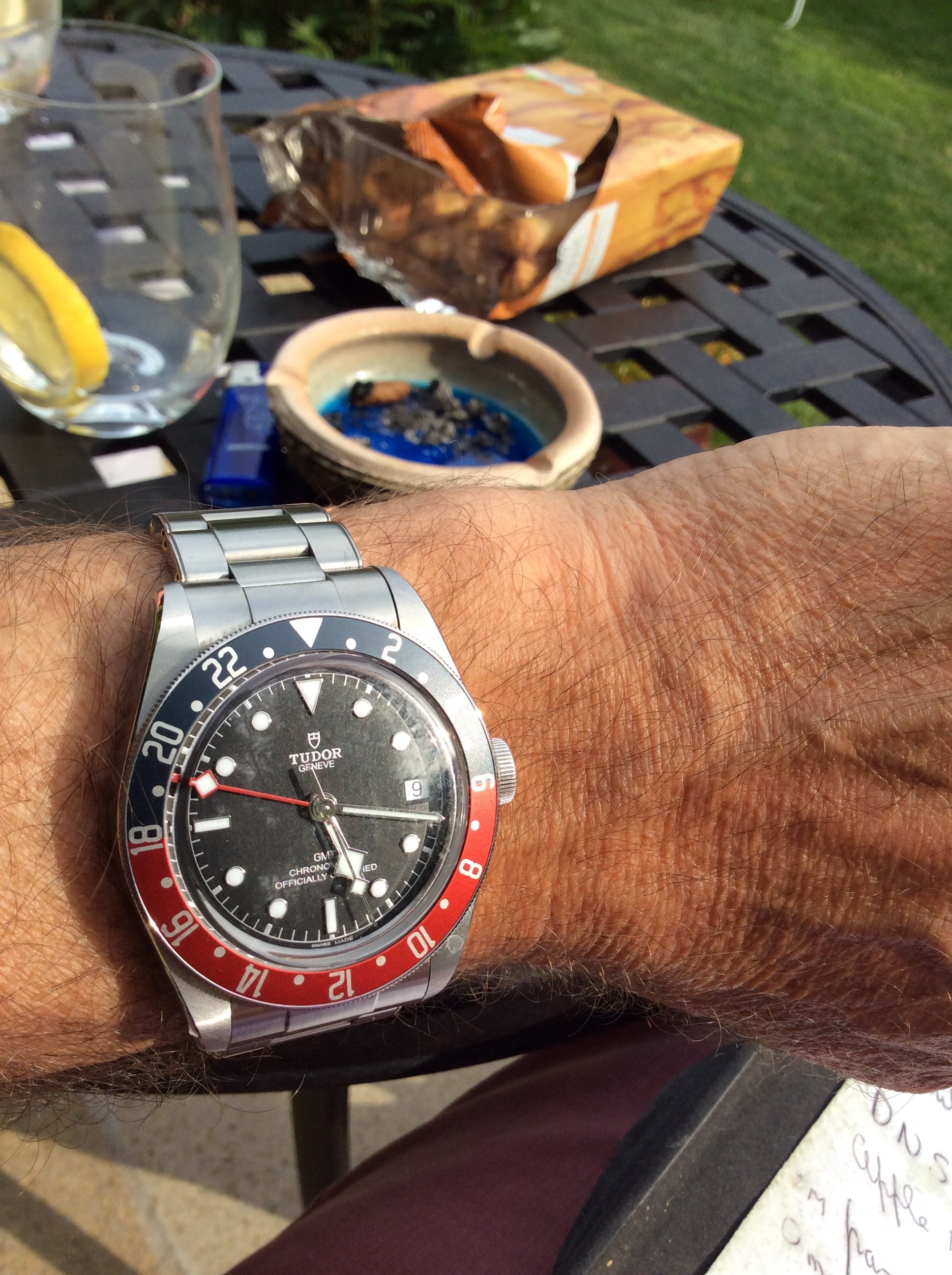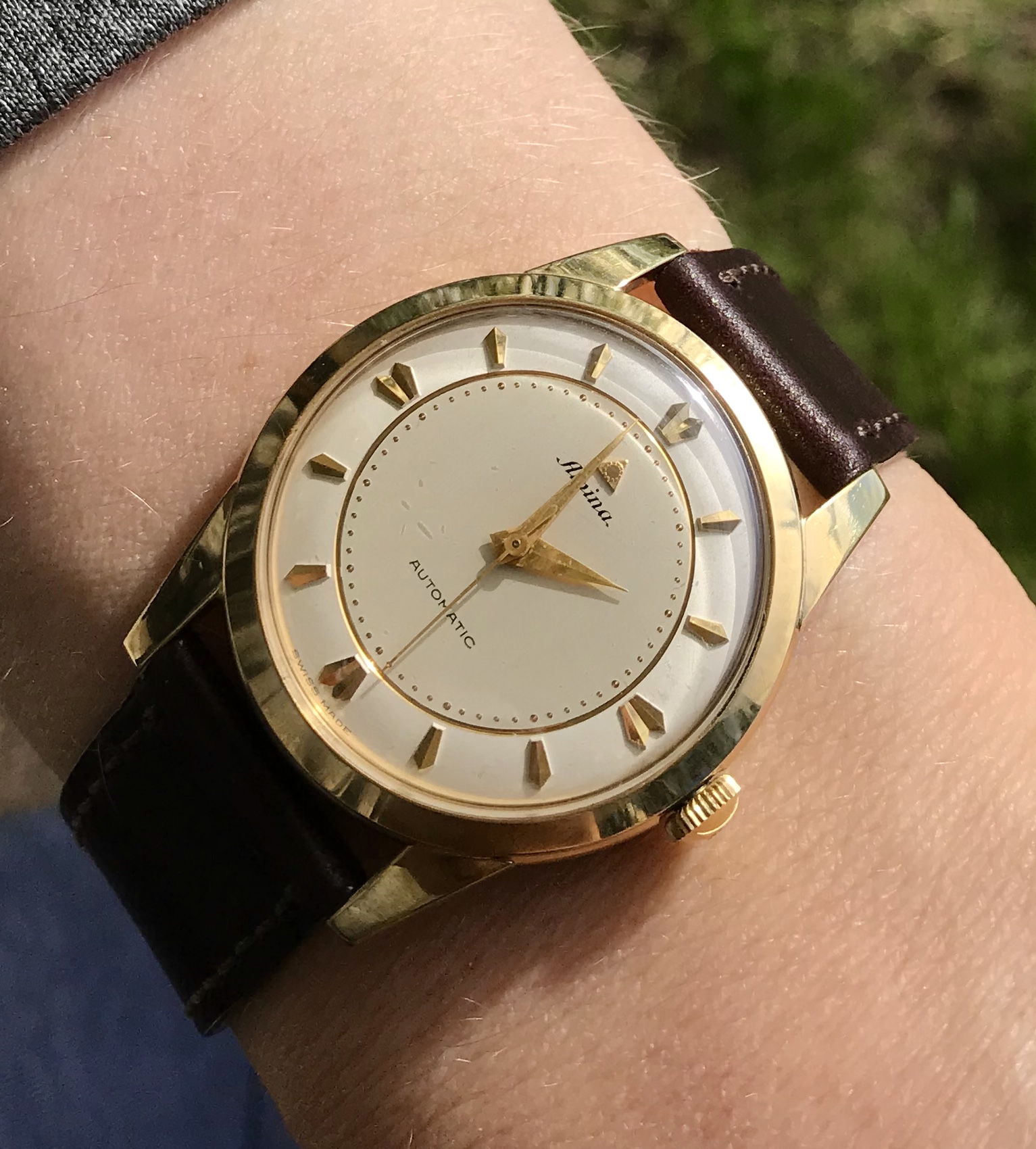 Same watch, different day. My 30 year old 18 karat rose gold and steel Speedmaster reduced, matte black dial, rose coloured sub dials. Came with a gawdawful brown crocodile grain strap. Why I didn’t keep the buckle, I don’t know. Only two-tone Omega bracelet available for this was steel and yellow gold! Ugh! So I bought a steel 1469 bracelet with 813 ends. Why Omega hadn’t fitted this watch with rose gold crown and pushers, I do not know. Produced only for Europe, and for a limited time might explain it.