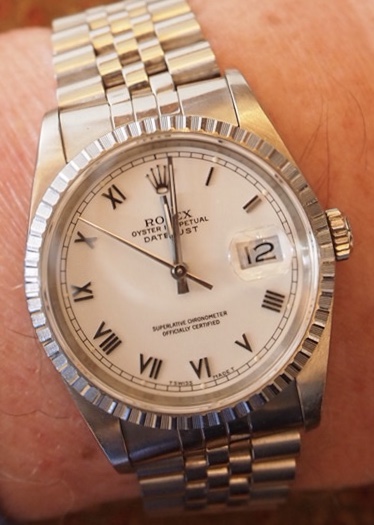 Out for a rare airing. So many watches, so hard to choose. This DJ is 30 years old, one owner, (me). In the30 years I’ve owned it, I have serviced it 4 times, and replaced the mainspring when it broke! A gift from Mrs. C.