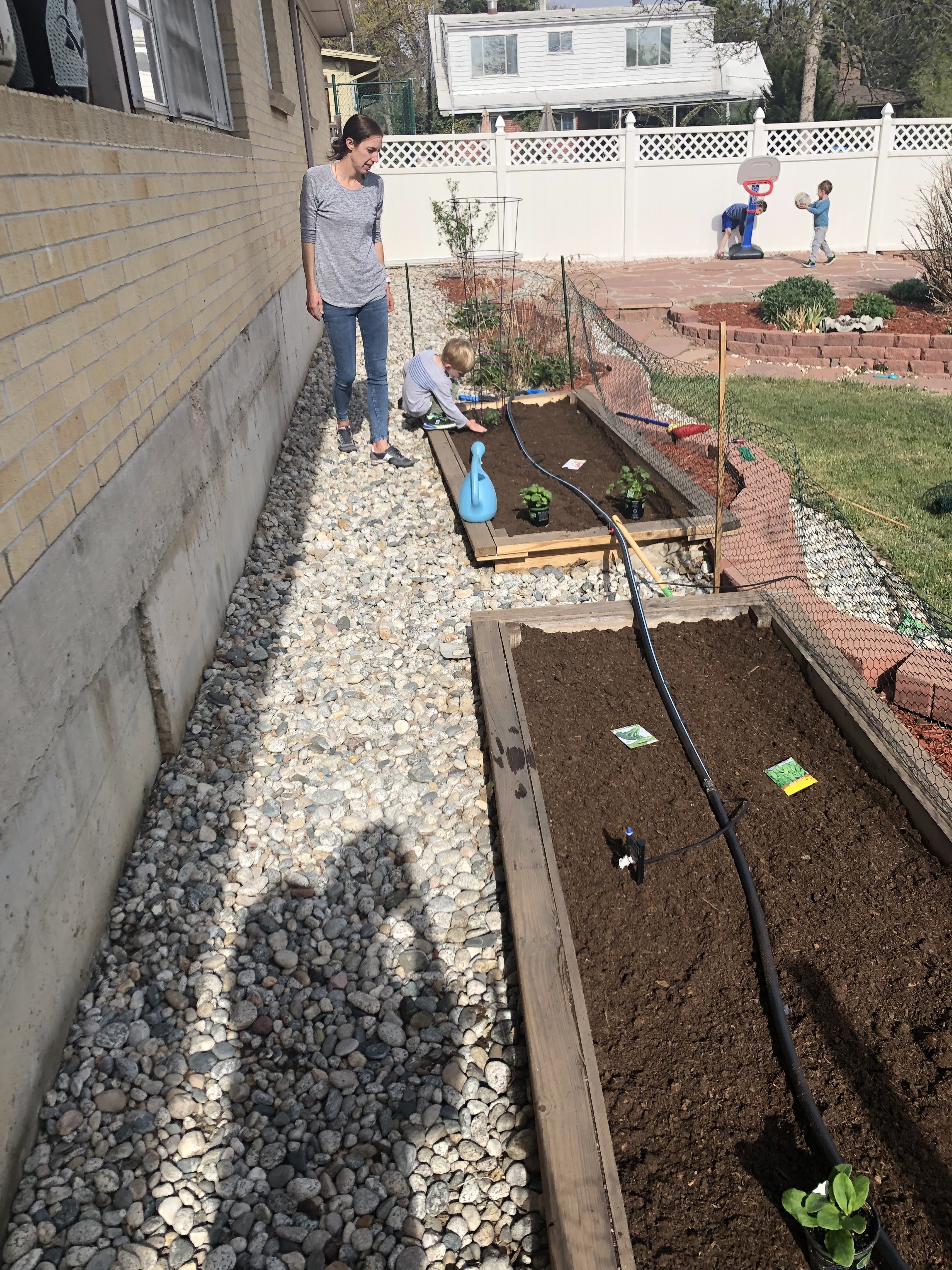 Part finally arrived to repair my sprinklers this morning. This afternoon, with the irrigation back in working order my wife and kids planted the vegetable garden.
