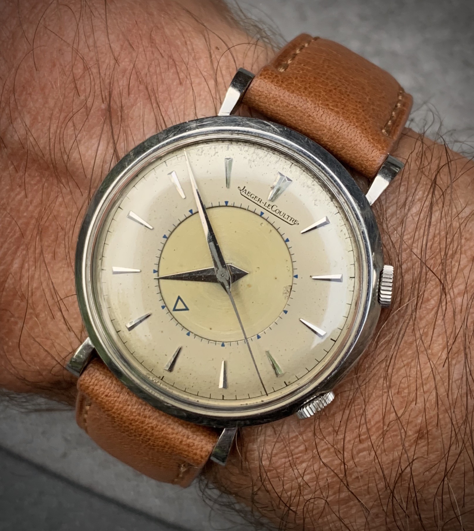 This was an early (1999) Ebay purchase from a Paraguayan seller and was a "deal" at the time. Serviced, I wore it happily for several years, blithely ignorant of the fact of redials. Later I came to suspect. Shrugged and continued to wear it: to the office, on our travels, designating it most regular daily wearer.