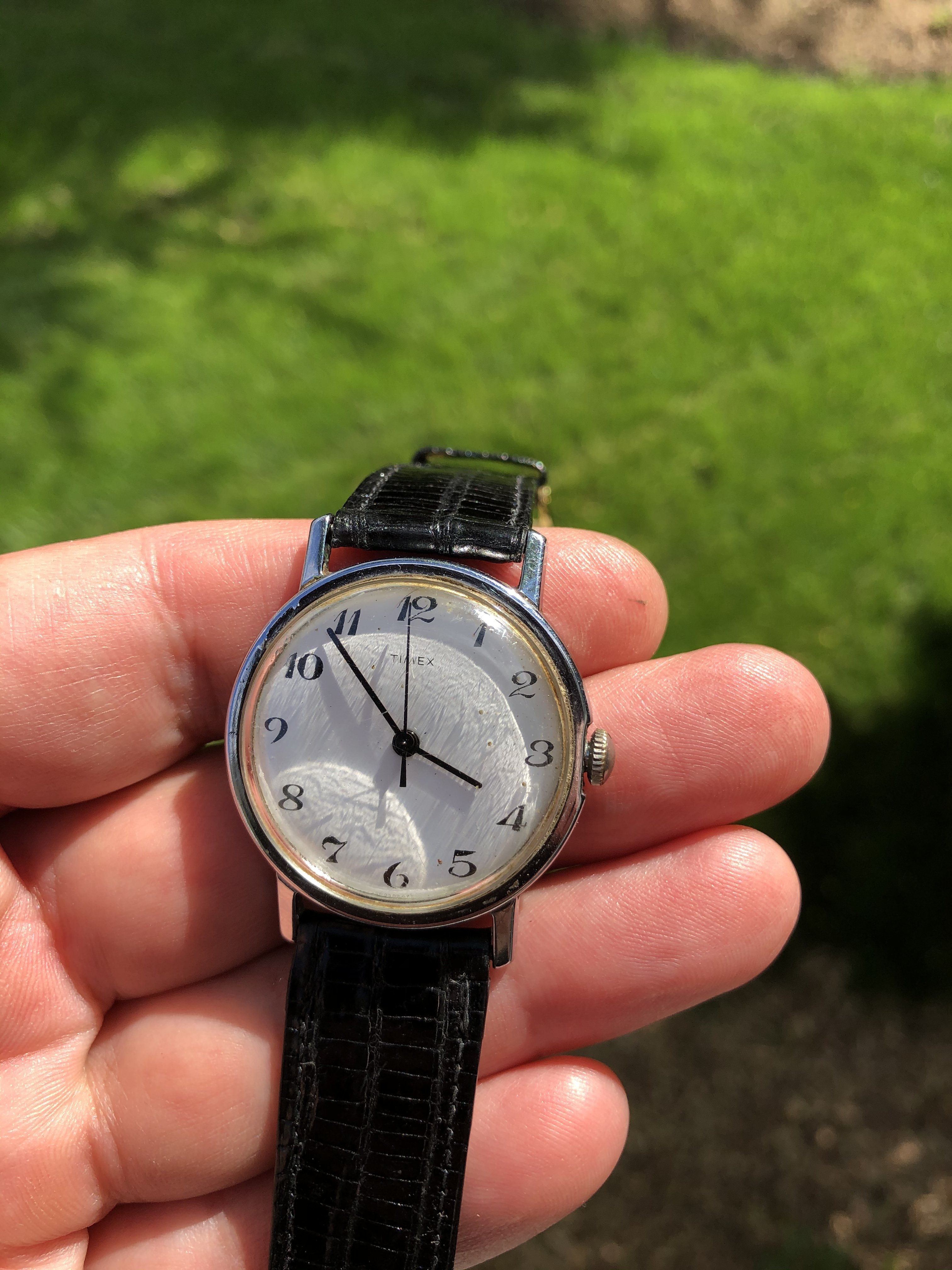 Origins. After being in a box in a box for decades I stumbled upon my very first watch. From Christmas 1970 or 71. A little oil, and it perked right up. New strap as the original was black vinyl and long gone. Surprisingly emotional reunion.