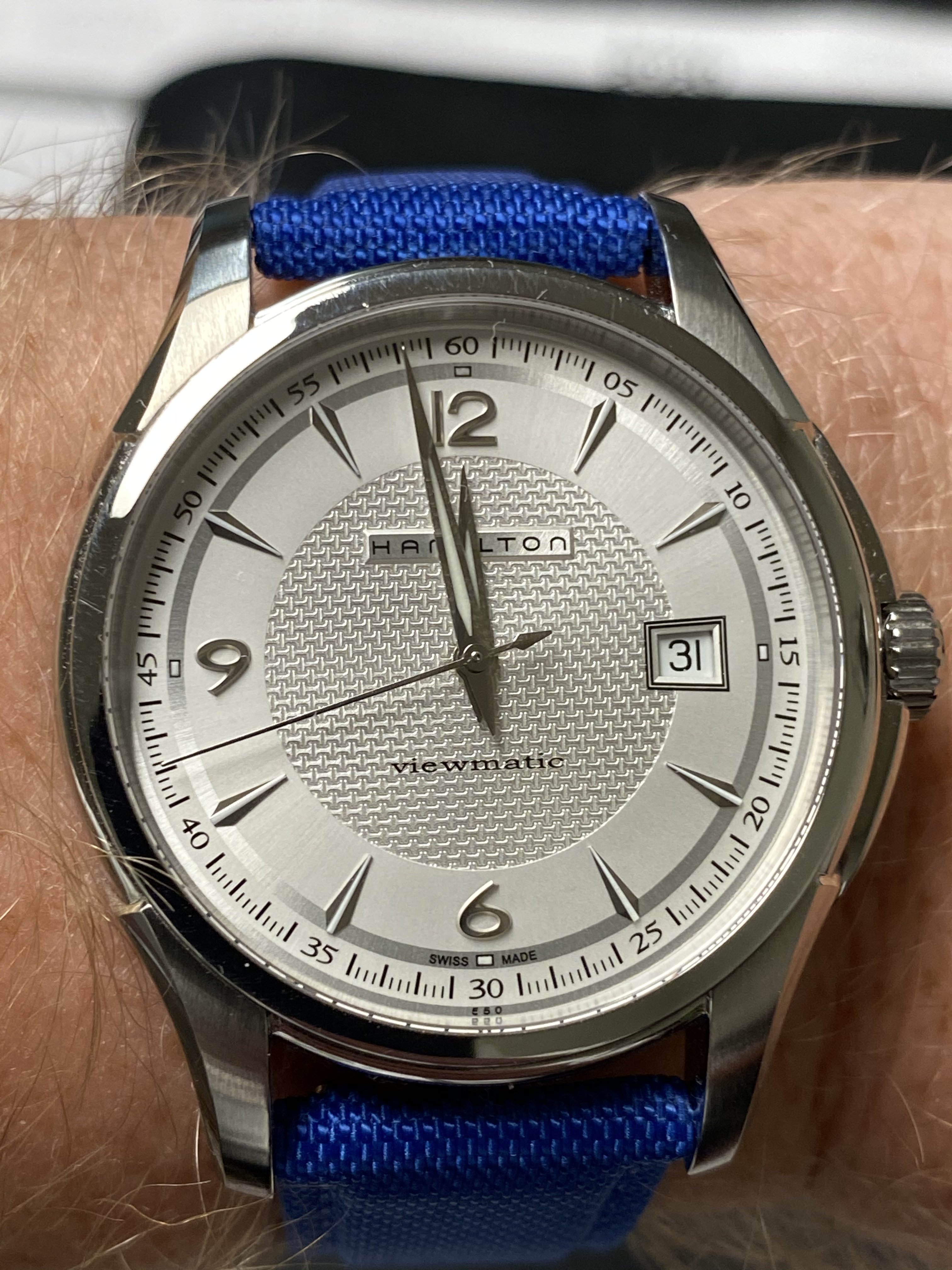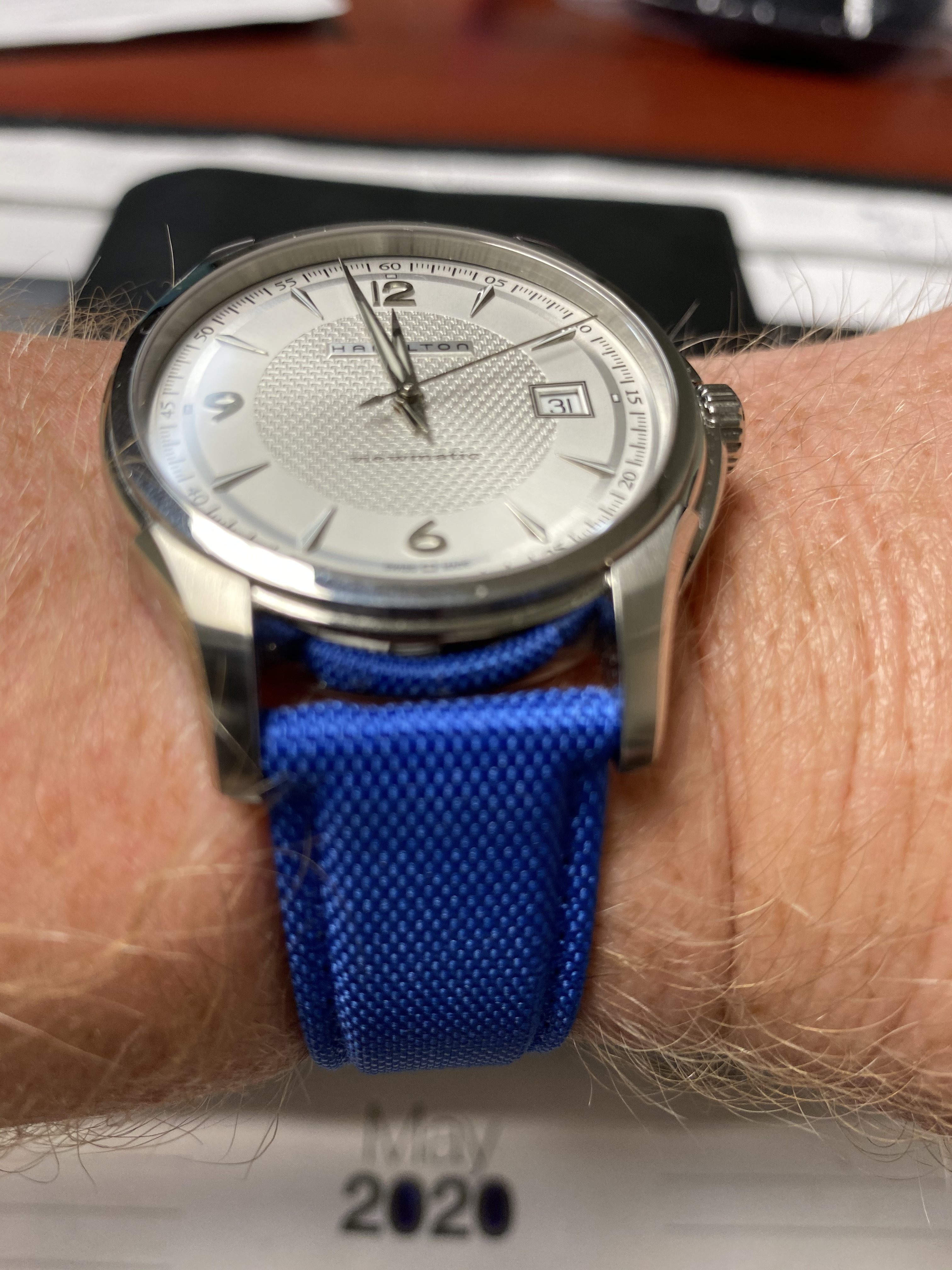 Sporting the Hamilton on a new Blu Shark canvas strap. What do y’all think of the look? I haven’t decided if I like it or not? I’m normally a leather or bracelet person. Just stepping into the NATO style slowly. This may just take some time to adjust.