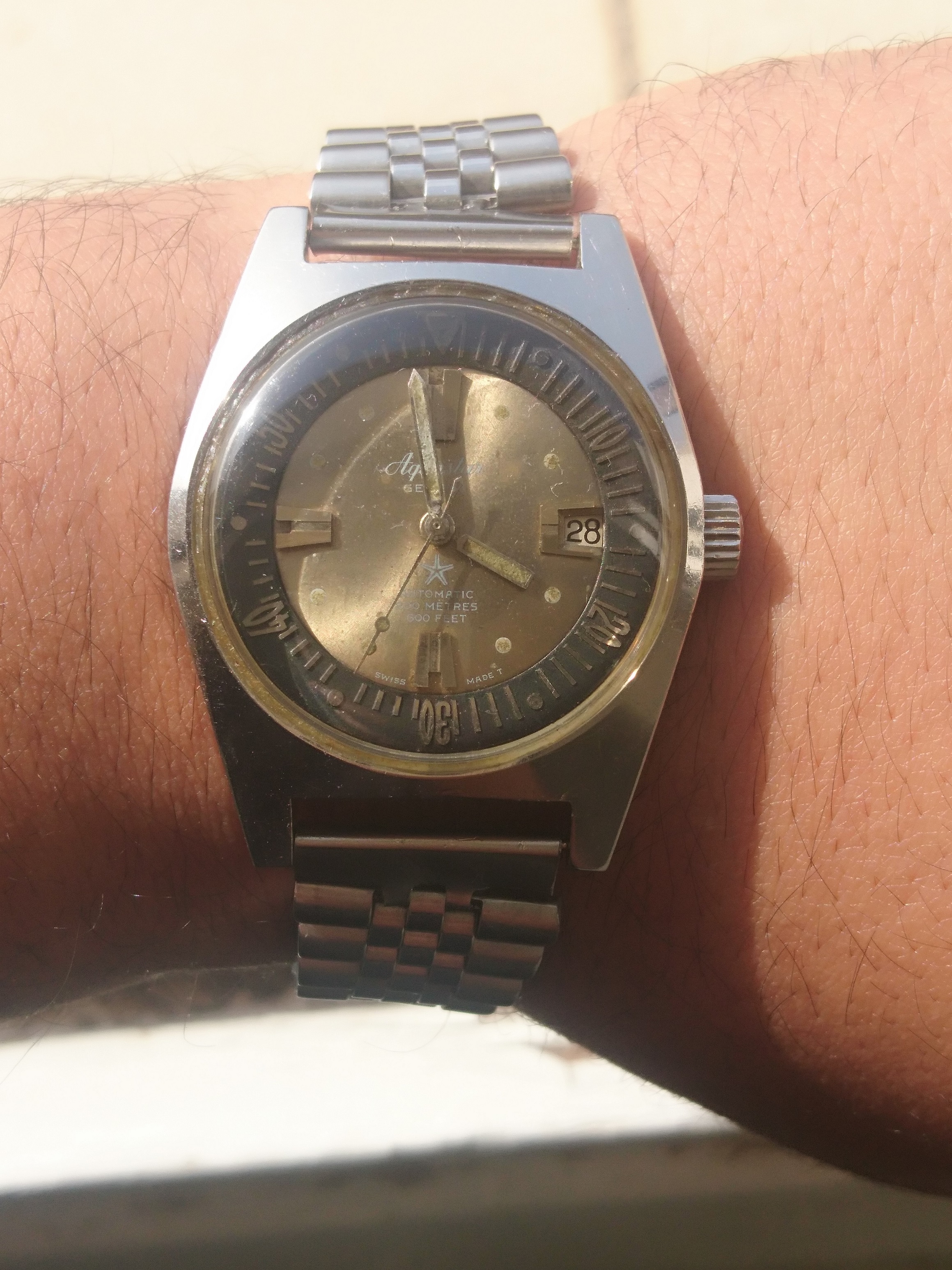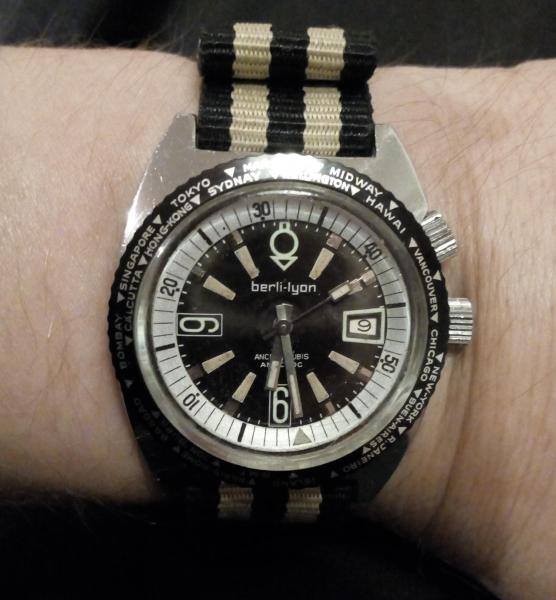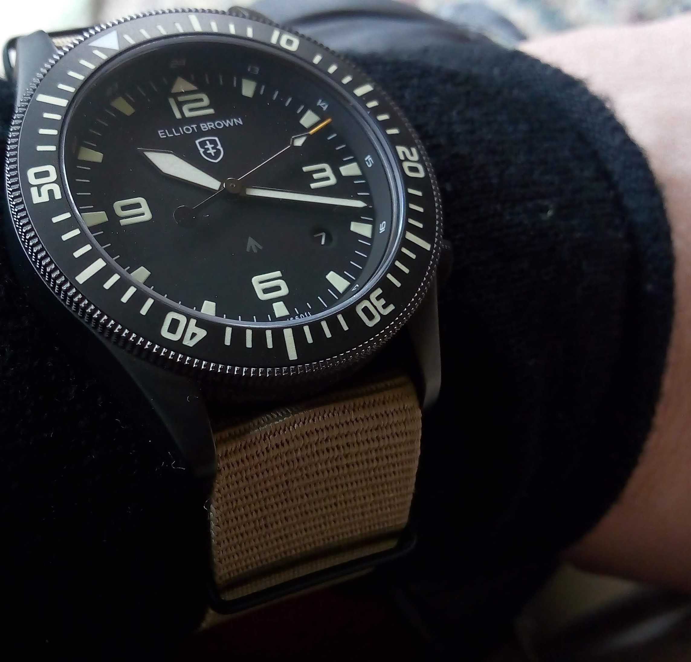 My expedition diver is slightly less grand, but still got that military pedigree, and the only watch I wear over my jacket - it was on rubber on Winter Hill in the rain, but rocking a NATO right now - KNURLED IT!