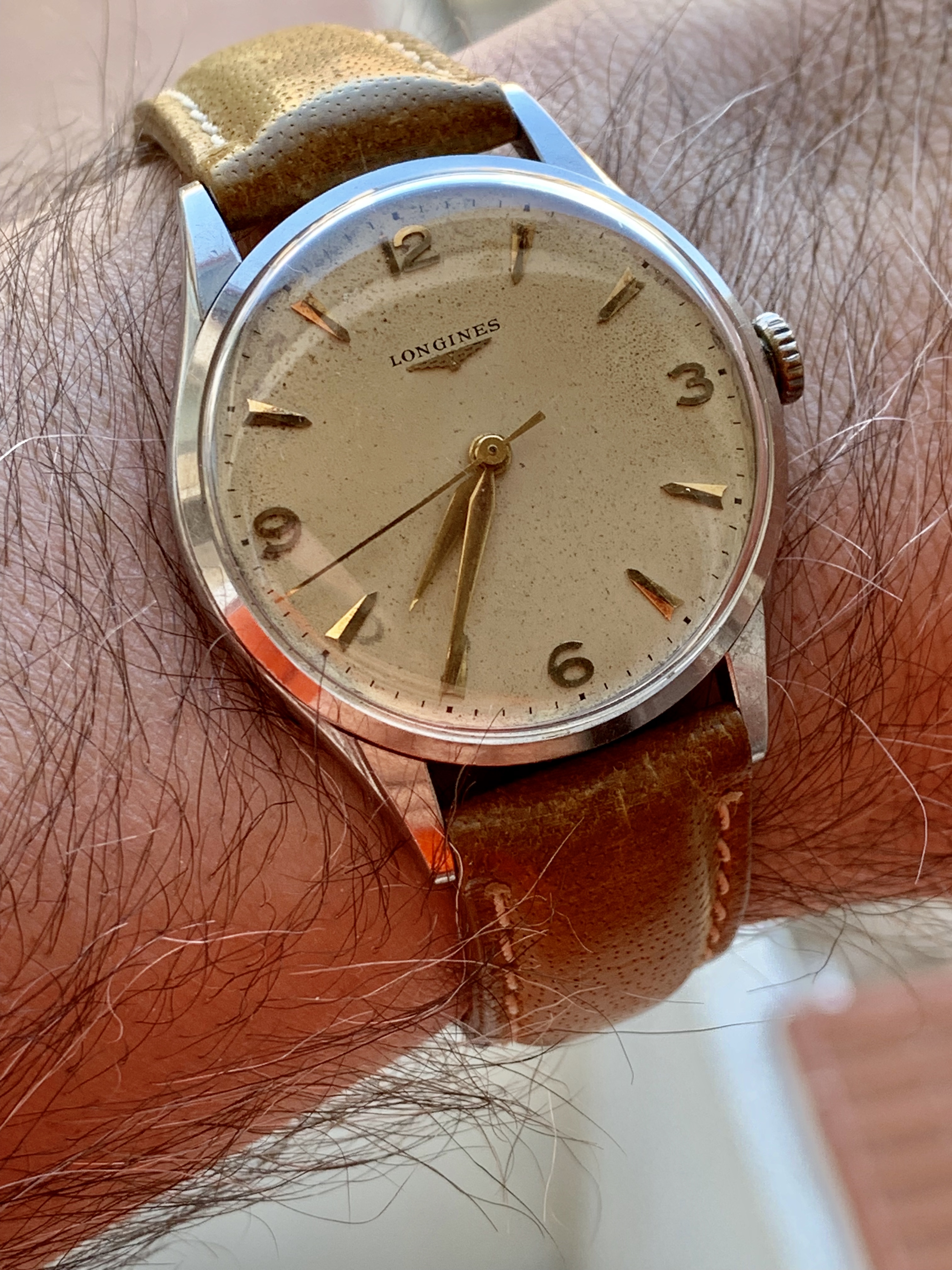 I have been thinking I should move this 14K Longines President Coolidge model on to someone who will wear it more than me. Then, after "hauling" my 42mm Speedmaster around on my just under 7 inch wrist all day, I put this on and what a joy. It doesn't feel like I have anything on at all. At the end of the evening, I guess it will go safely back into the watch box to be neglected for another few weeks until I think once again, "I really should sell that Longines."