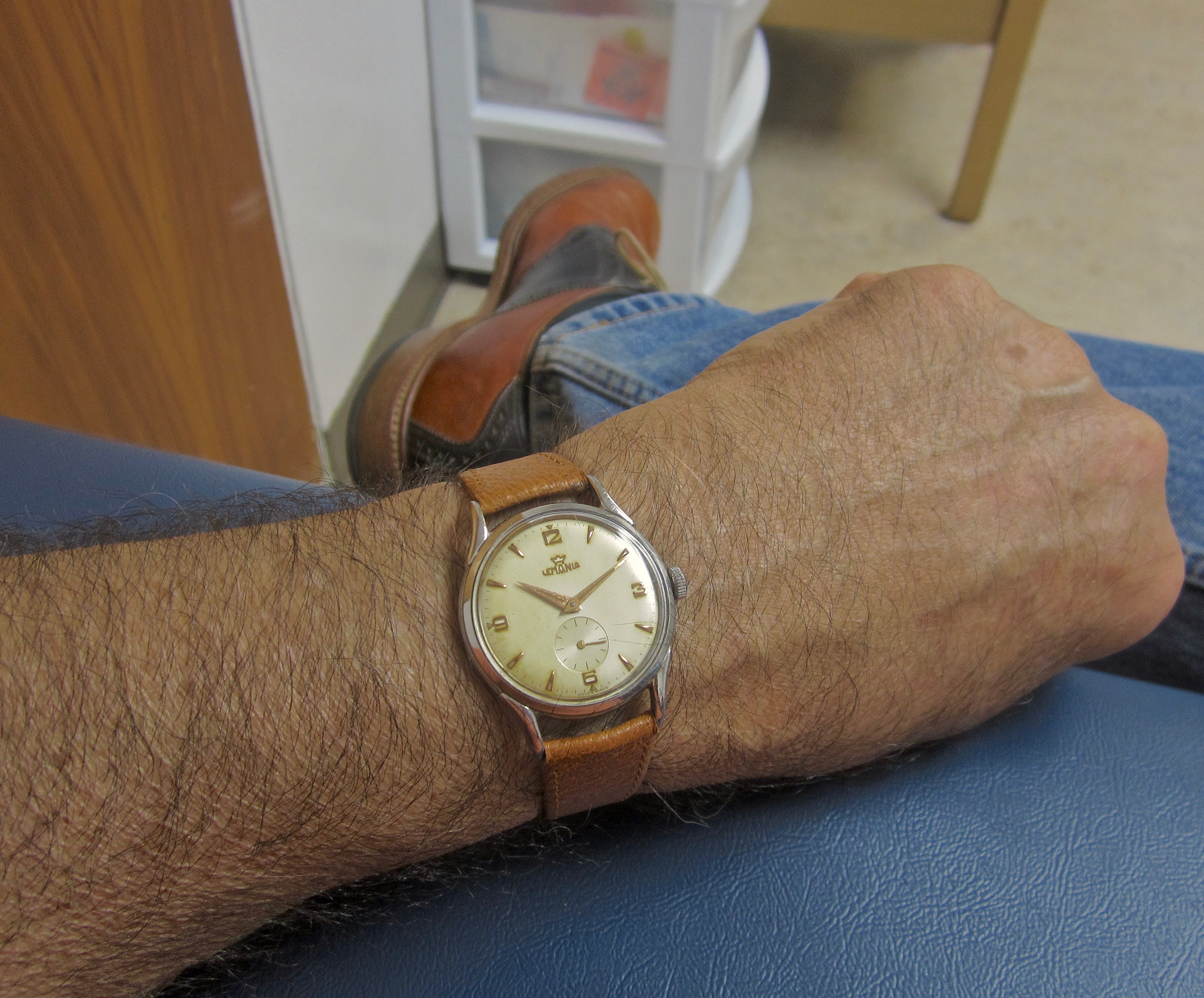 Taken while sitting in the local hospital's lab this morning awaiting a blood test for an upcoming visit to the cardiologist in July. About the only town use I have for such a vintage watch these days.