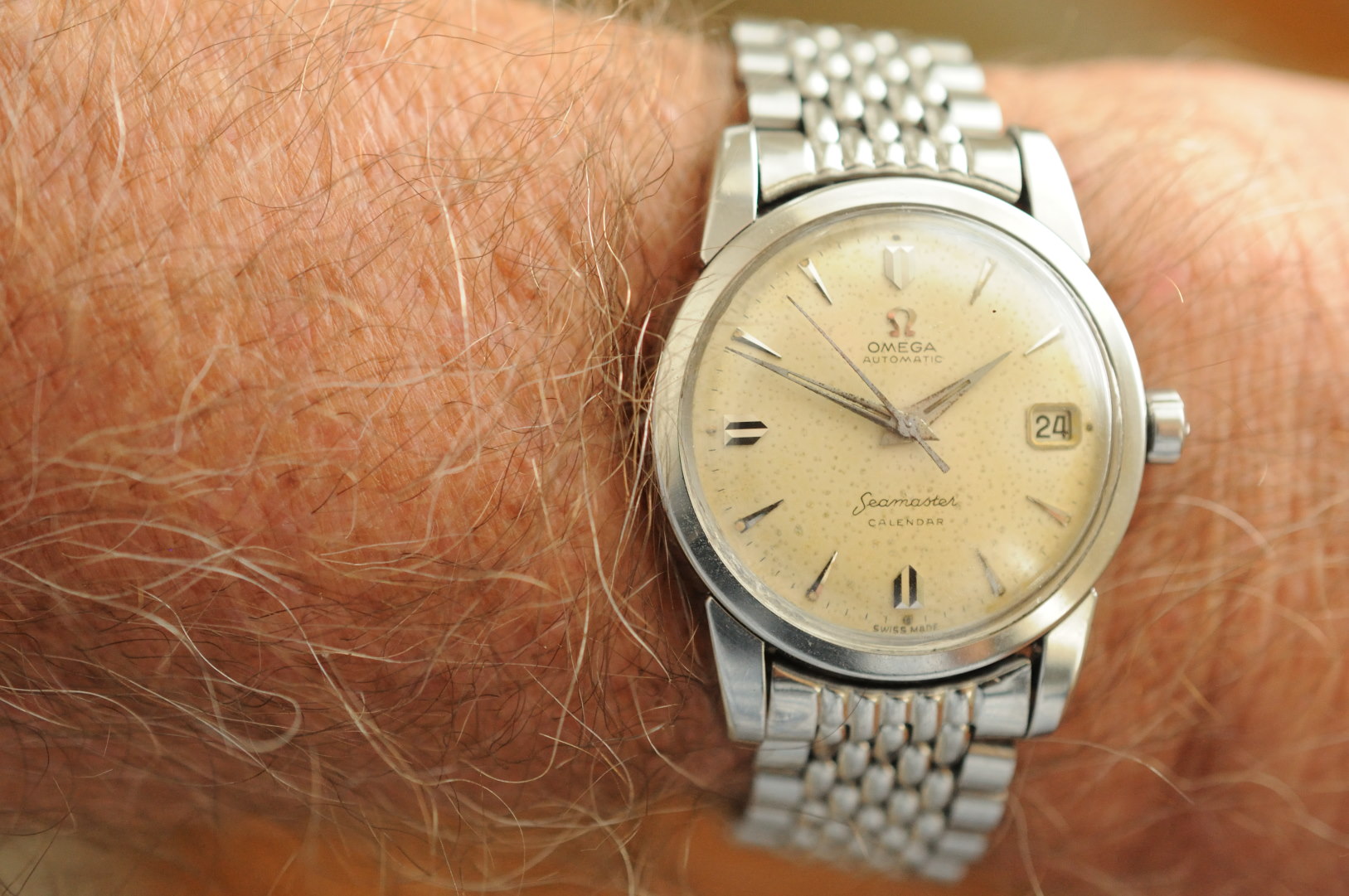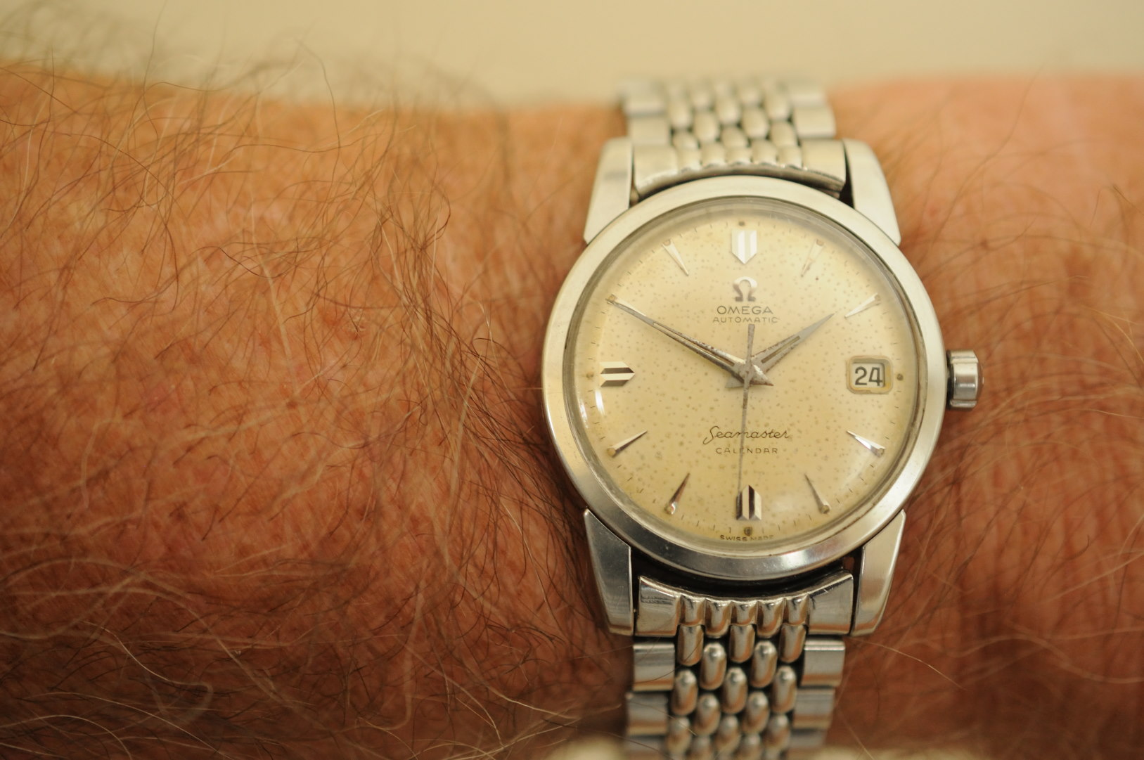 Posts 3,784 Likes 20,201 ahsposo ·Jun 24, 2020·Most fun screen name at ΩF Here's one with a dial patina I like, the hands not so much. Despite the hands I find it a charming watch - such a mellow dial color. Seamaster 2984-2, cal. 503