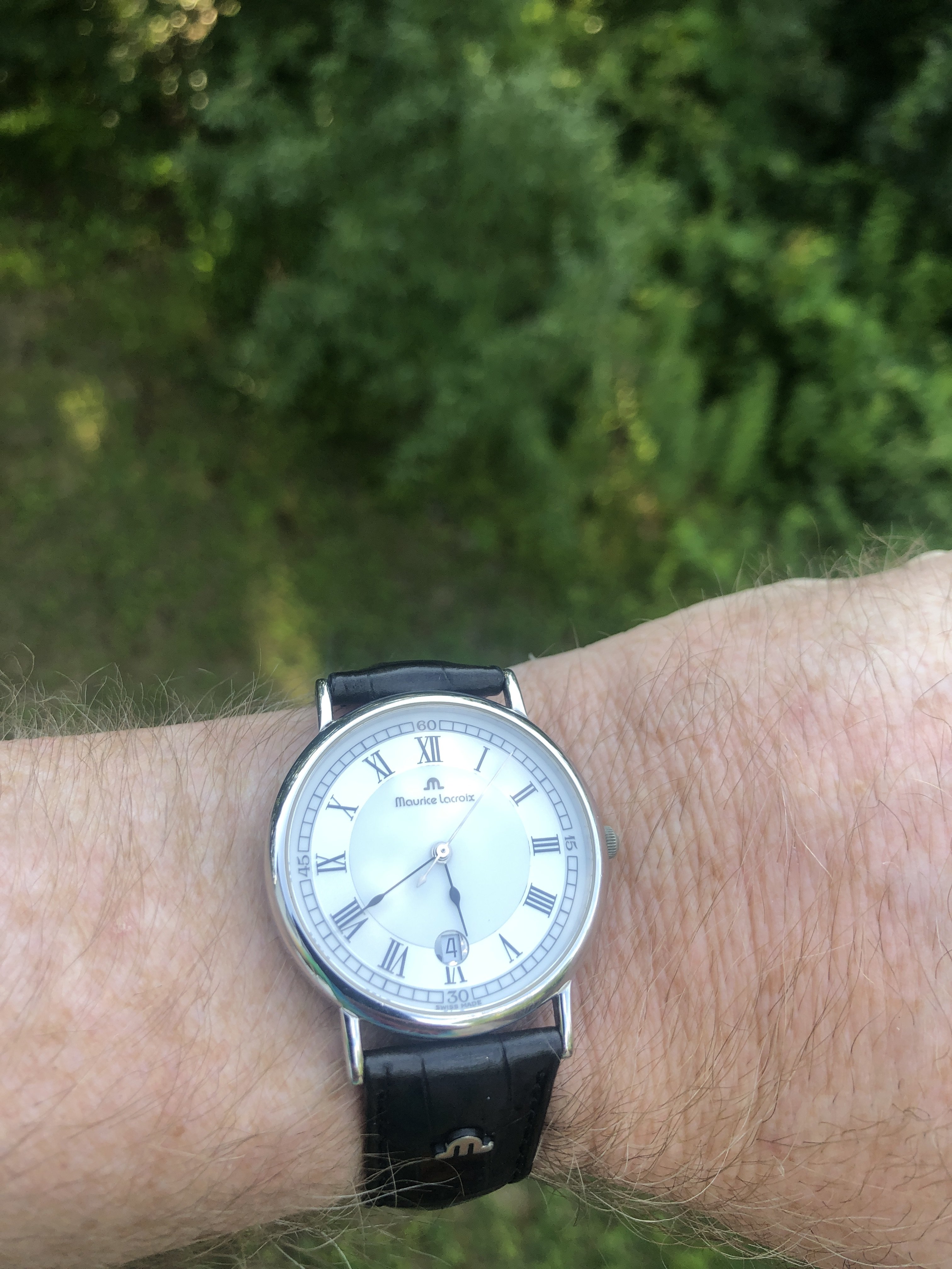 Damn I see some beautiful watches today. Good on everyone. Someone started I thread about a Maurice Lacroix. They were asking questions but I had no answers I just put up a picture of one a got off flea bay years ago and never wore it. Someone commented it is nice looking and I should put it on. Today I take that advice. Nothing special but it’s nice to use something I’ve had sitting around for so many years.