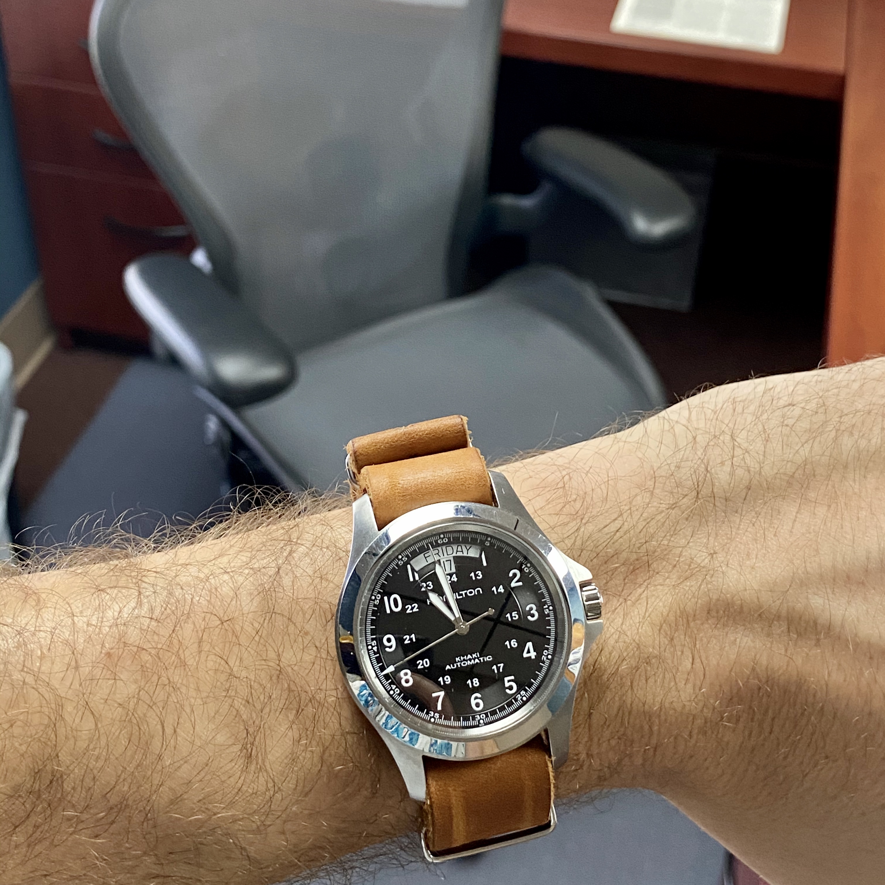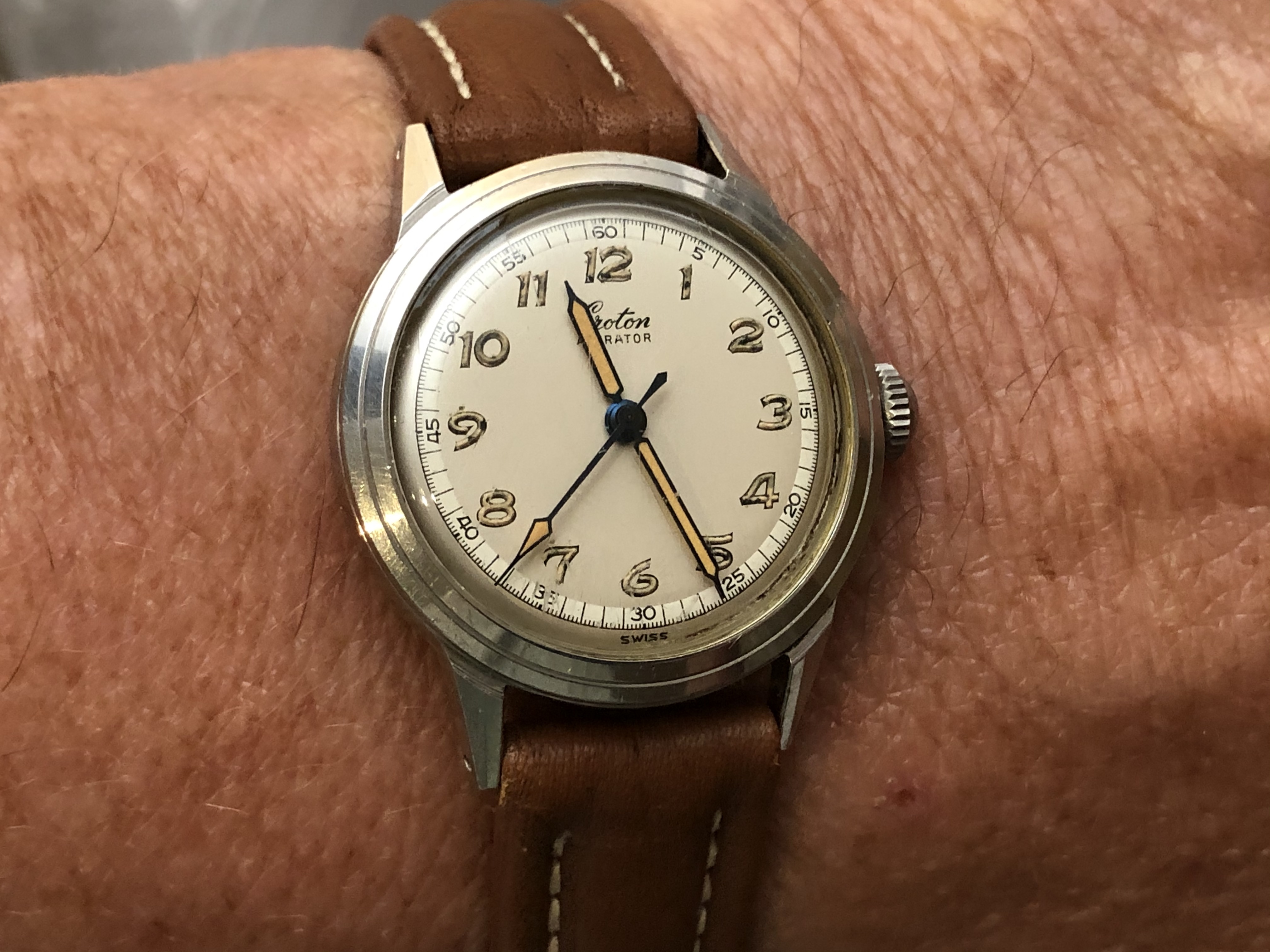 Wearing this Croton “Acurator” today...a model I had never seen before. It was a “bonus” watch that was part of an auction lot I purchased for one specific watch. It is in great condition and keeping good time. Love the lume and furnace blued hands. Regrettably it is too small for my wrist. I’ll move it along to one of my sons or my wife.