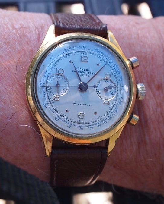 This one hasn鈥檛 been out for a while. Private label for Bucherer of Switzerland. Movement is not a chronometre as implied by the dial. The movement is a 17-jewel Valjoux 22. No idea of the vintage, but could be mid 1960s. It is a column wheel model, so could be older, I suppose.