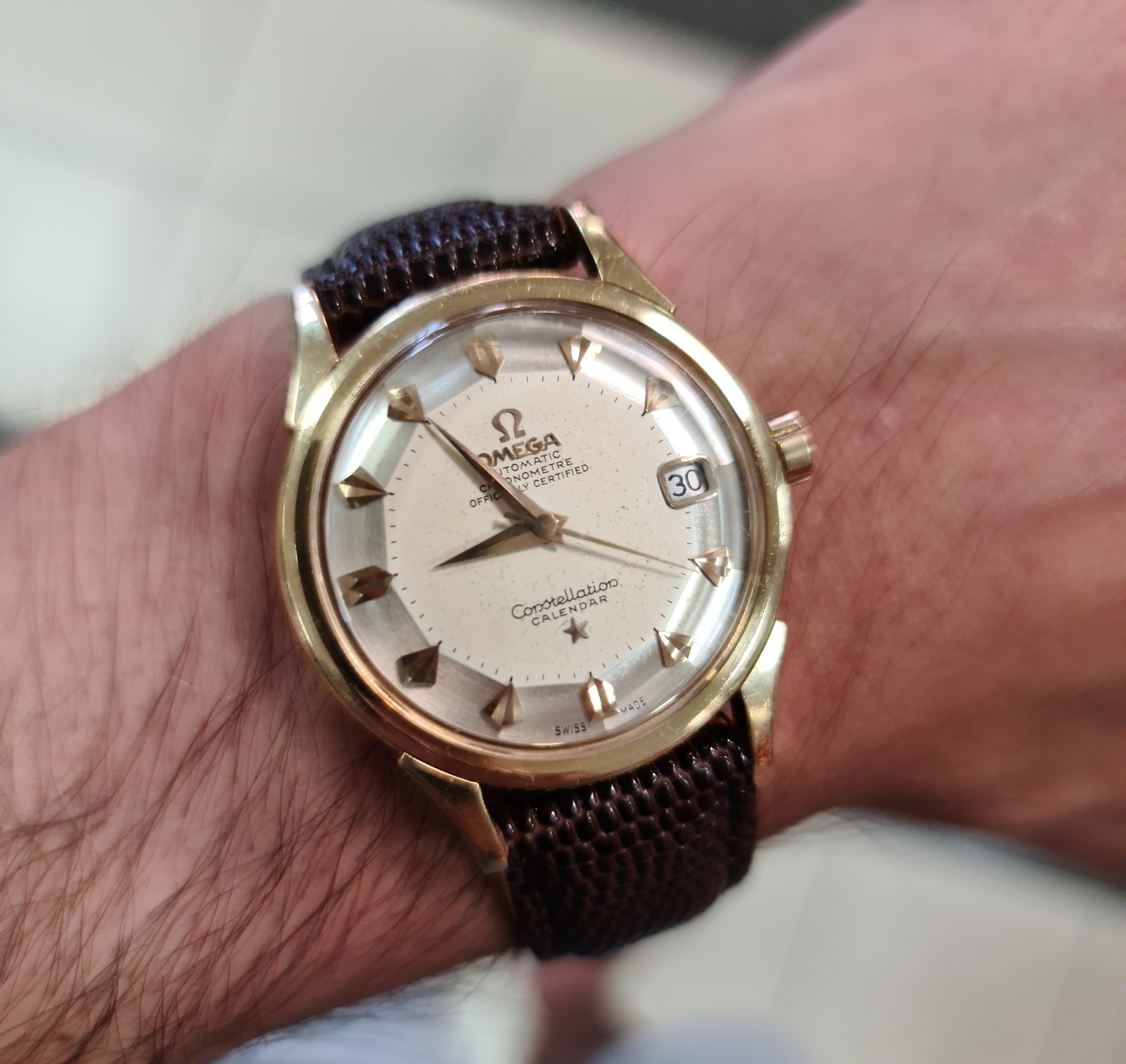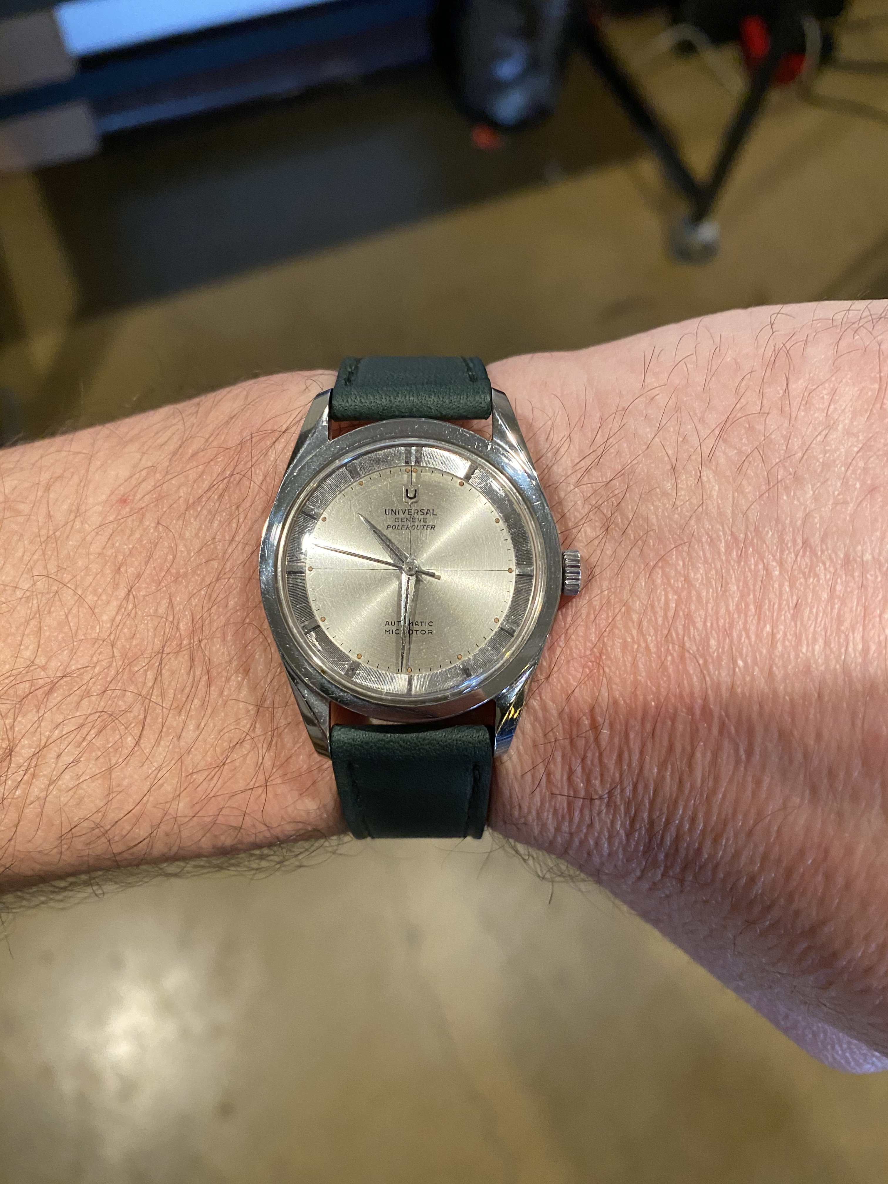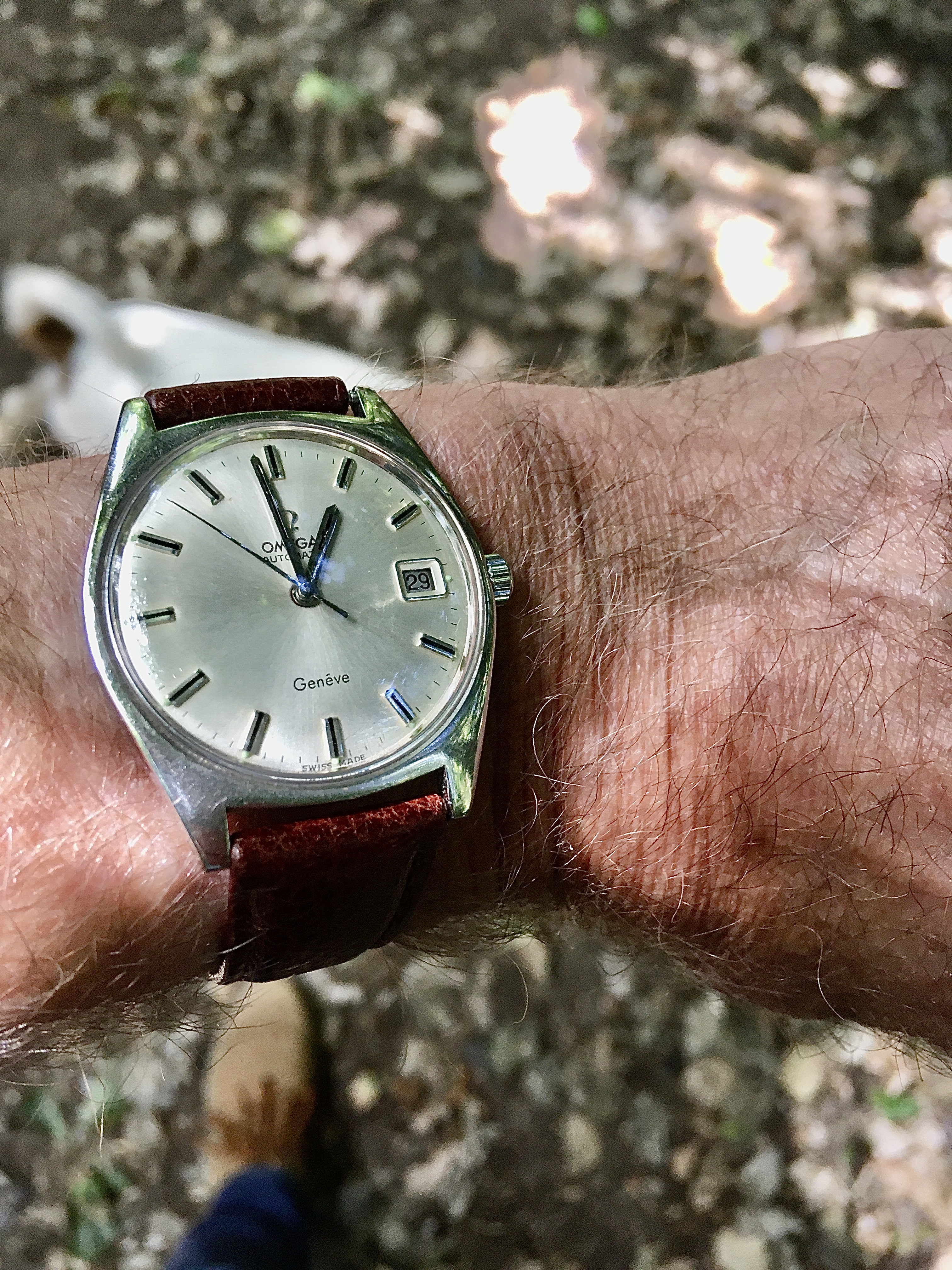 Posts 8,460 Likes 69,640 Spruce ·Jul 29, 2020·Sunburst dial fan Today’s walk in the woods. Cute terrier in the background, so no likes please. 52 year old Omega but only entry level Genève, so no likes please.