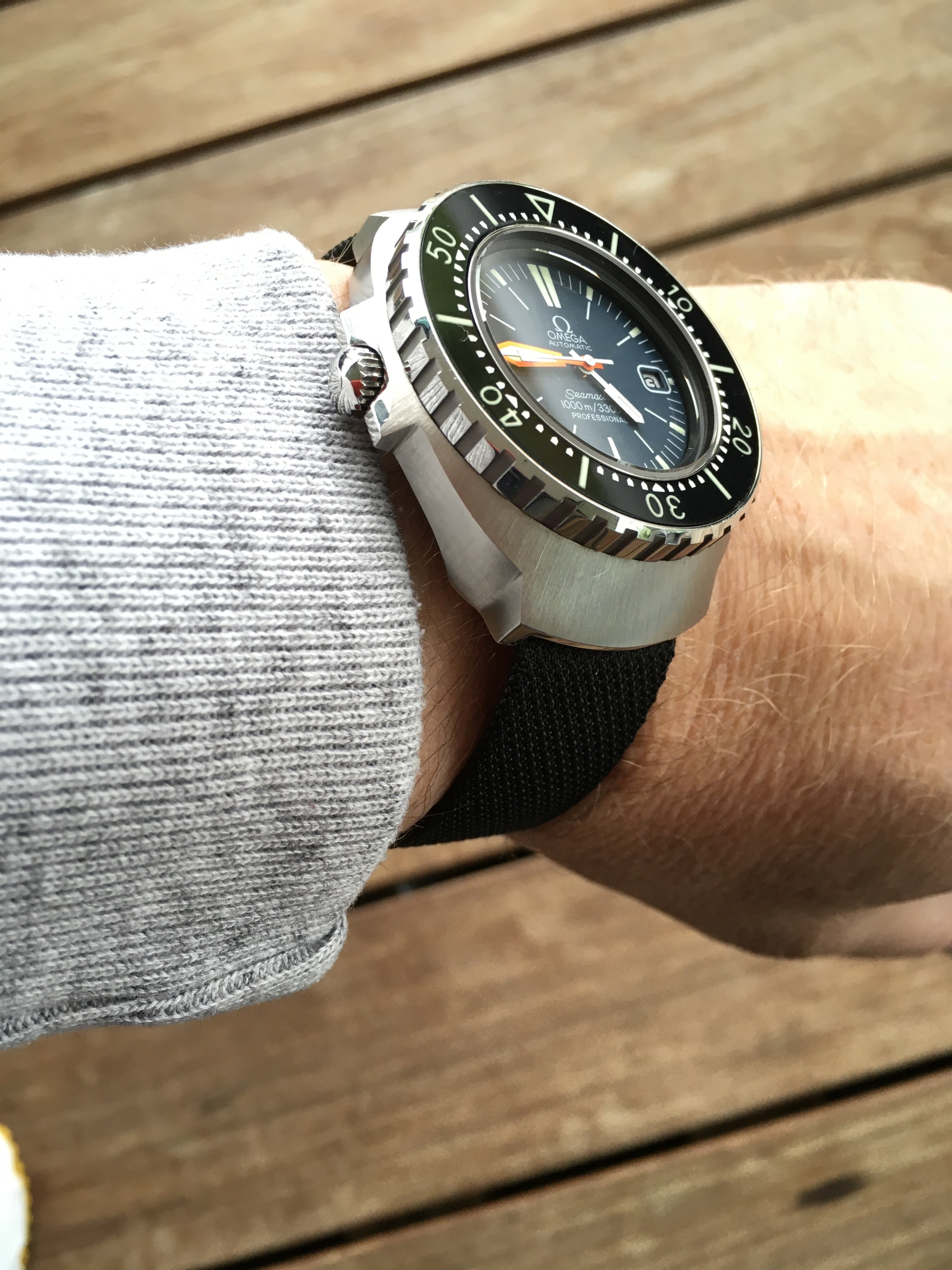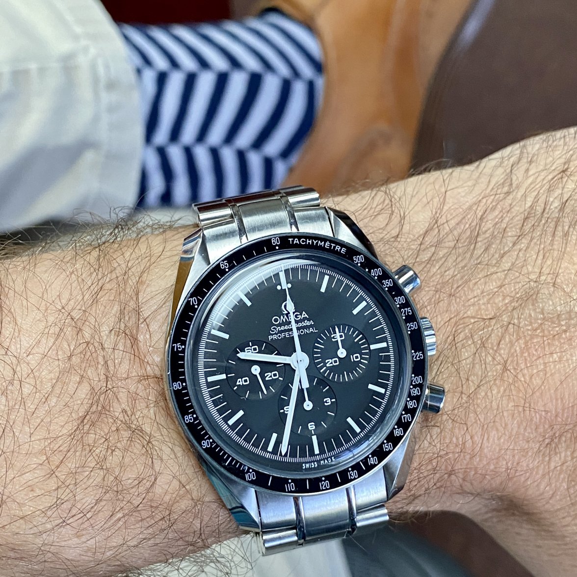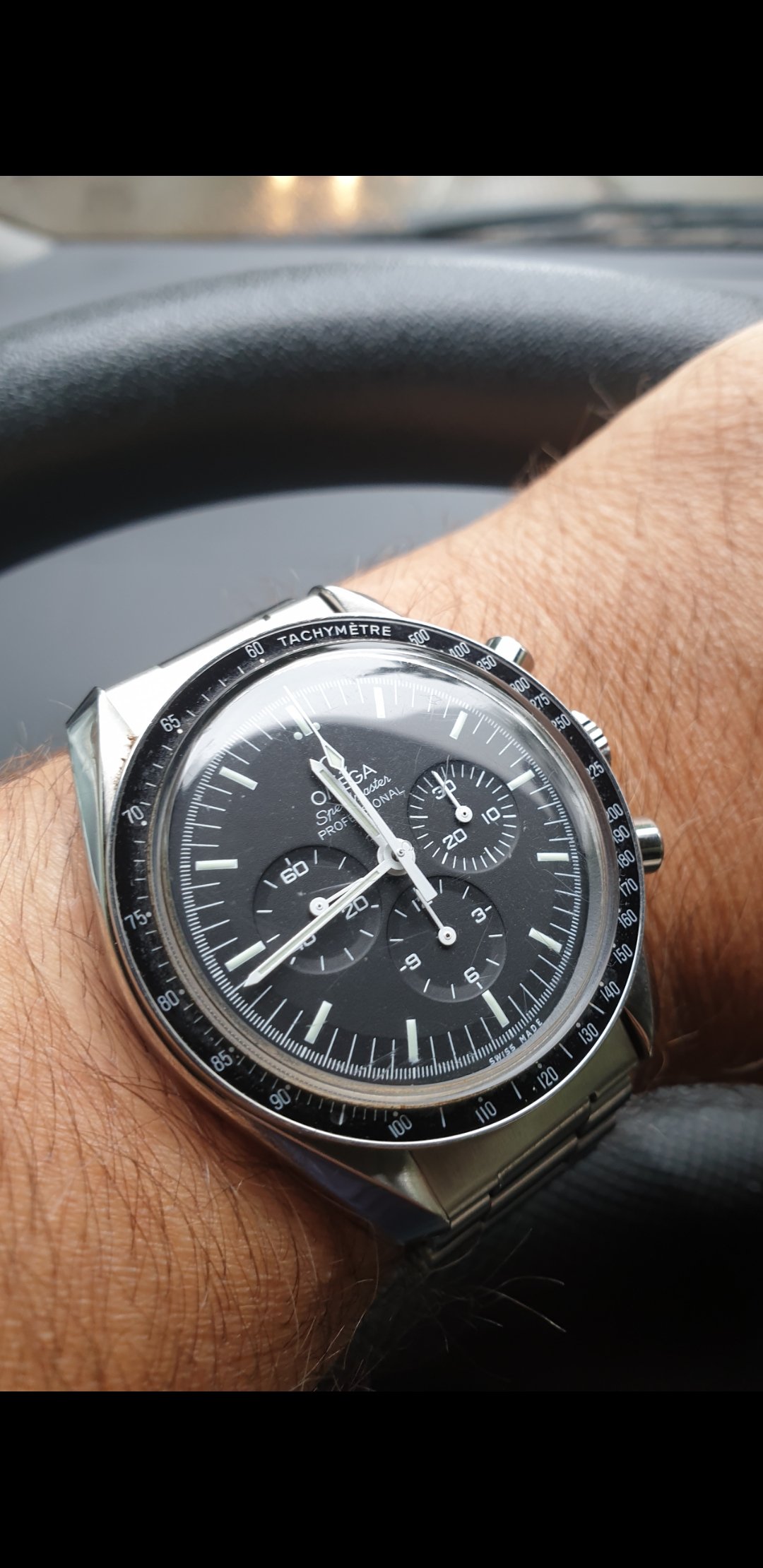 Late entry for Sunday...my modern Speedy Gonzales Moonwatch on an Omega Barenia leather NATO...with a freshly Griot鈥檚 Garage tire shined right front tire on my 2007 Ford Police Interceptor in the background...good times! 馃憤