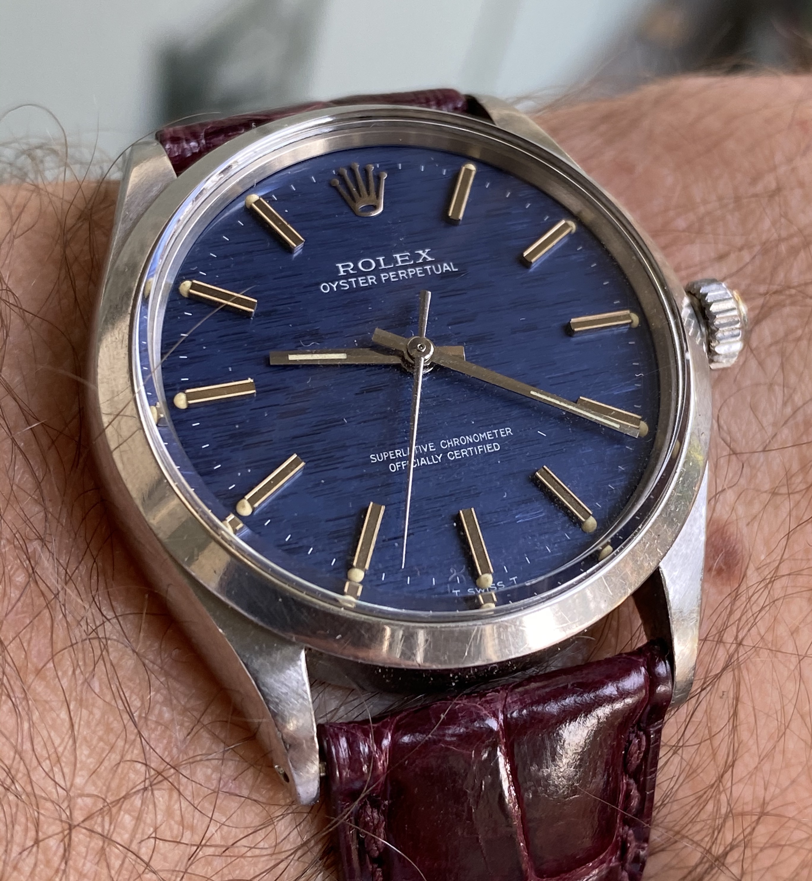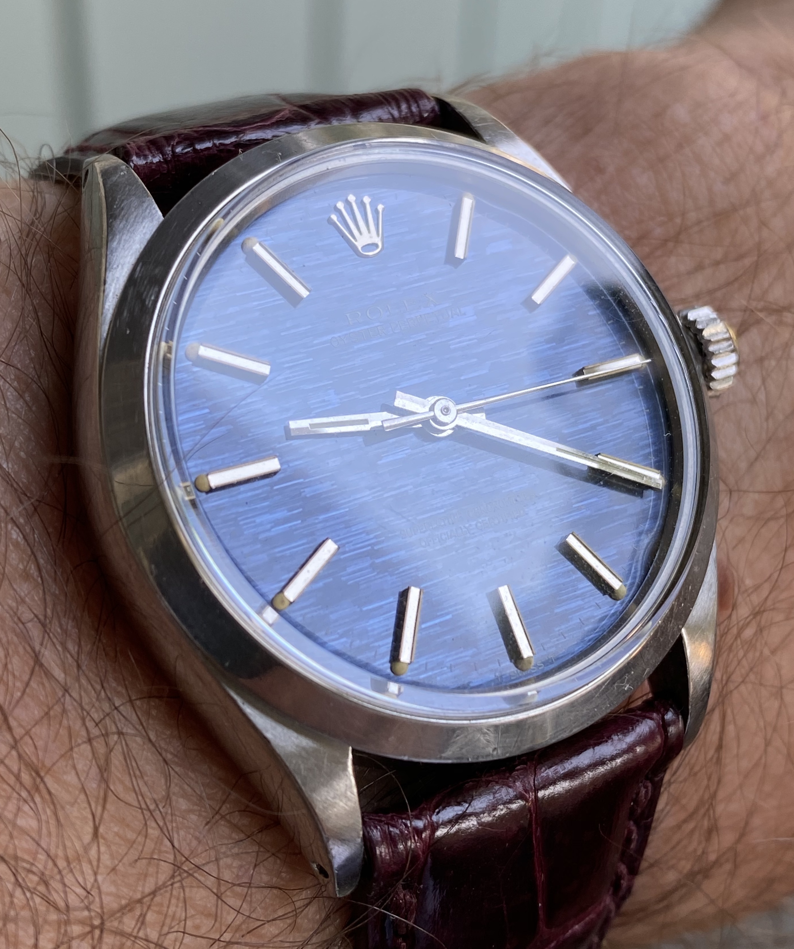 The sunlight coming in the window warmed it up a bit. The dial is a bit whiter and opalescent . . .