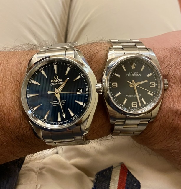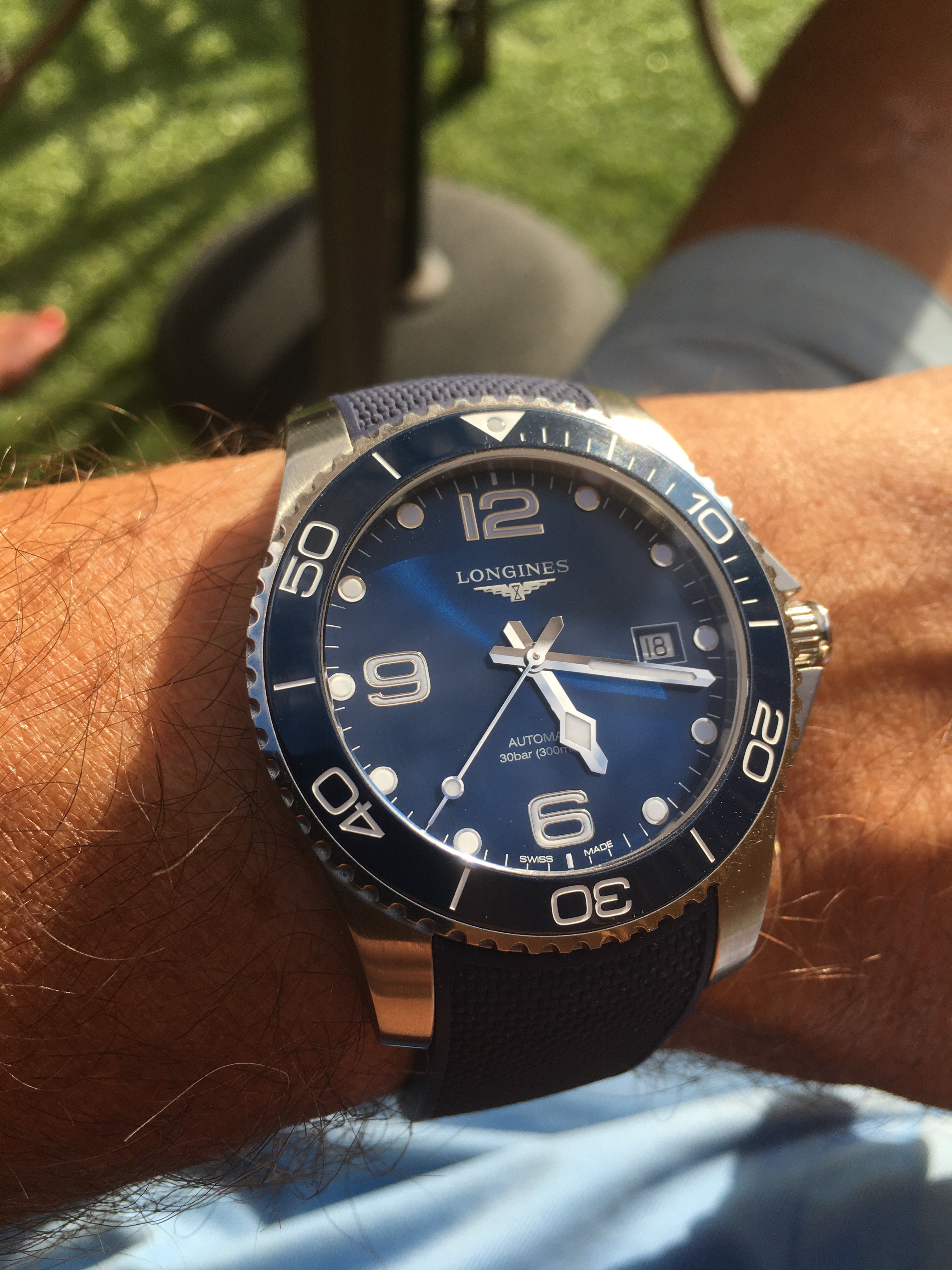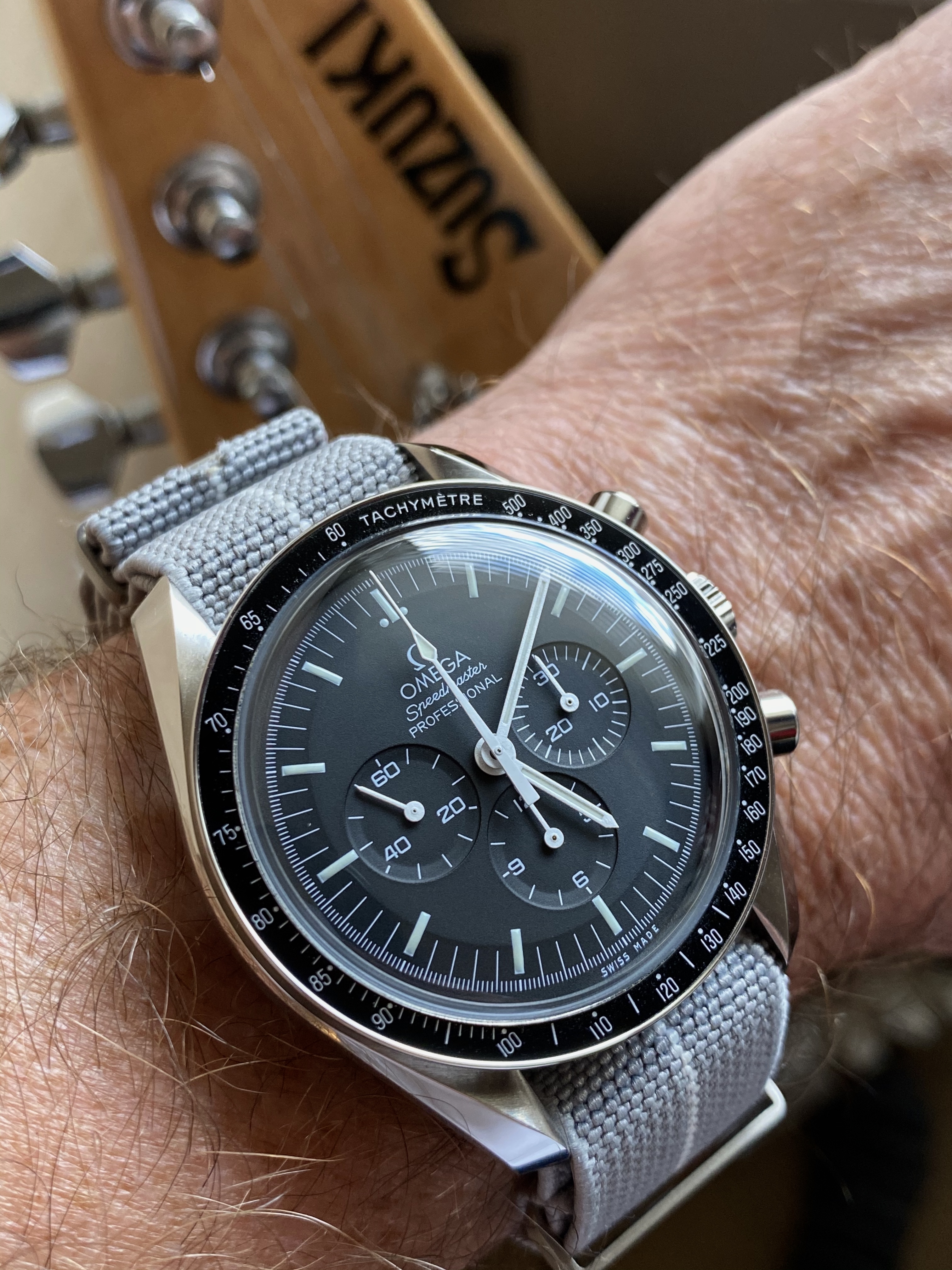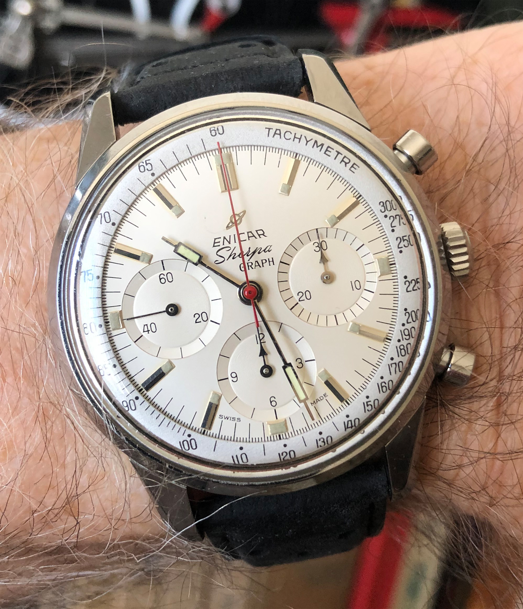 Still further below is the kind of photo that, while it shows that the subdial hands are not black, but rather polished metal, one sees a bit of a wash-out effect.