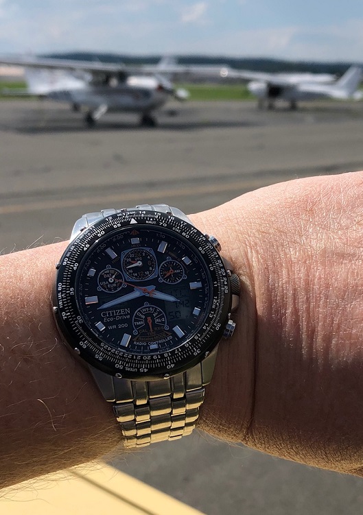 Took a picture of my Citizen WR-200 pilot watch at the local airport.